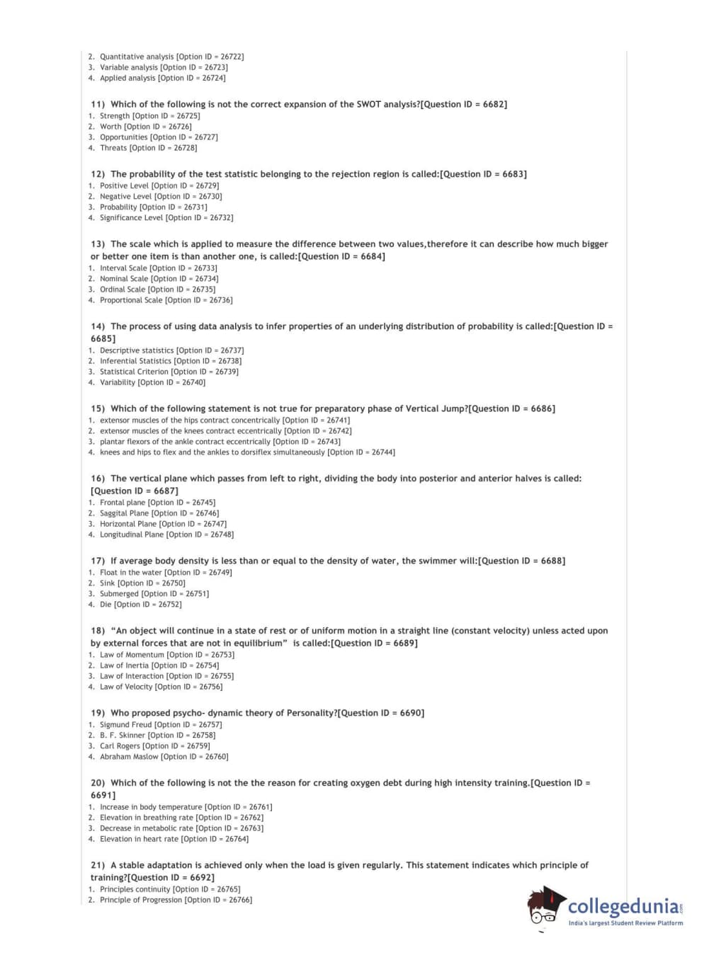 DUET 2021 DU PhD in Physical Education Question paper with answer key pdf conducted on September 26, 2021 in Shift 2 is available for download. The exam was successfully organized by National Testing Agency (NTA). The question paper comprised a total of 50 questions.