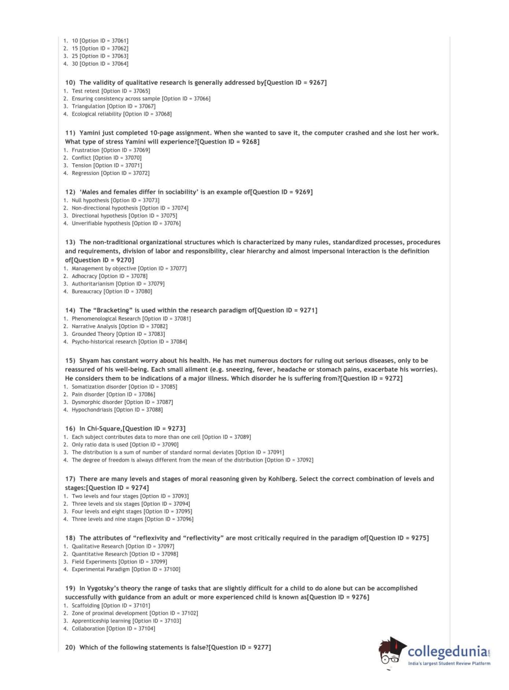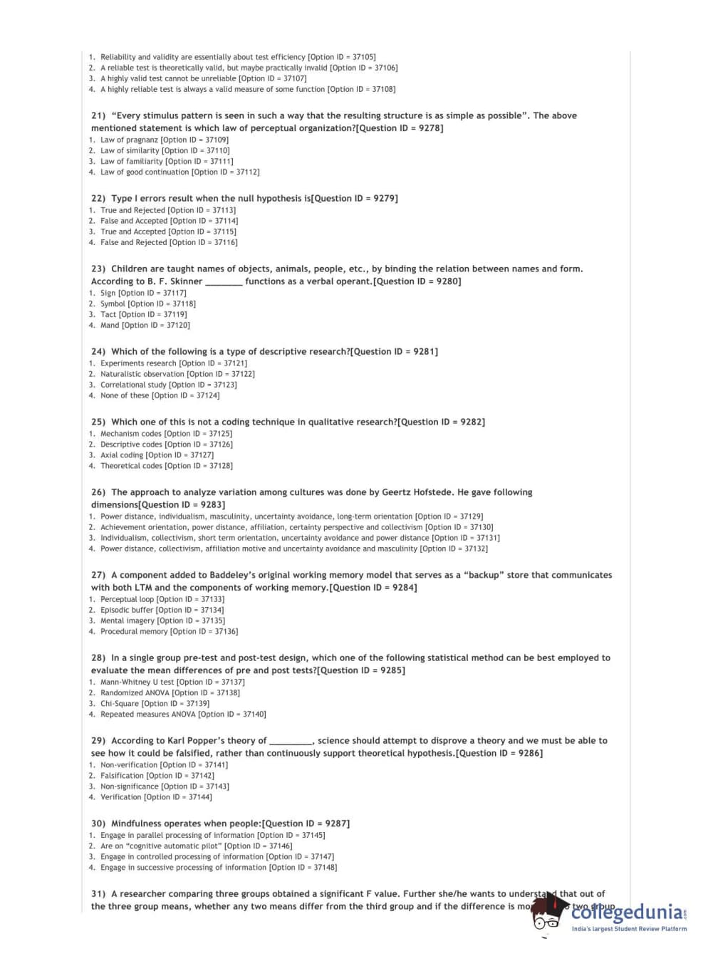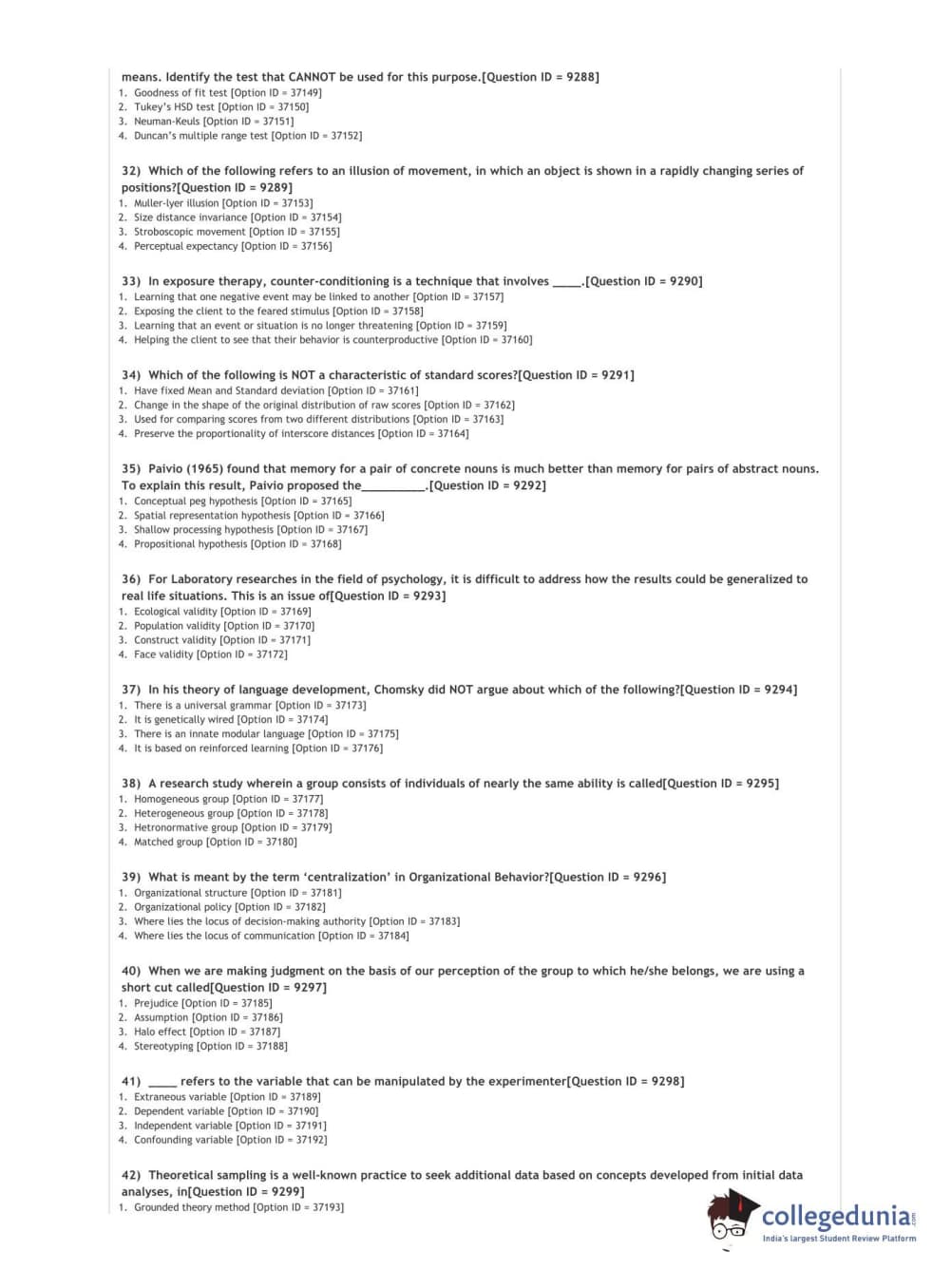 DUET 2021 DU PhD in Psychology Question paper with answer key pdf conducted on September 30, 2021 in Shift 3 is available for download. The exam was successfully organized by National Testing Agency (NTA). The question paper comprised a total of 50 questions.