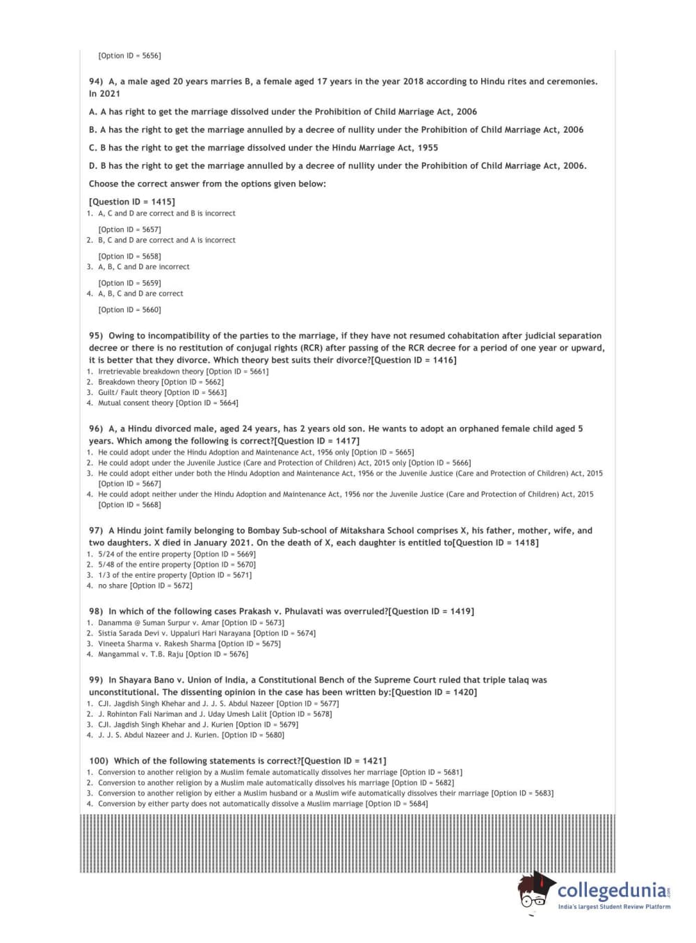 DUET 2021 L.L.M. Question paper with answer key pdf conducted on September 26, 2021 in Shift 2 is available for download. The exam was successfully organized by National Testing Agency (NTA). The question paper comprised a total of 100 questions.
