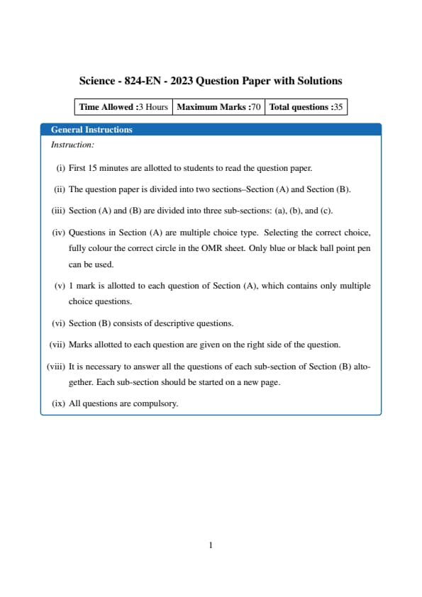 UP Board Class 10 Science Question Paper 2023 PDF (Code 824 EN) with Answer Key and Solutions PDF is available for download here. UP Board Class 10 exams were conducted between February 24th to March 12th 2023. The total marks for the theory paper were 70. Students reported the paper to be easy to moderate.