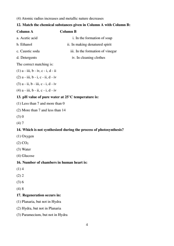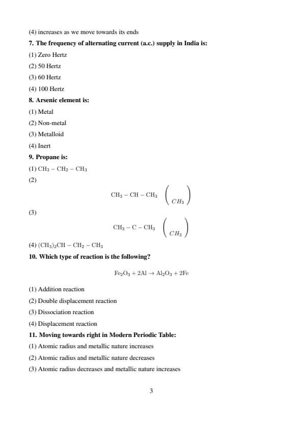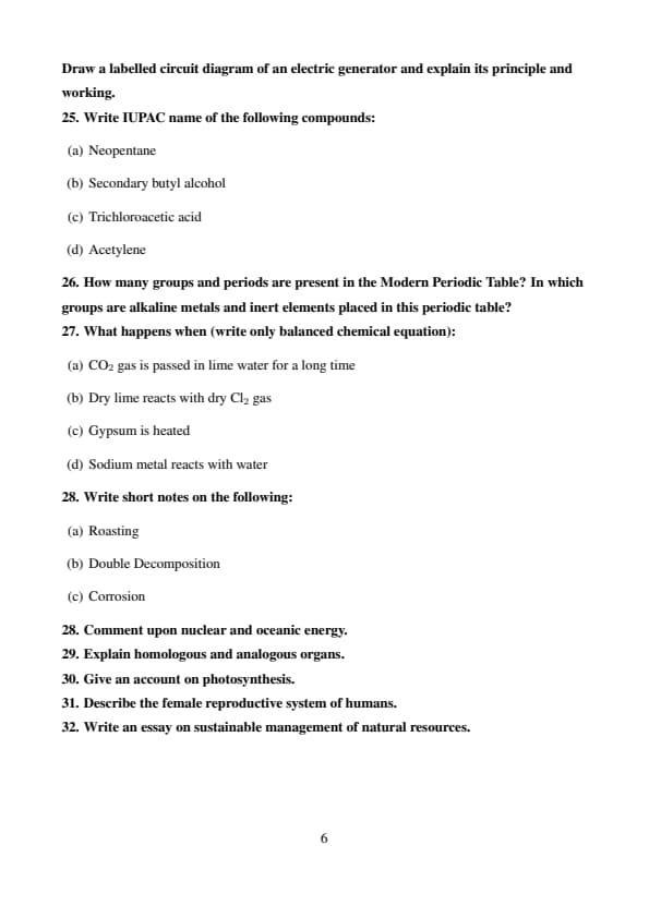 [(d)] \(2Na + 2H_2O \rightarrow 2NaOH + H_2 \uparrow\) Quick Tip: Write balanced equations by ensuring equal number of atoms of each element on both sides. Always include physical states (s, l, g, aq) in detailed answers if required.