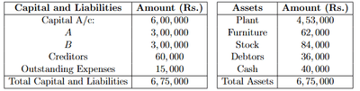 The capital of the firm was determined to be Rs. 6,00,000, which will be given in the profit ratio by the partners.