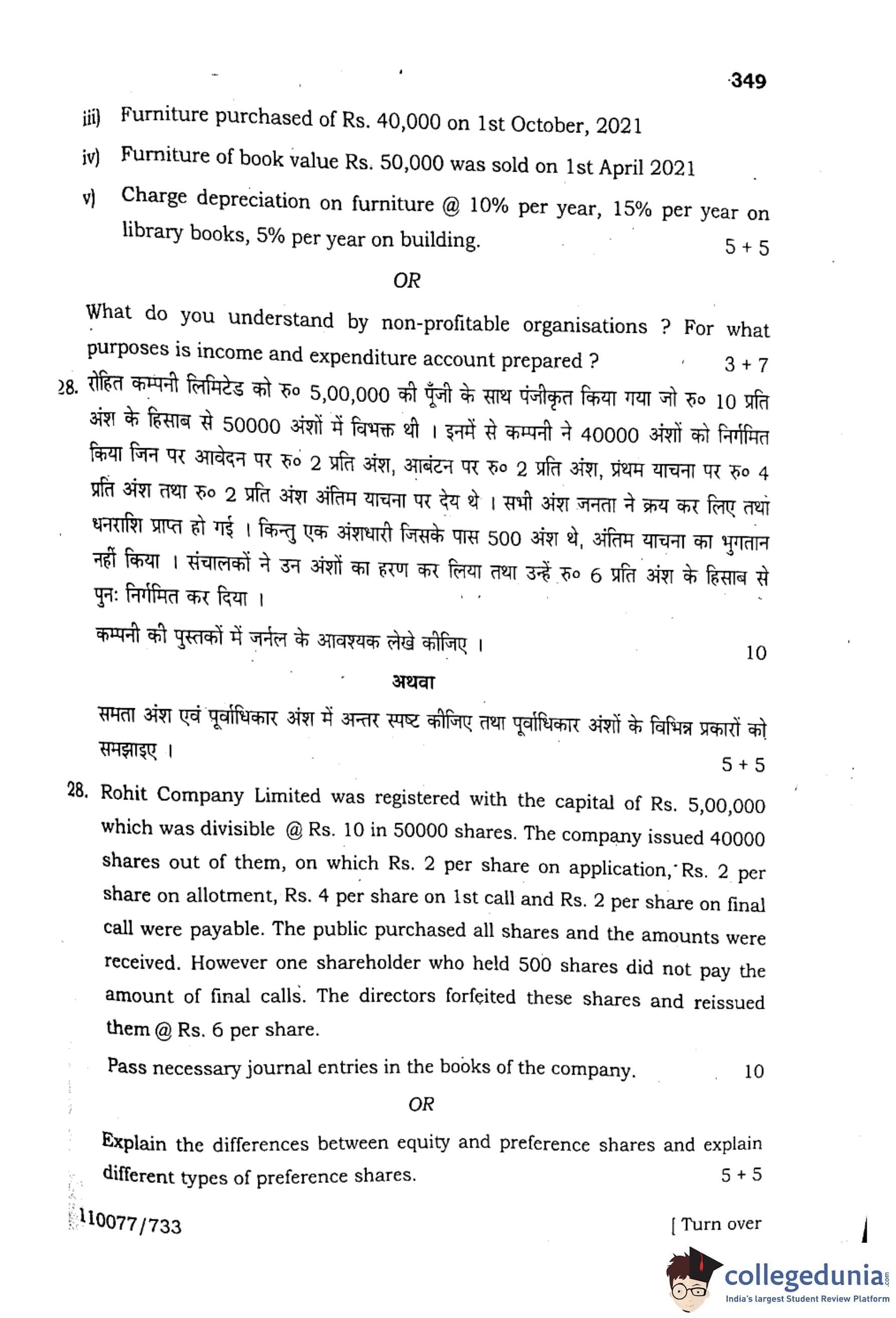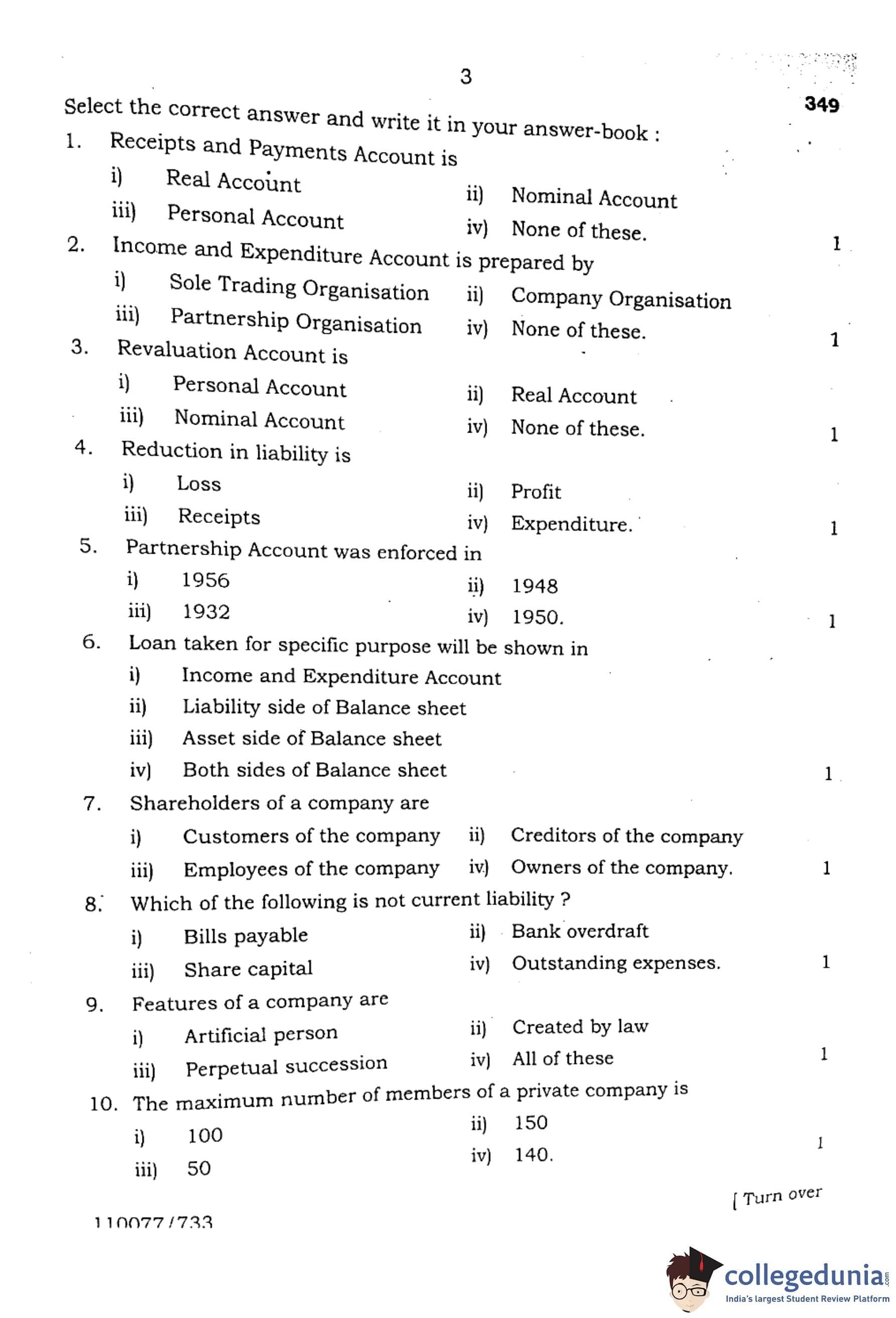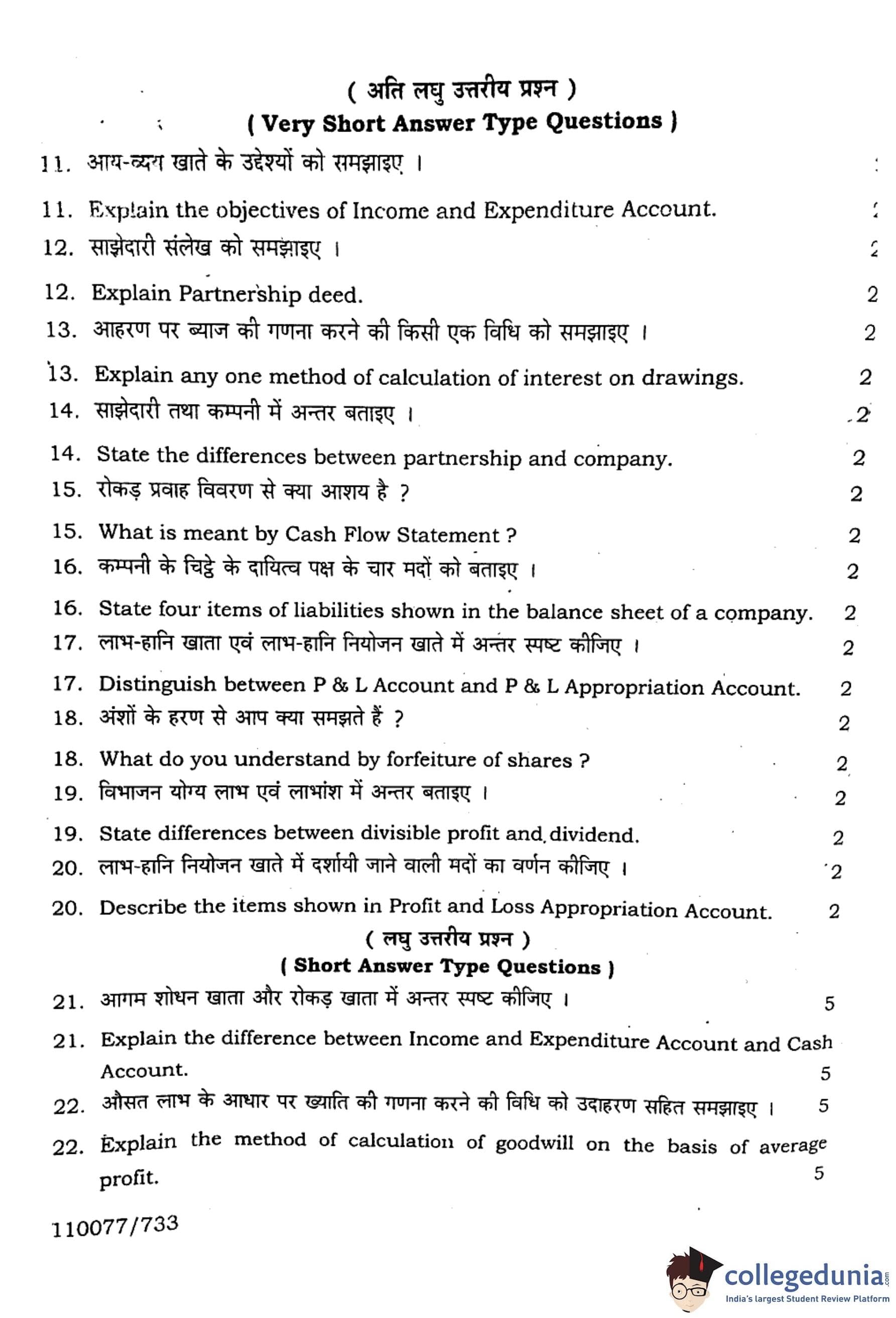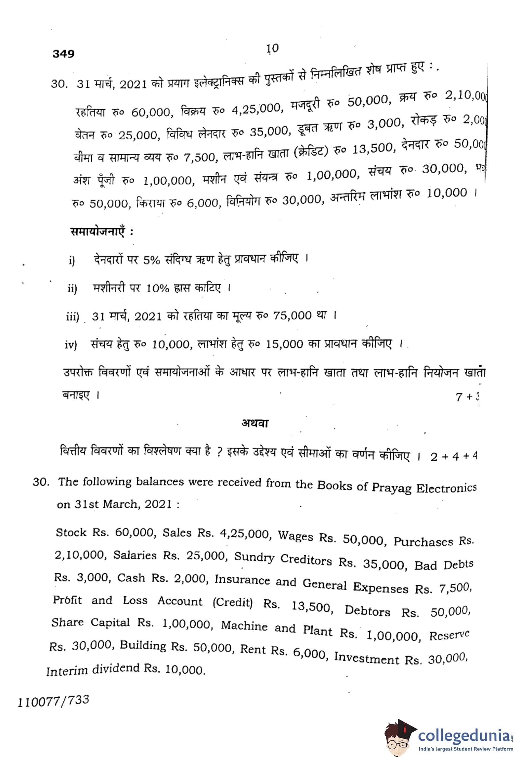 UP Board Class 12 Accountancy Question Paper 2023 with Answer Key Code 349 is available for download. The exam was conducted by the Uttar Pradesh Madhyamik Shiksha Parishad (UPMSP) on February 20, 2023 in Morning Session 8 AM to 11:15 AM. The medium of paper was English and Hindi. The question paper comprised a total of 30 questions.