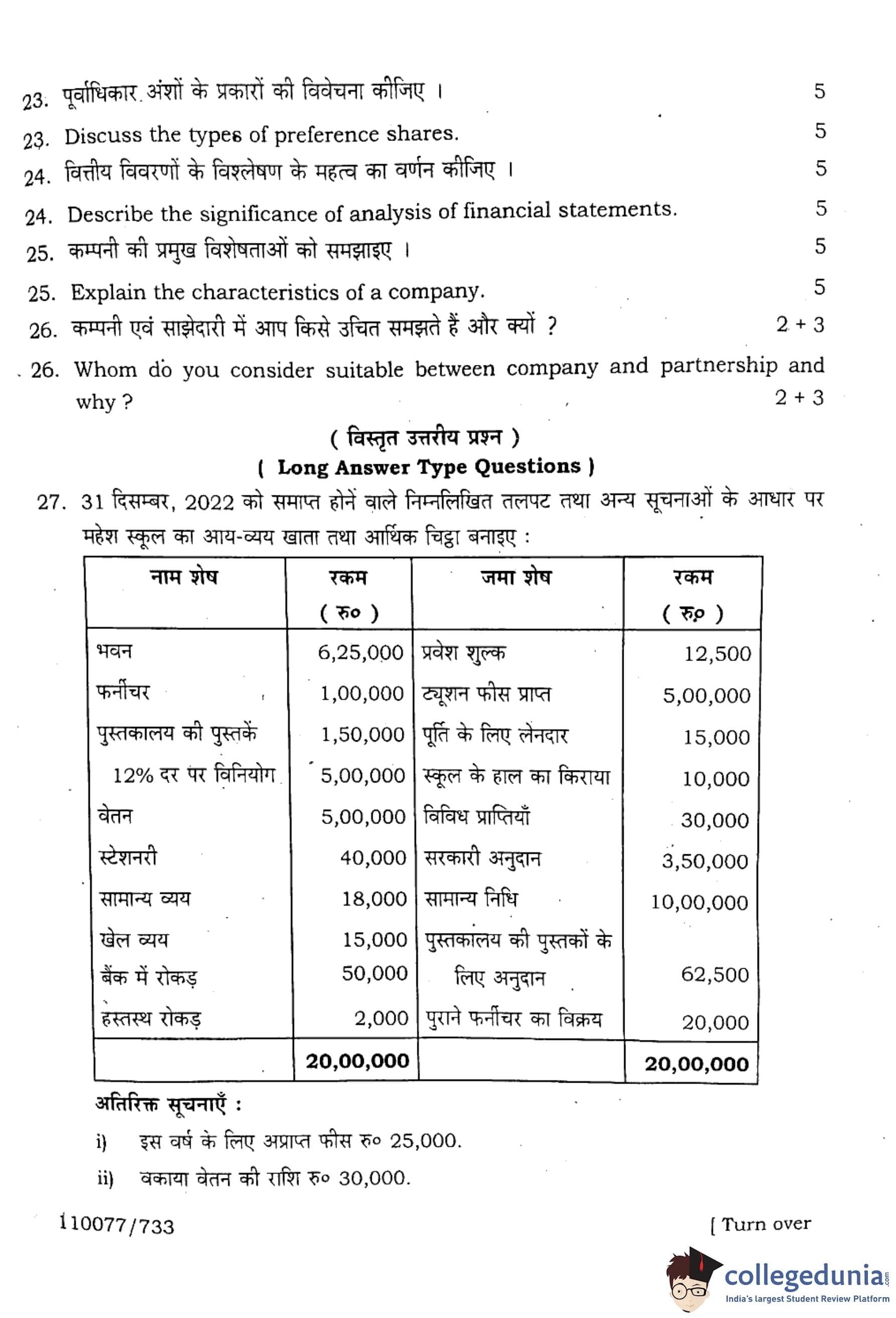 | UP Board Class 12 Accountancy Question Paper with Solutions PDF | Check Solutions |