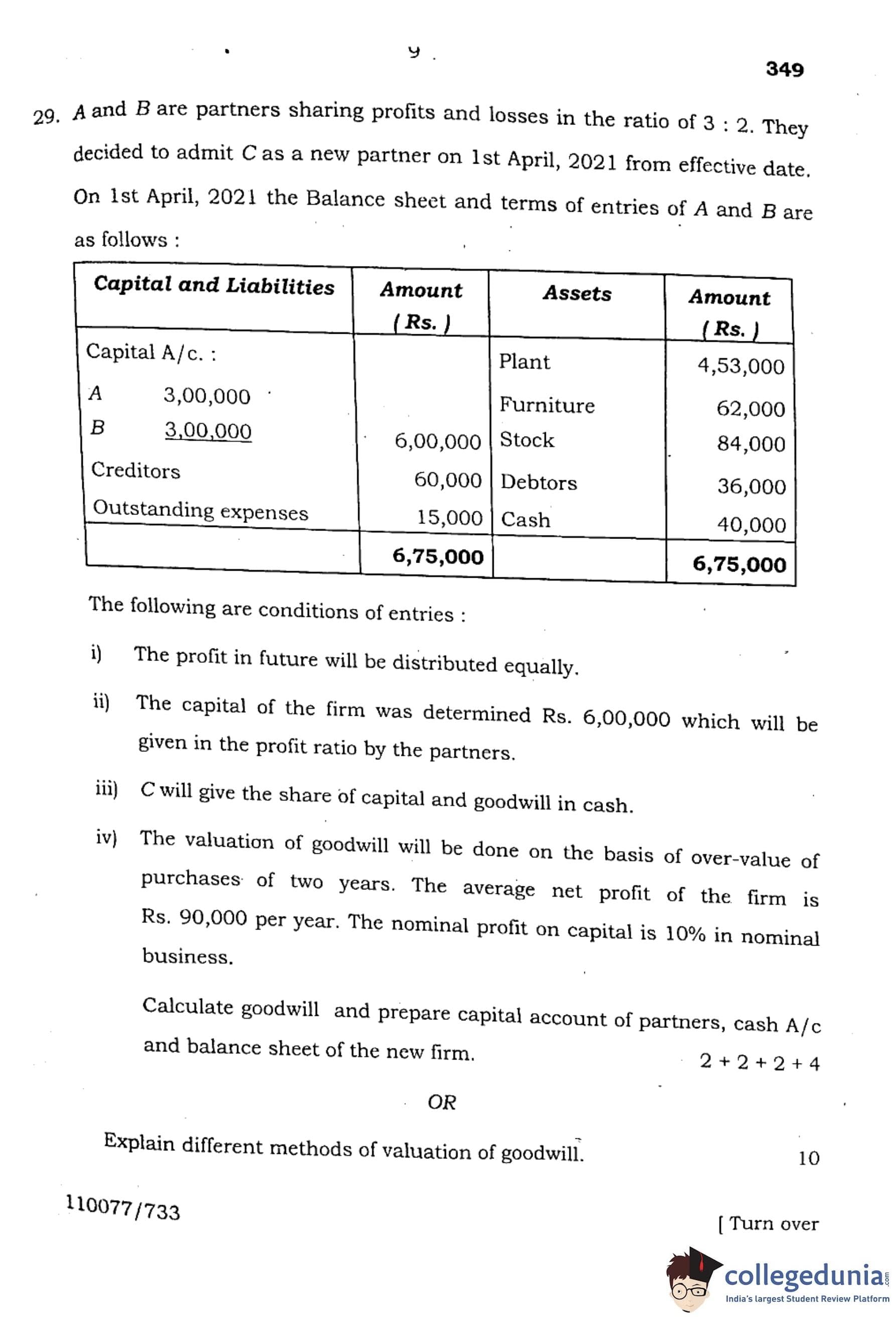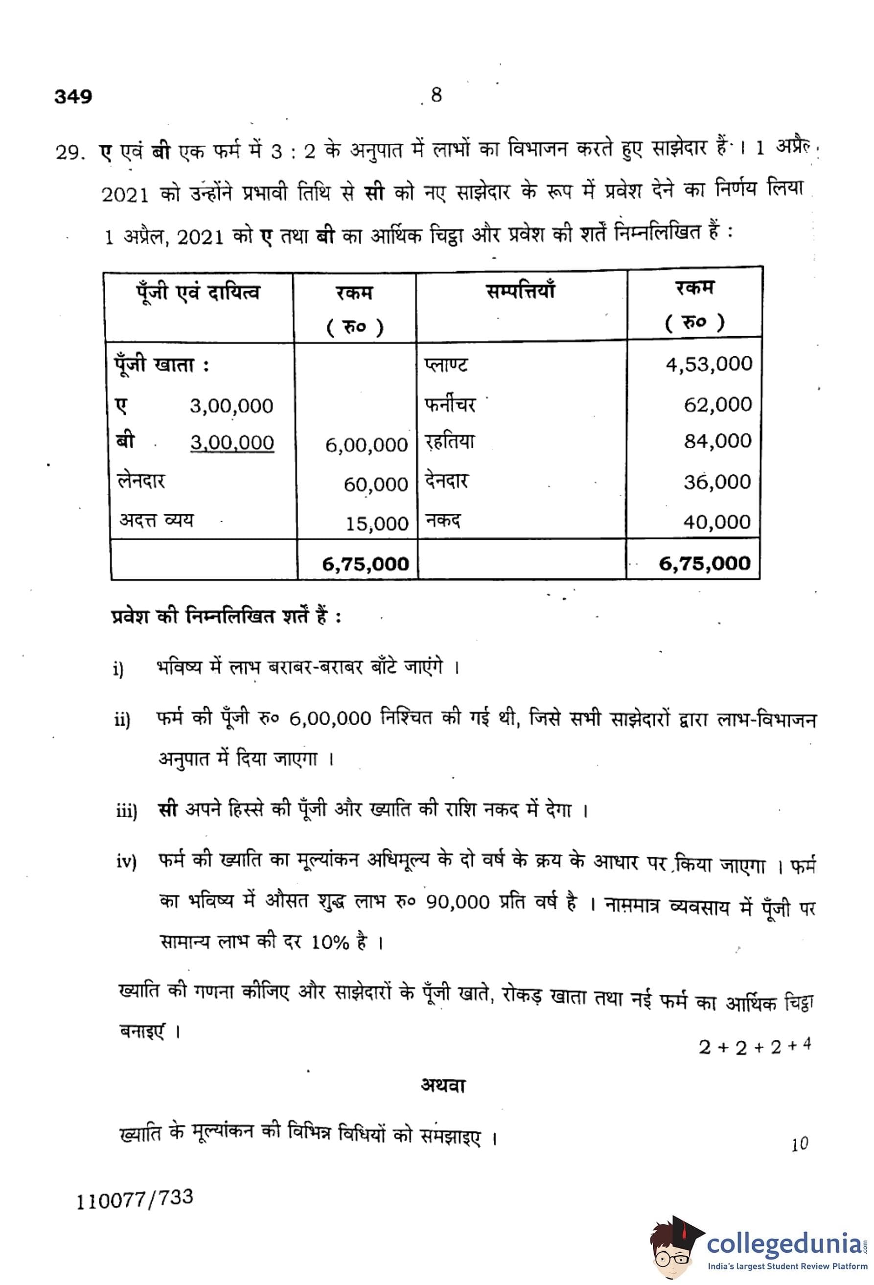 UP Board Class 12 Accountancy (Code 349) Question Paper 2023 with Solutions PDF