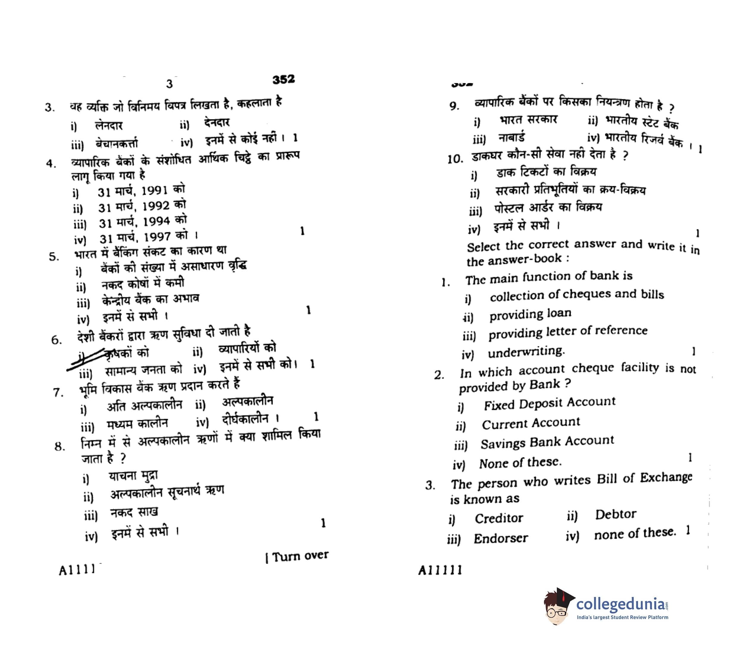 UP Board Class 12 Adhikoshan Tatva Code 352 Question Paper 2019 with Answer Key (February 23)