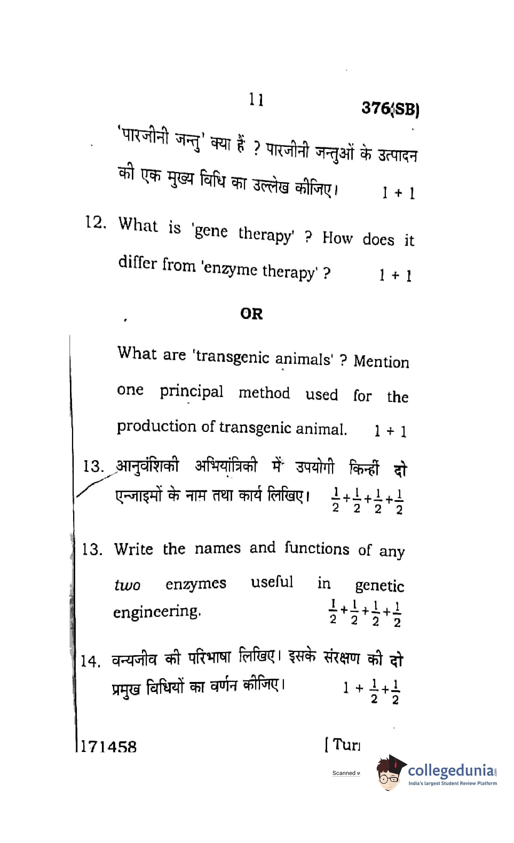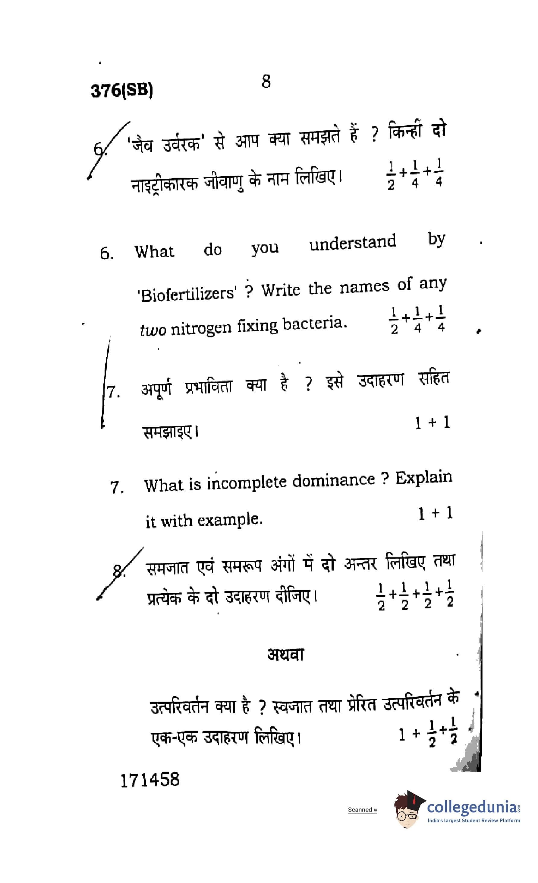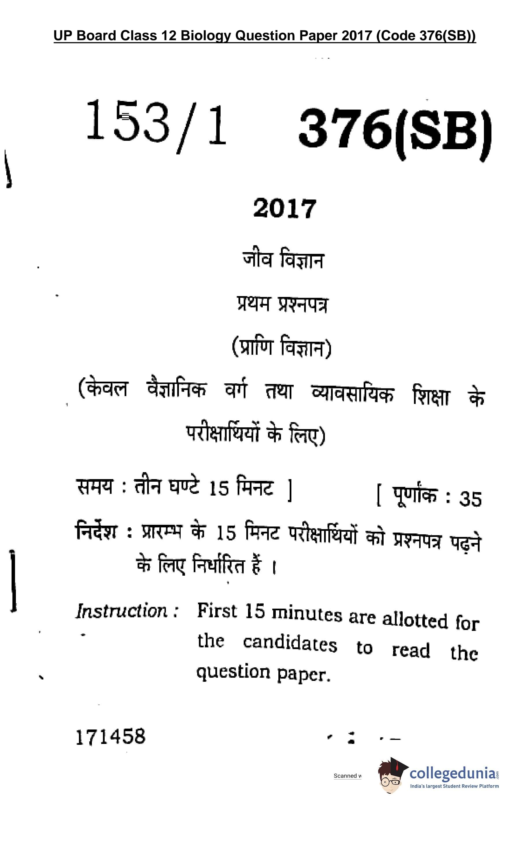 UP Board Class 12 Biology-1 Question Paper 2017 with Answer Key Code 376(SB) is available for download. The exam was conducted by the Uttar Pradesh Madhyamik Shiksha Parishad (UPMSP) on March 30, 2017 in the Afternoon Session 2 PM to 5:15 PM. The medium of paper was English and Hindi. The question paper comprised a total of 16 questions.