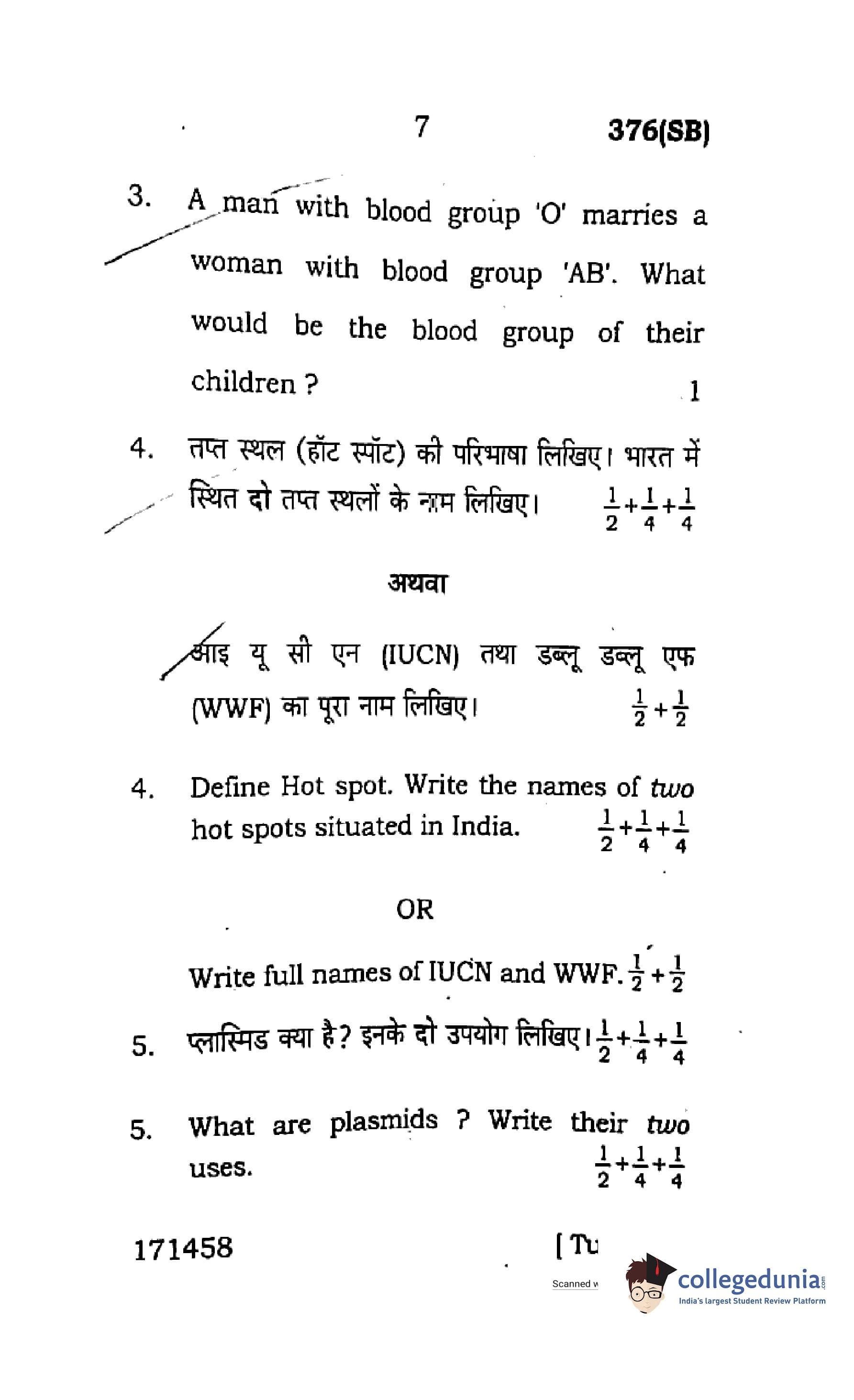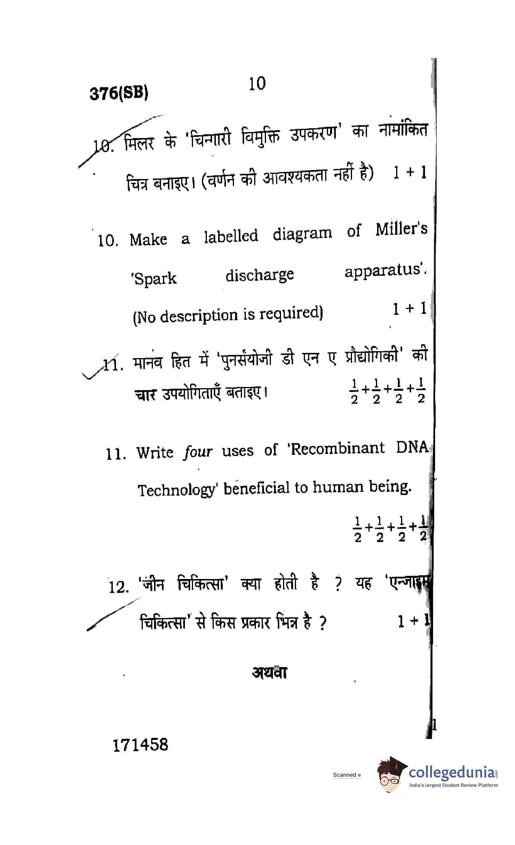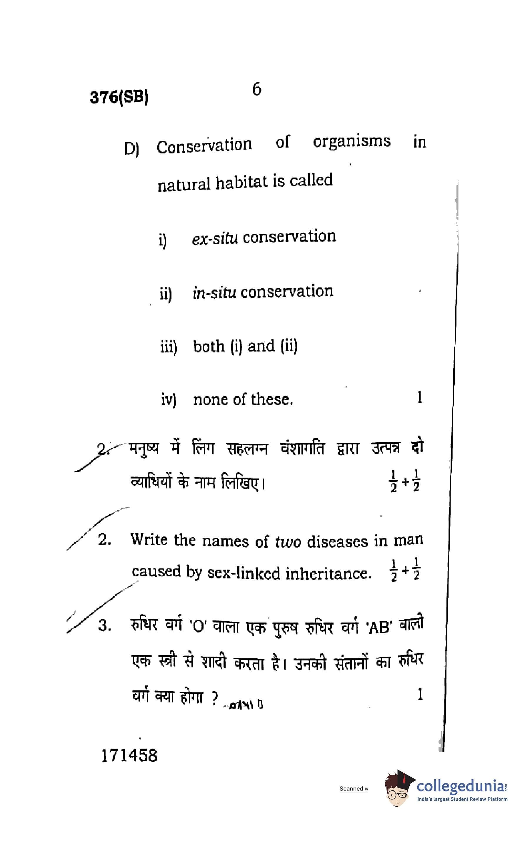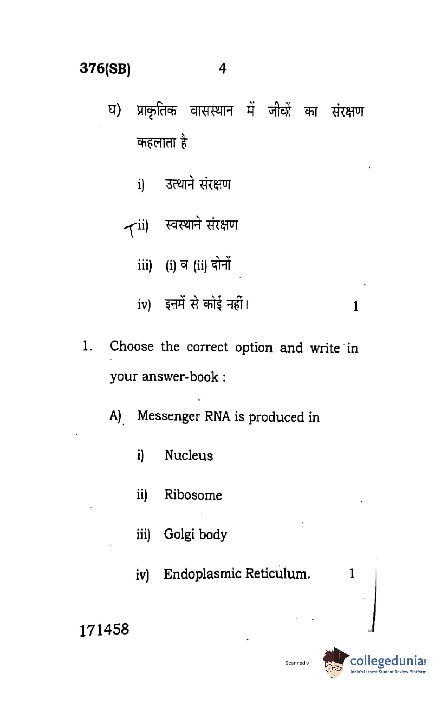 UP Board Class 12 Biology-1 Question Paper 2017 with Answer Key Code 376(SB) is available for download. The exam was conducted by the Uttar Pradesh Madhyamik Shiksha Parishad (UPMSP) on March 30, 2017 in the Afternoon Session 2 PM to 5:15 PM. The medium of paper was English and Hindi. The question paper comprised a total of 16 questions.