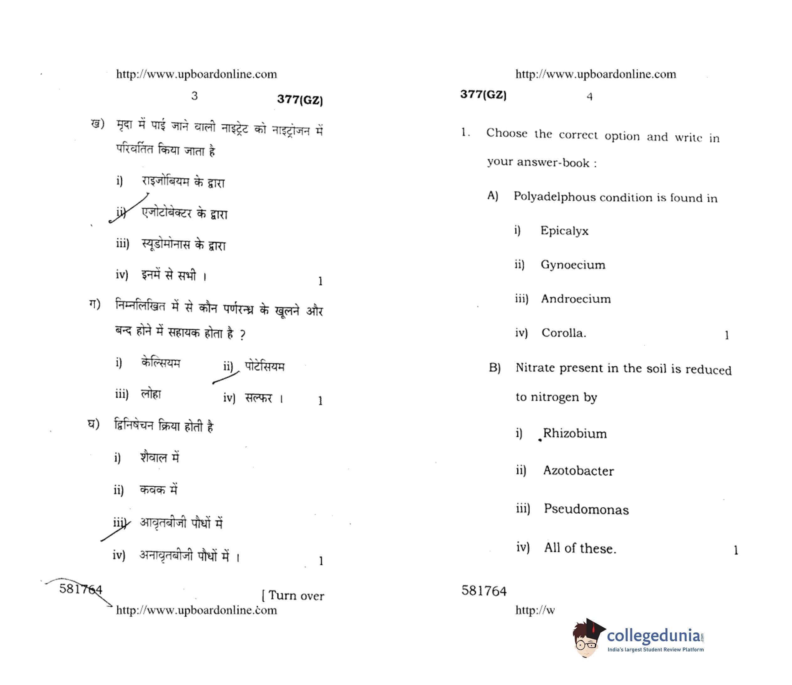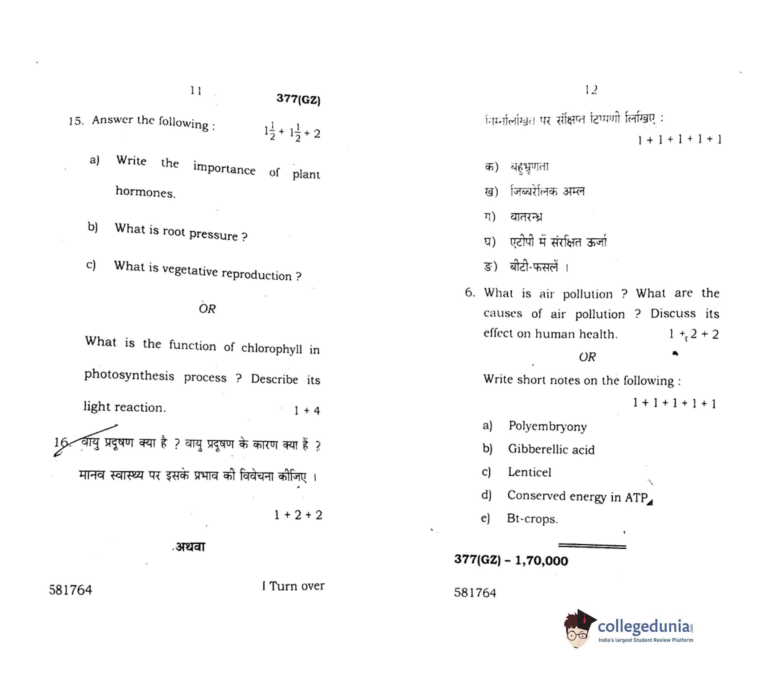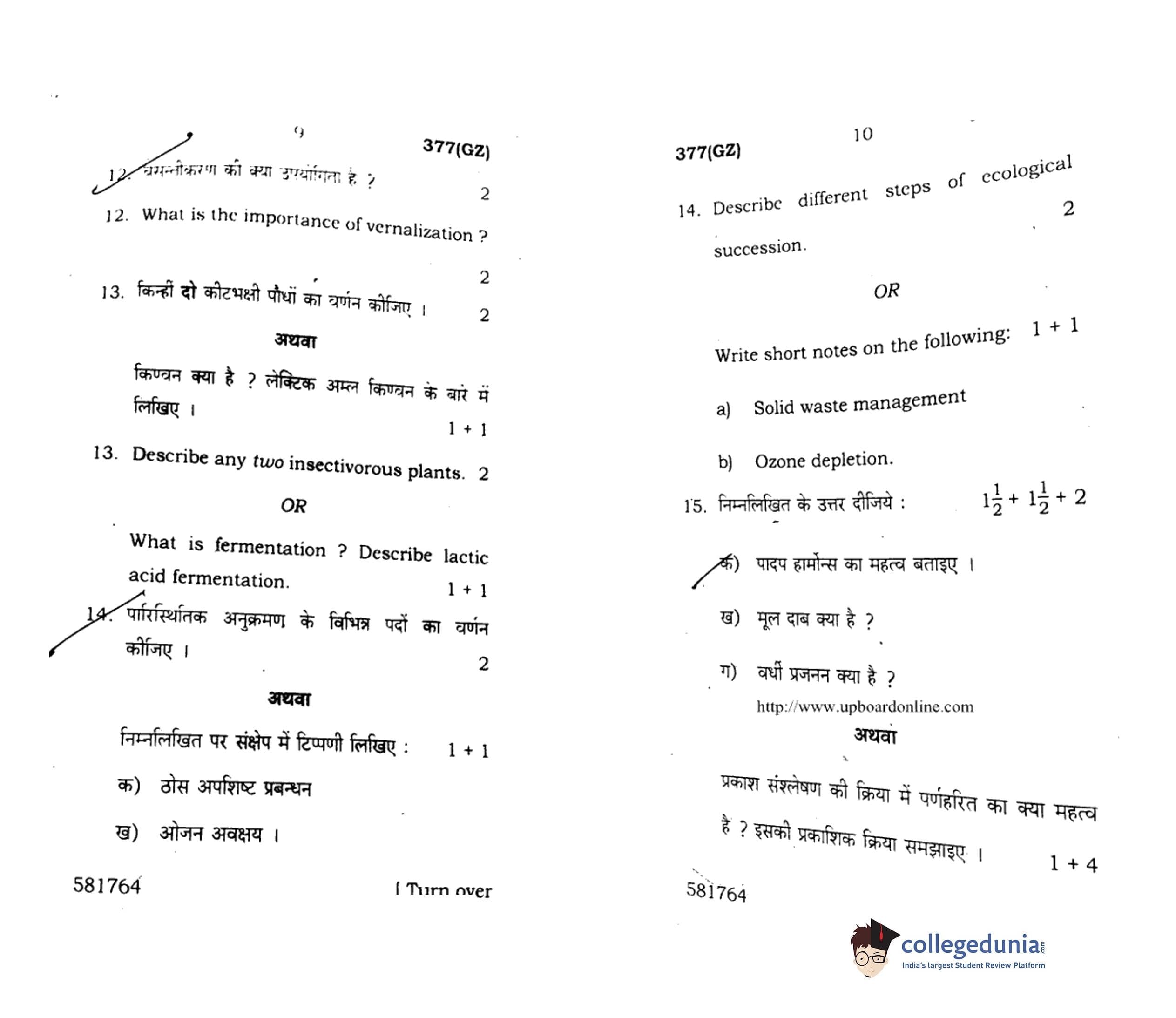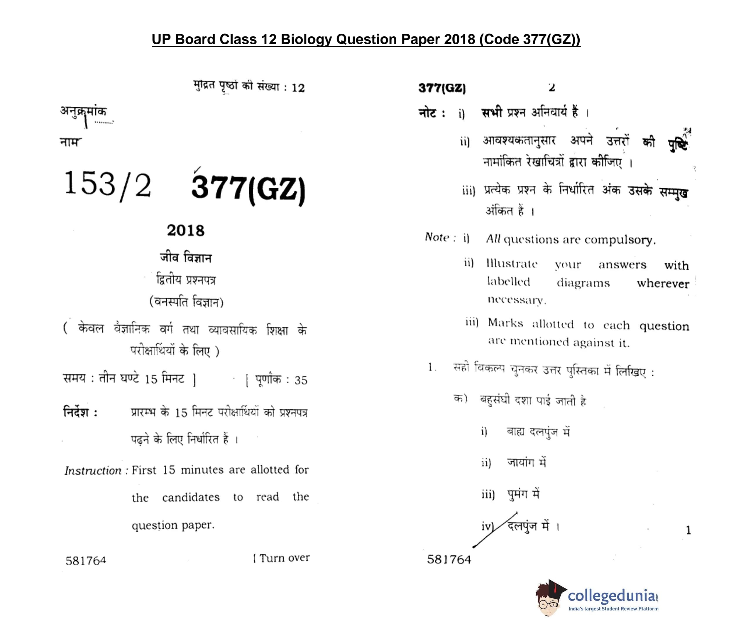 UP Board Class 12 Biology-2 Question Paper 2018 with Answer Key Code 377(GZ) is available for download. The exam was conducted by the Uttar Pradesh Madhyamik Shiksha Parishad (UPMSP) on March 7, 2018 in the Afternoon Session 2 PM to 5:15 PM. The medium of paper was English and Hindi. The question paper comprised a total of 16 questions.