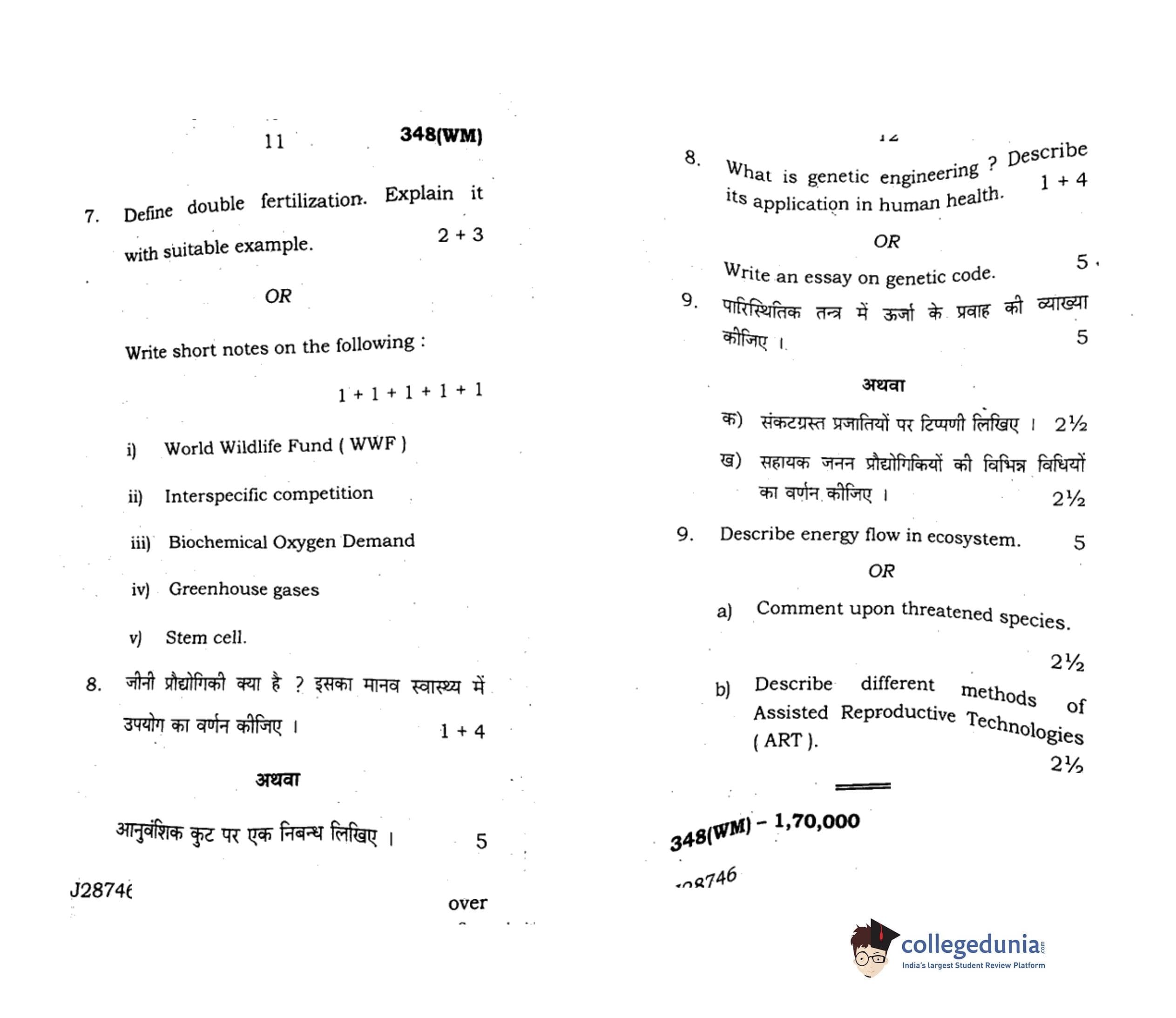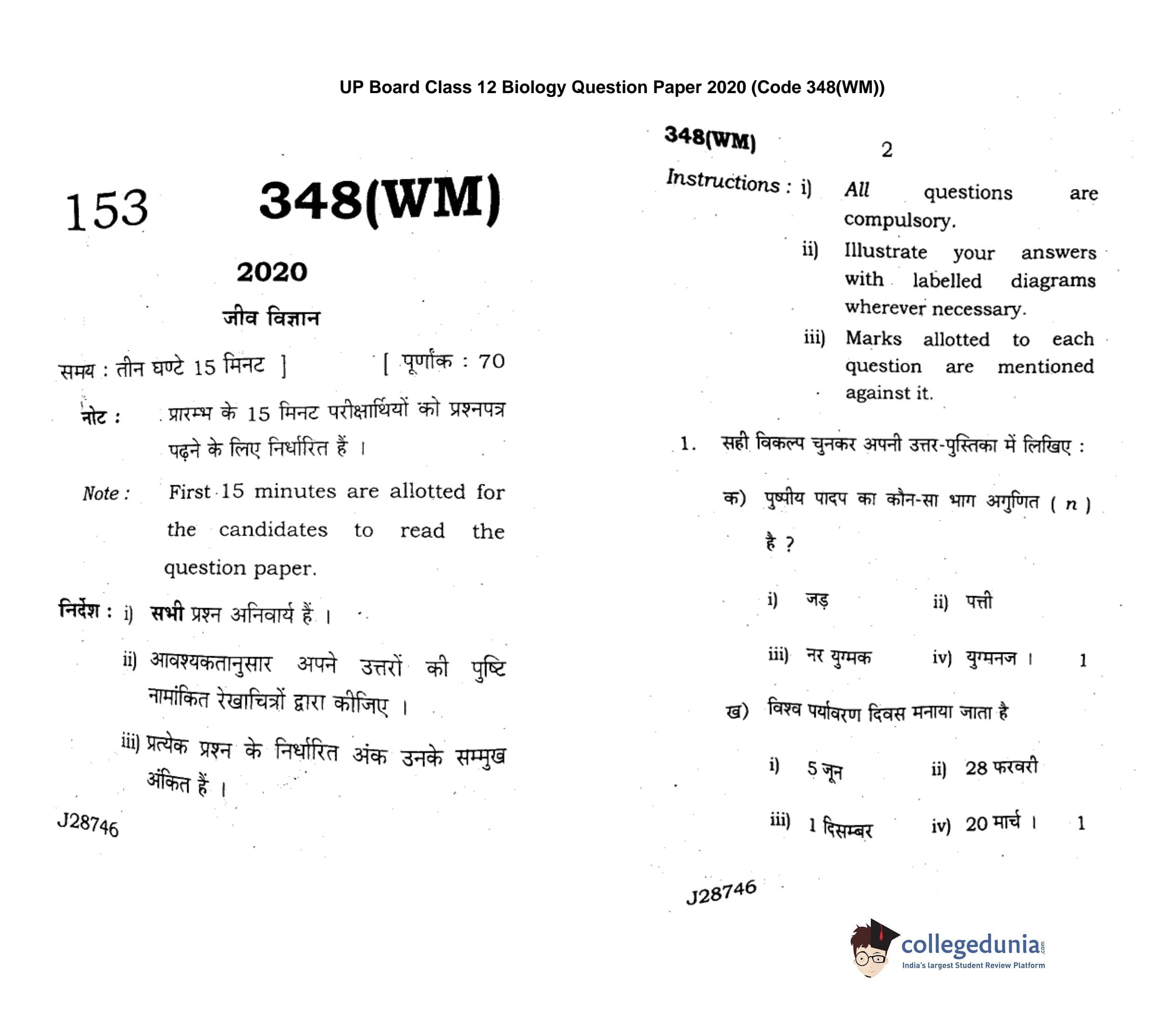 UP Board Class 12 Biology Question Paper 2020 with Answer Key Code 348(WM) is available for download. The exam was conducted by the Uttar Pradesh Madhyamik Shiksha Parishad (UPMSP) on February 29, 2020 in the Afternoon Session 2 PM to 5:15 PM. The medium of paper was English and Hindi. The question paper comprised a total of 9 questions.