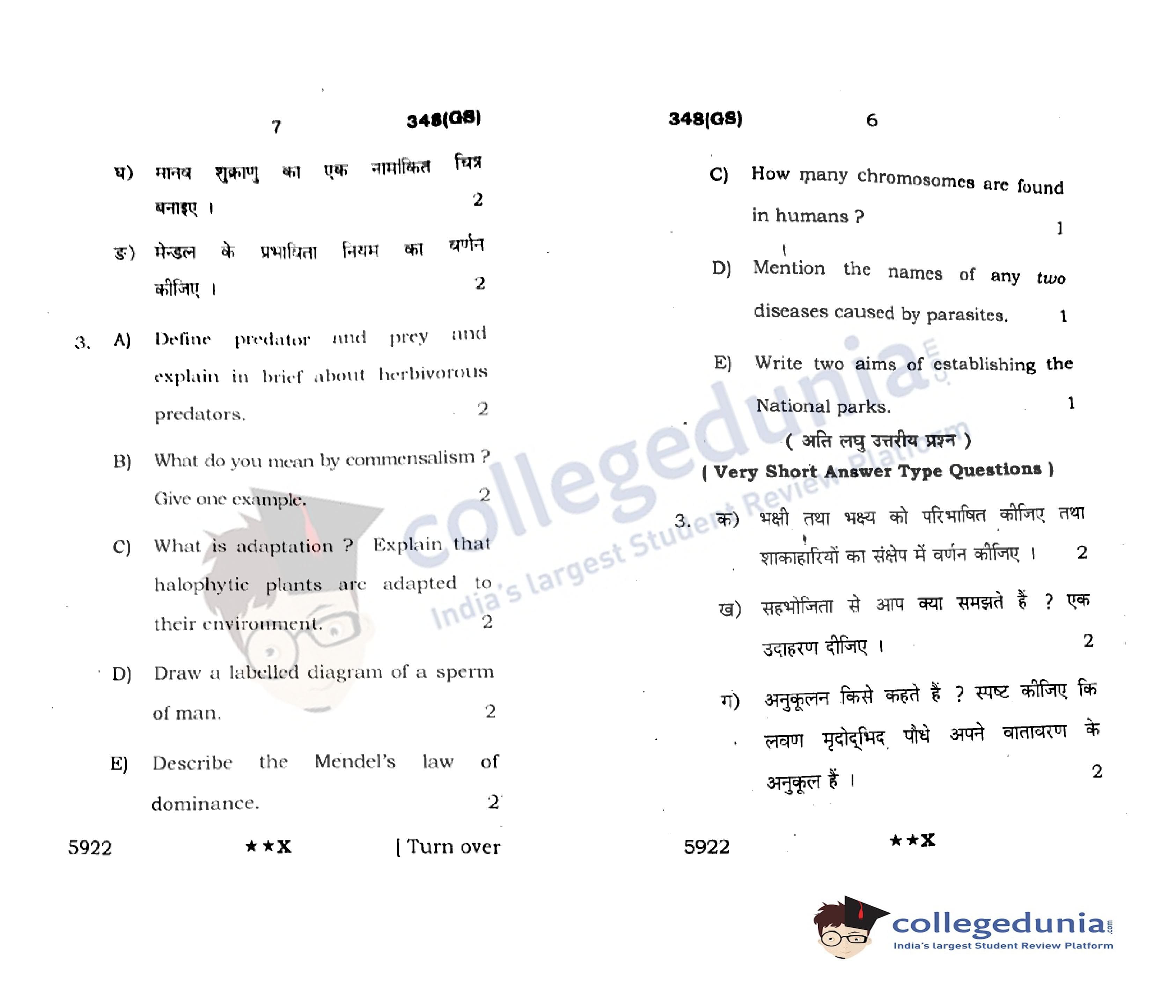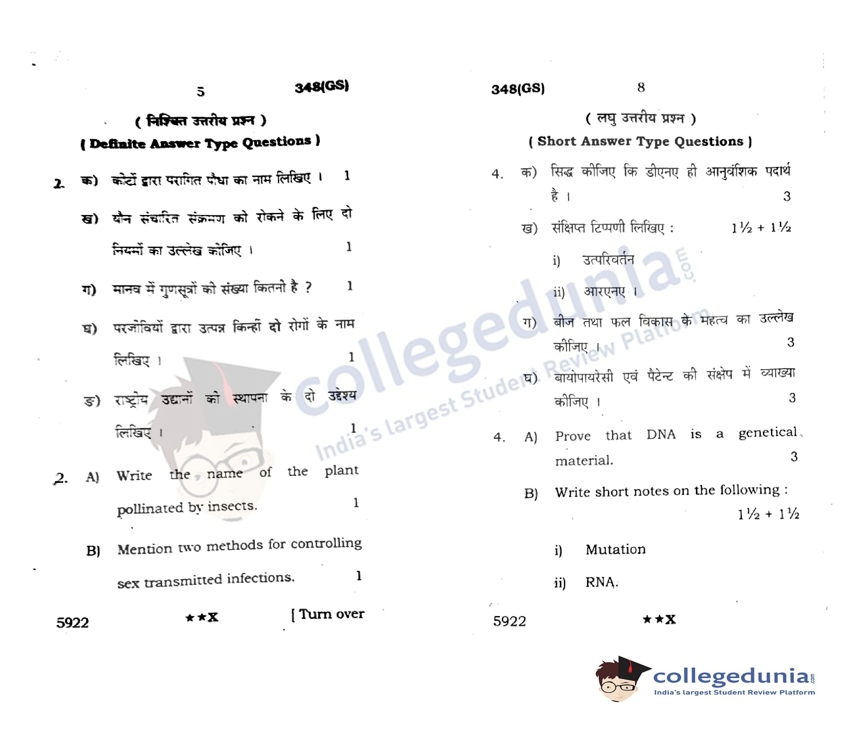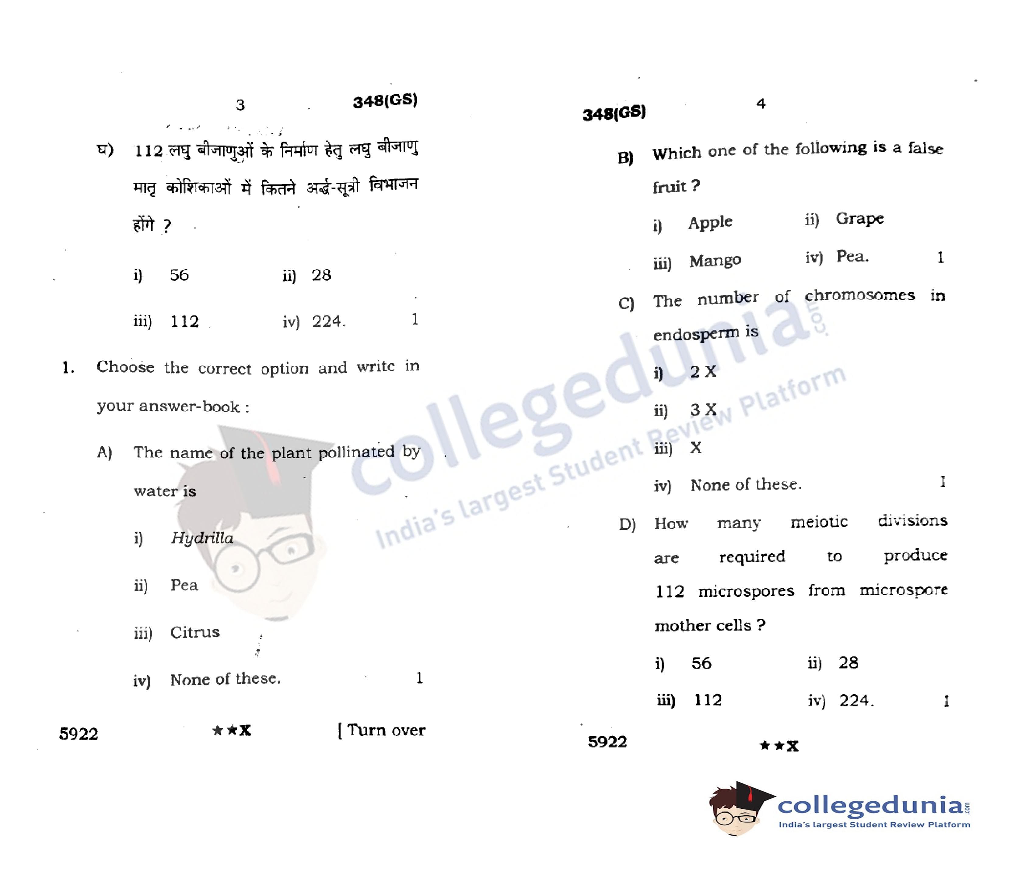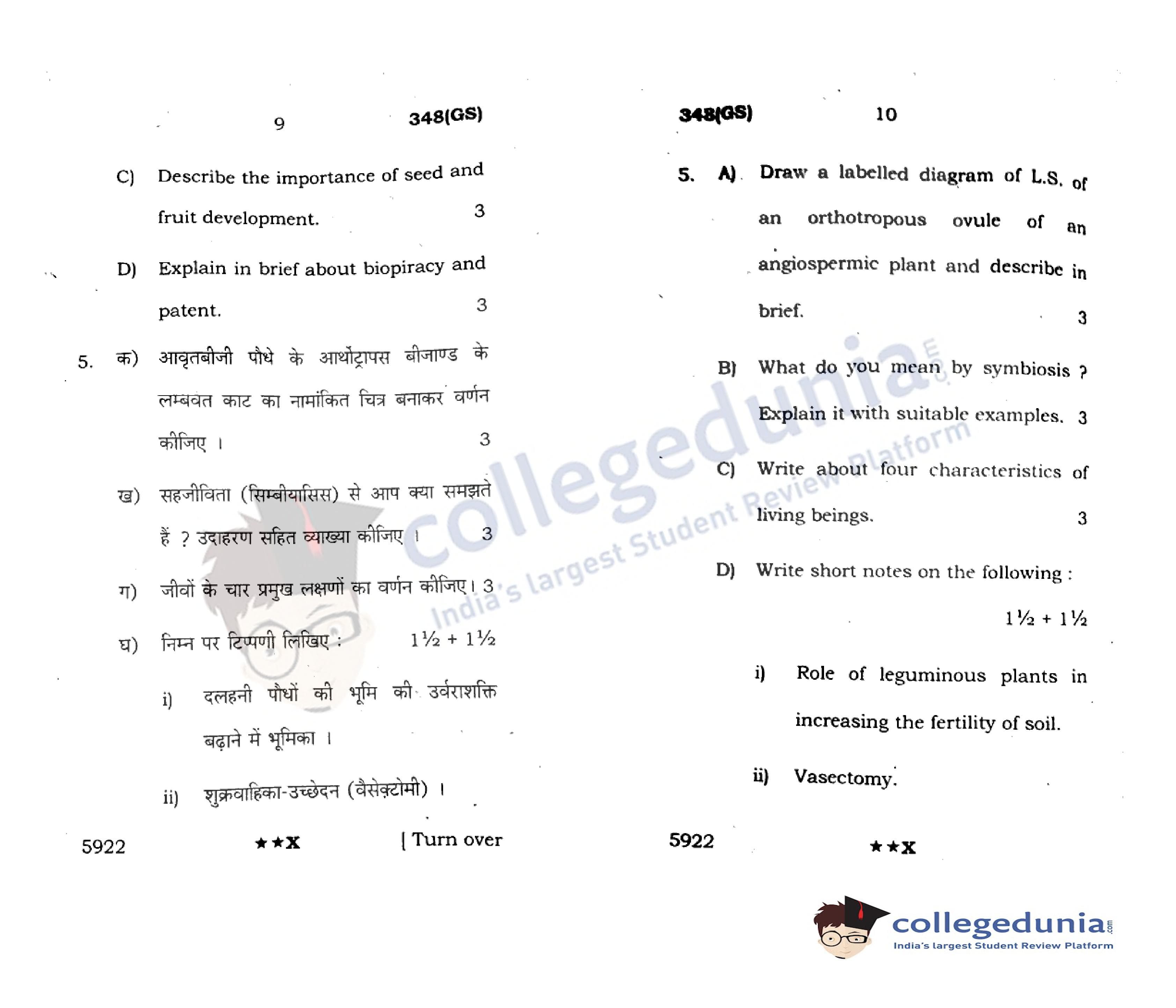 UP Board Class 12 Biology Code 348(GS) Question Paper 2022 with Answer Key (April 4)