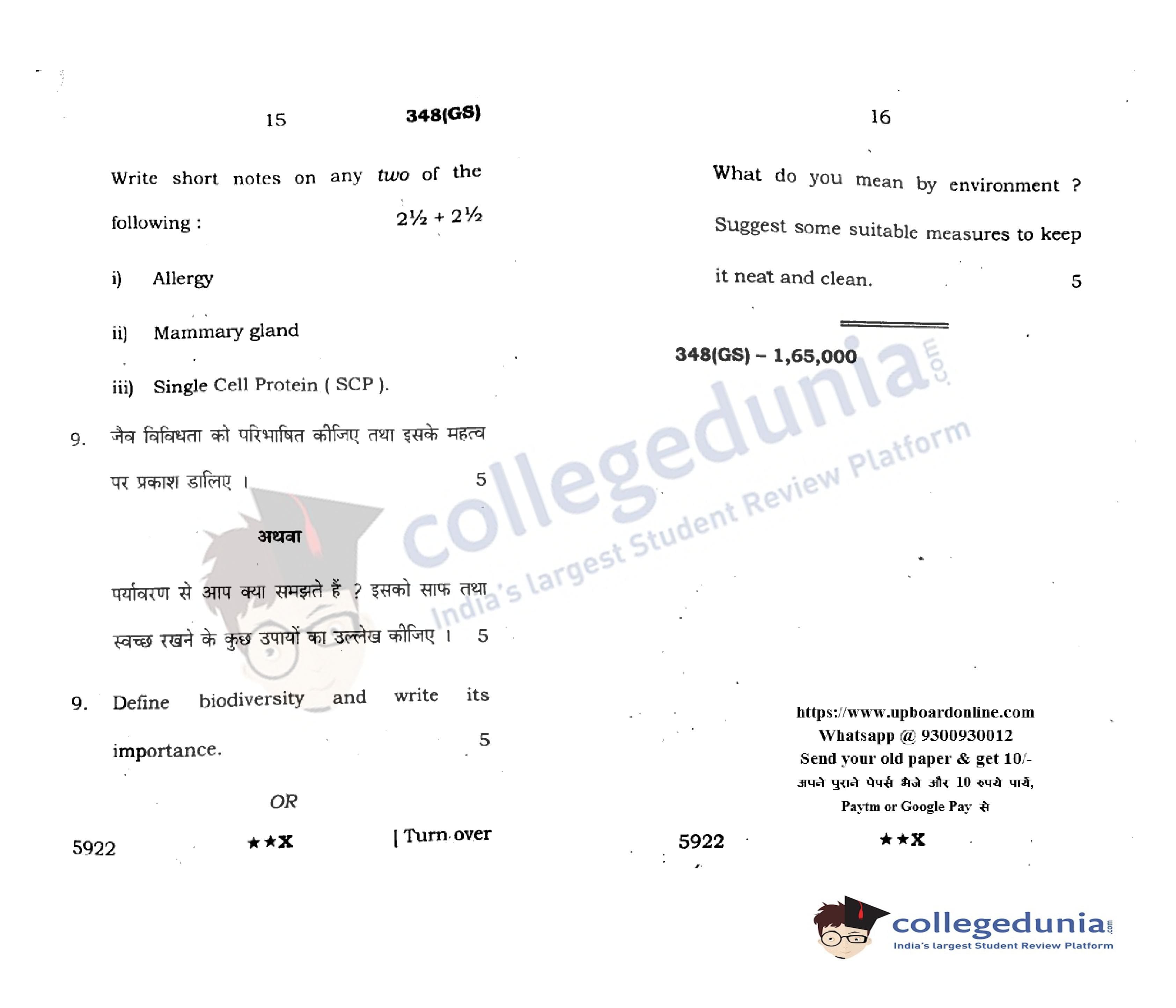 UP Board Class 12 Biology Question Paper 2022 with Answer Key Code 348(GS) is available for download. The exam was conducted by the Uttar Pradesh Madhyamik Shiksha Parishad (UPMSP) on April 4, 2022 in the Afternoon Session 2 PM to 5:15 PM. The medium of paper was English and Hindi. The question paper comprised a total of 9 questions.