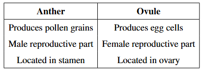 Quick Tip: Remember: Anther = Male, Ovule = Female; Anther produces pollen, Ovule produces eggs.