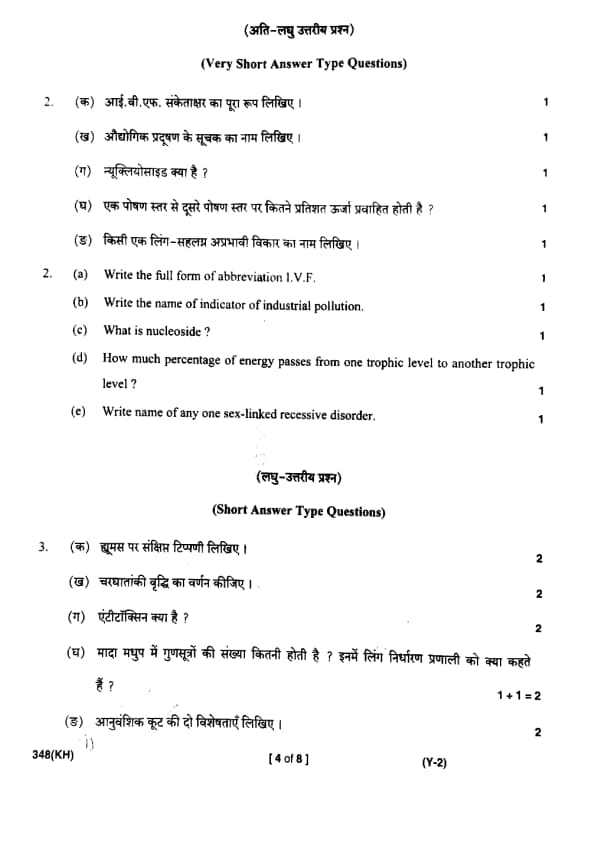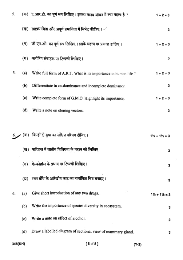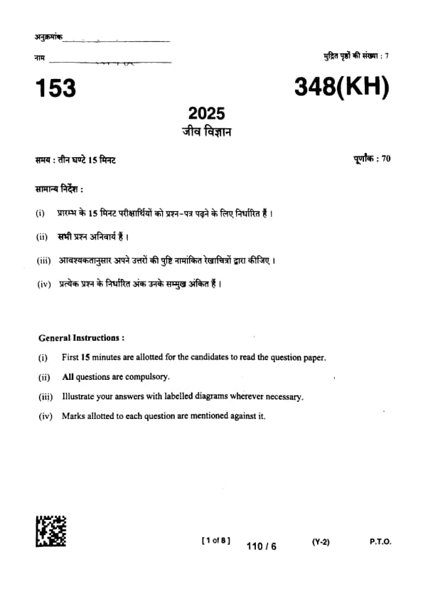 UP Board Class 12 Biology Question Paper 2025 (Code 348 KH) with Solutions