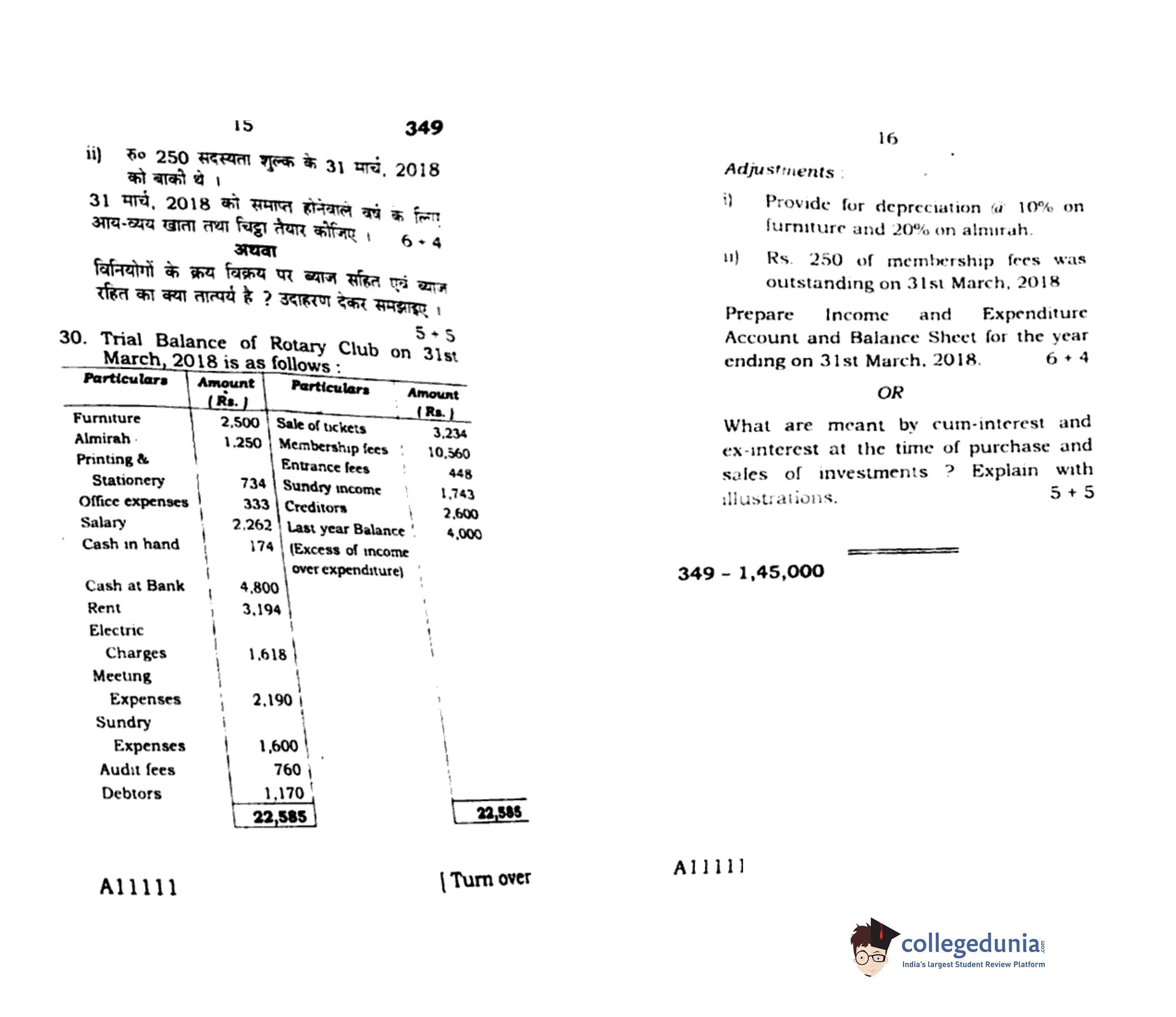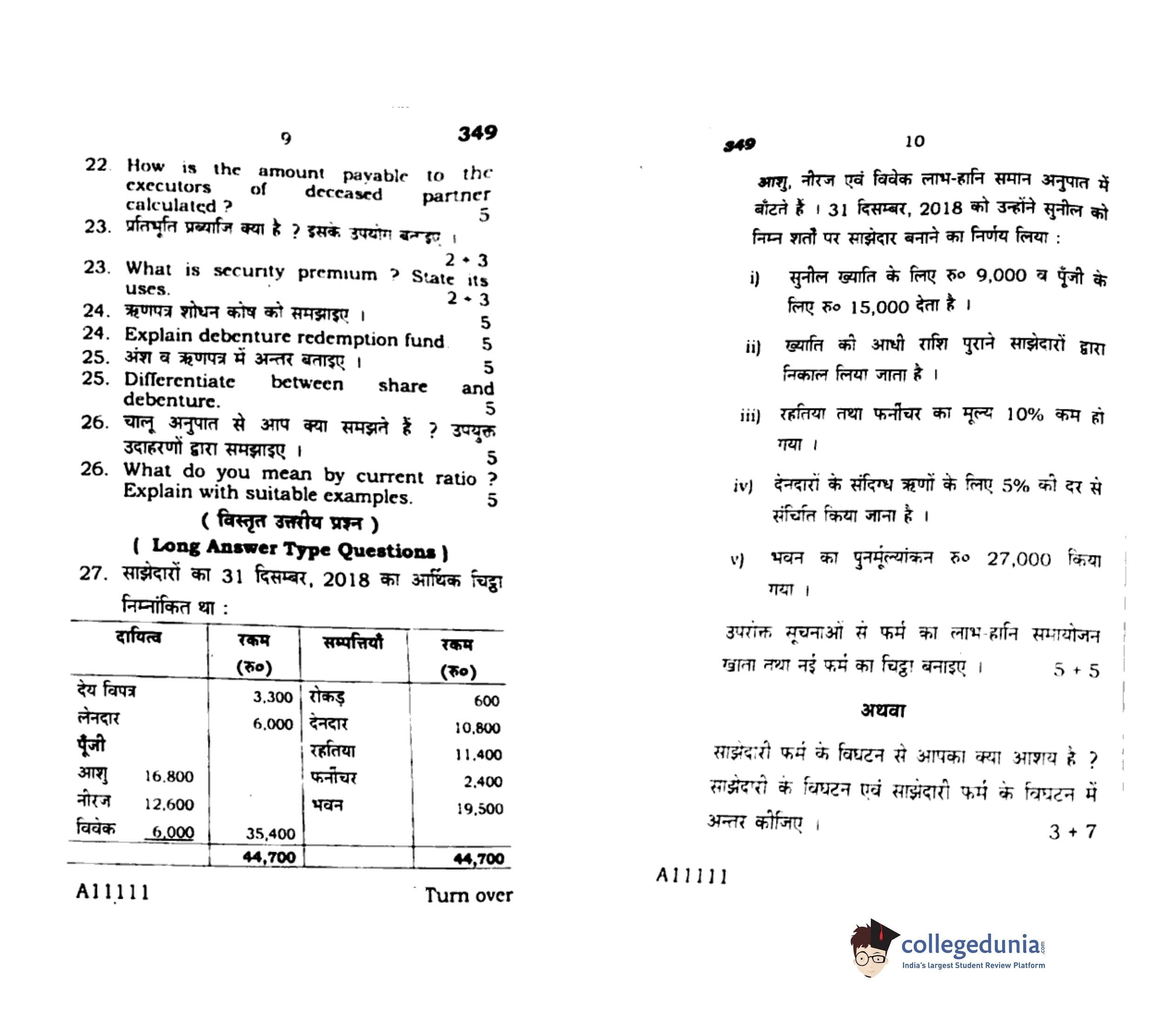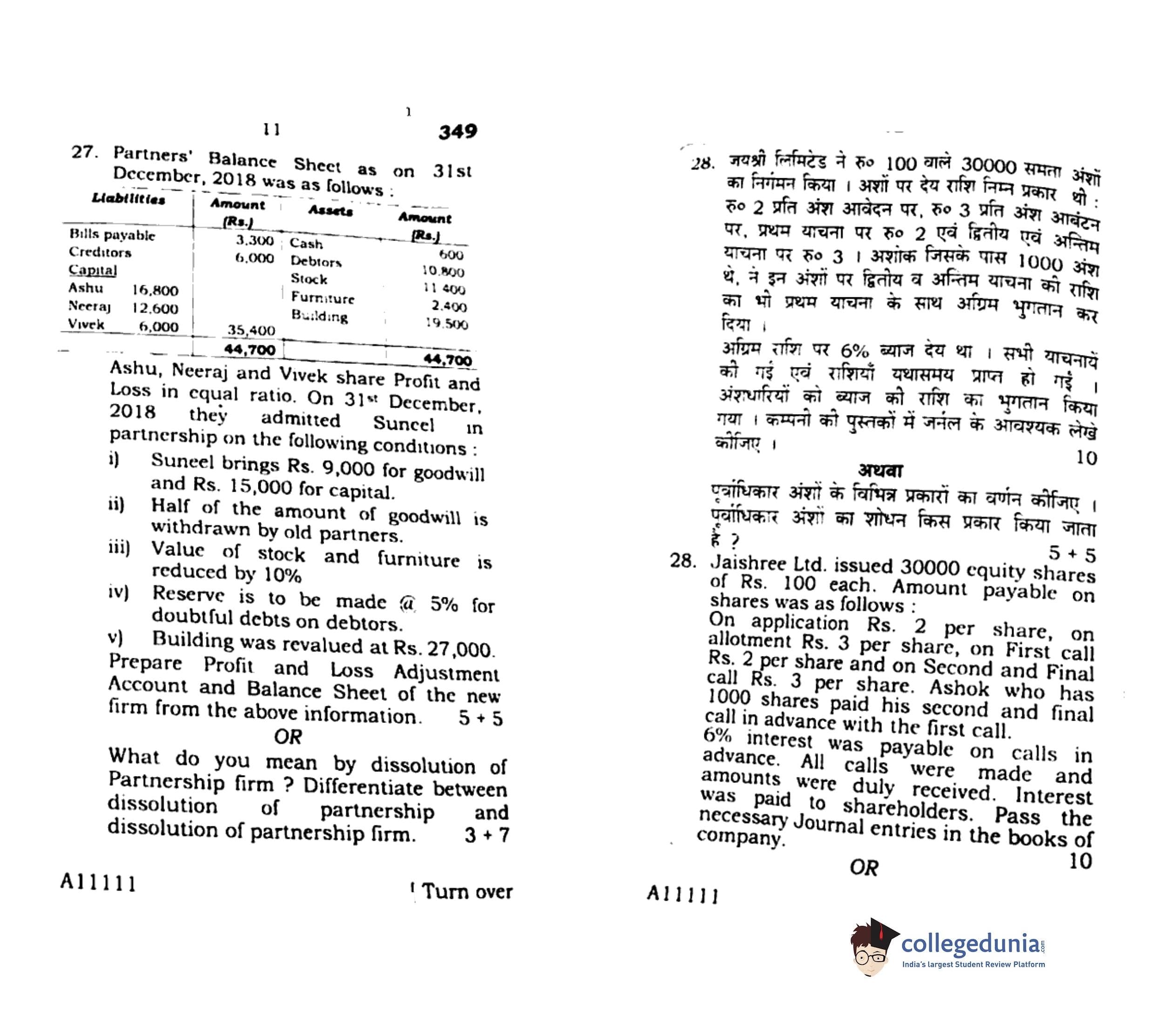 UP Board Class 12 Bookkeeping And Accountancy Code 349 Question Paper 2019 with Answer Key (February 14)