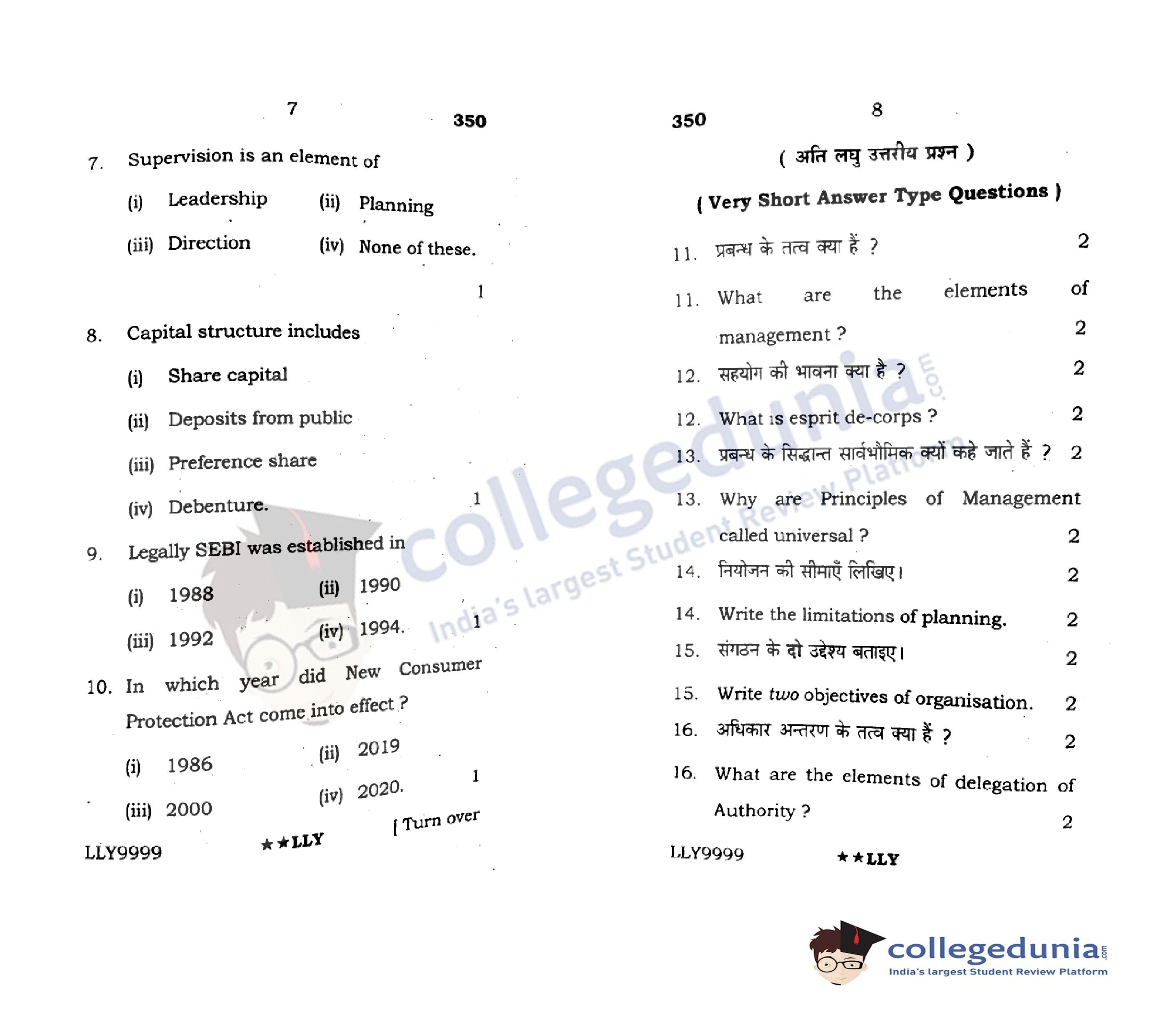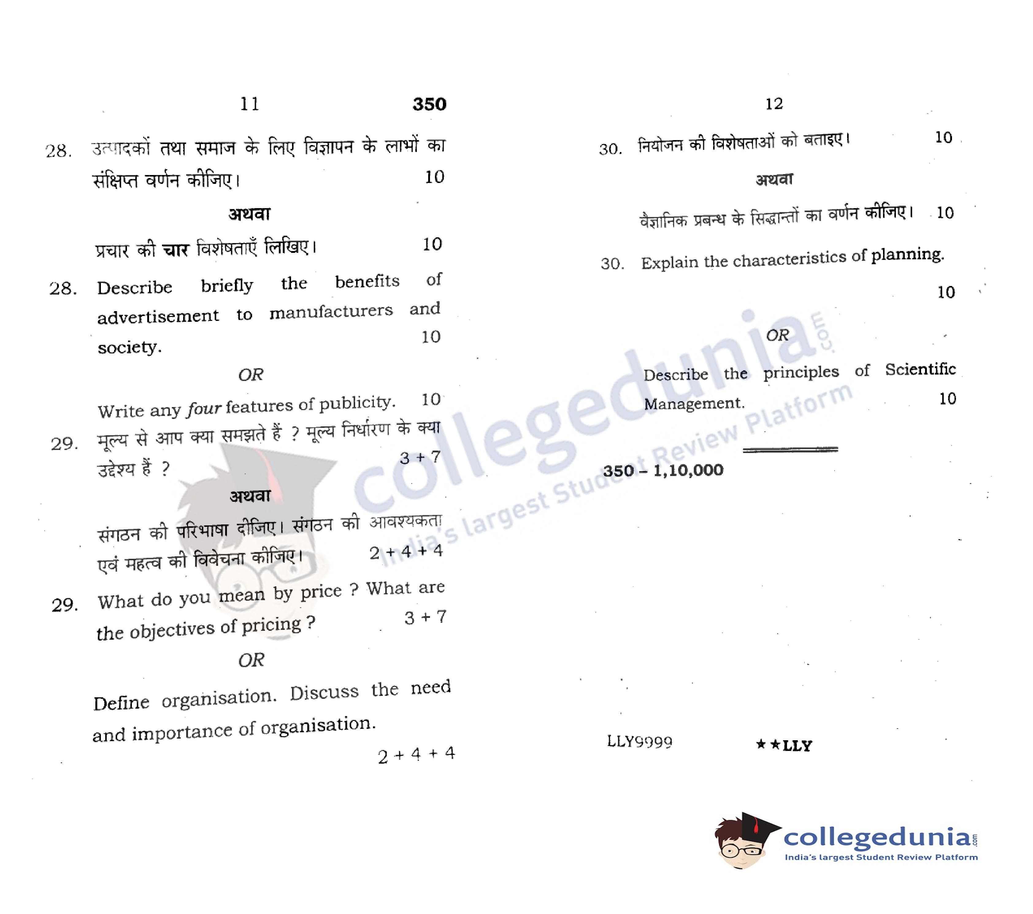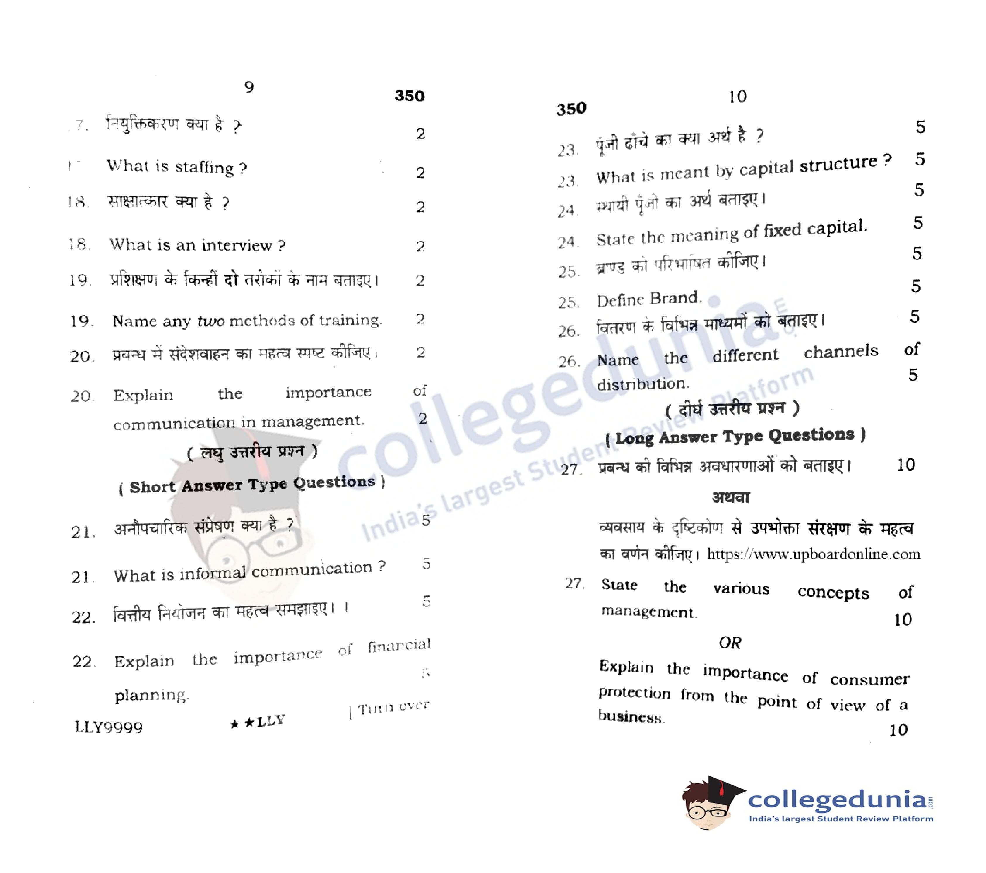 UP Board Class 12 Business Studies Question Paper 2022 with Answer Key Code 350 is available for download. The exam was conducted by the Uttar Pradesh Madhyamik Shiksha Parishad (UPMSP). The medium of paper was English and Hindi. The question paper comprised a total of 30 questions.