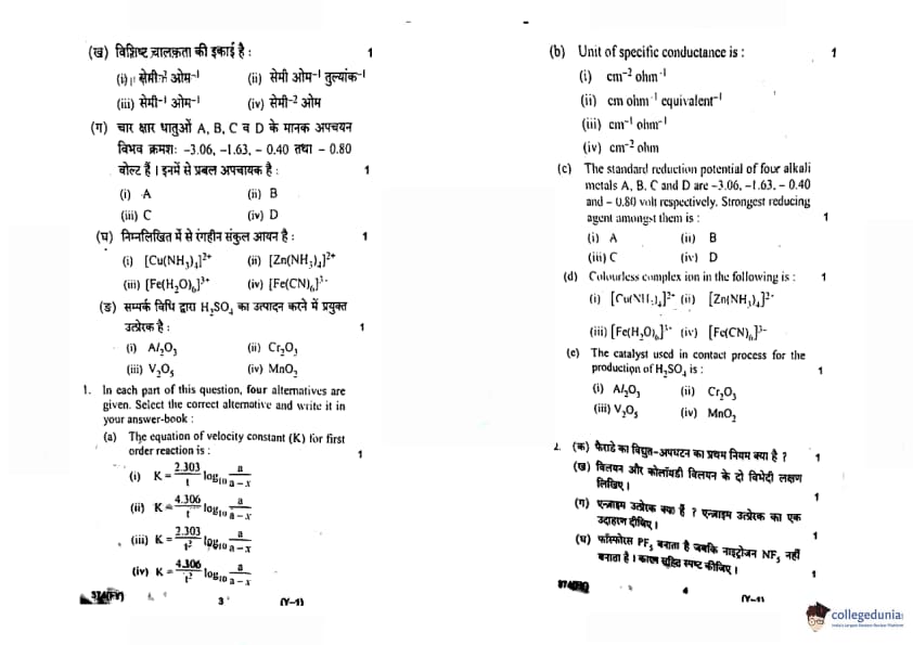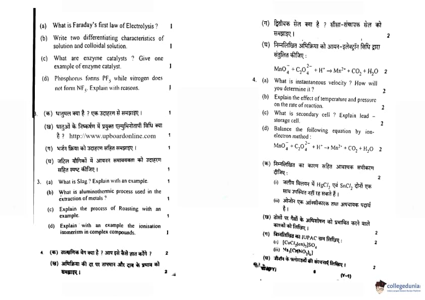 UP Board Class 12 Chemistry-1 Question Paper 2018 with Answer Key Code 374(FY) is available for download. The exam was conducted by the Uttar Pradesh Madhyamik Shiksha Parishad (UPMSP) on February 20, 2018 in the Afternoon Session 2 PM to 5:15 PM. The medium of paper was English and Hindi. The question paper comprised a total of 7 questions.