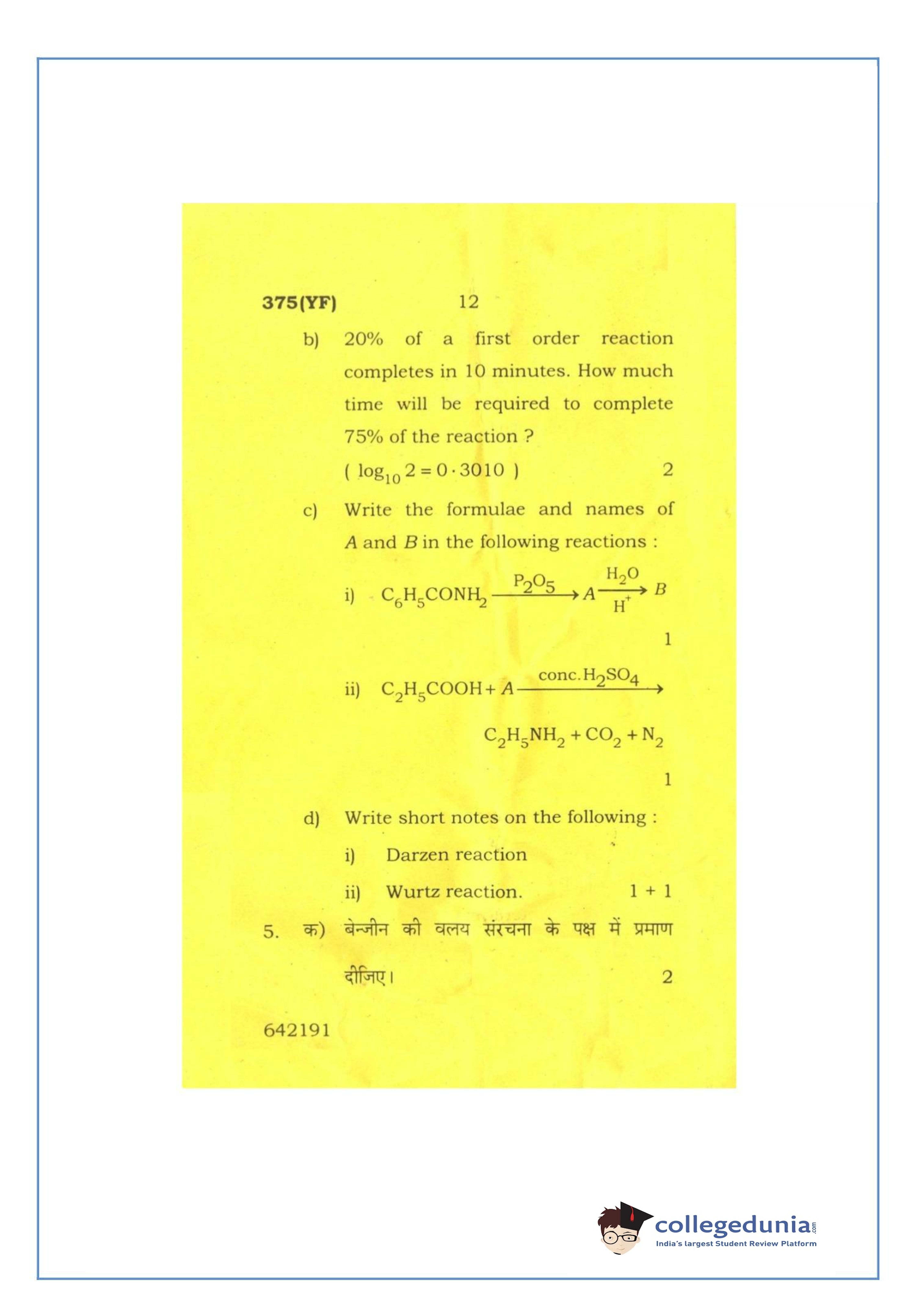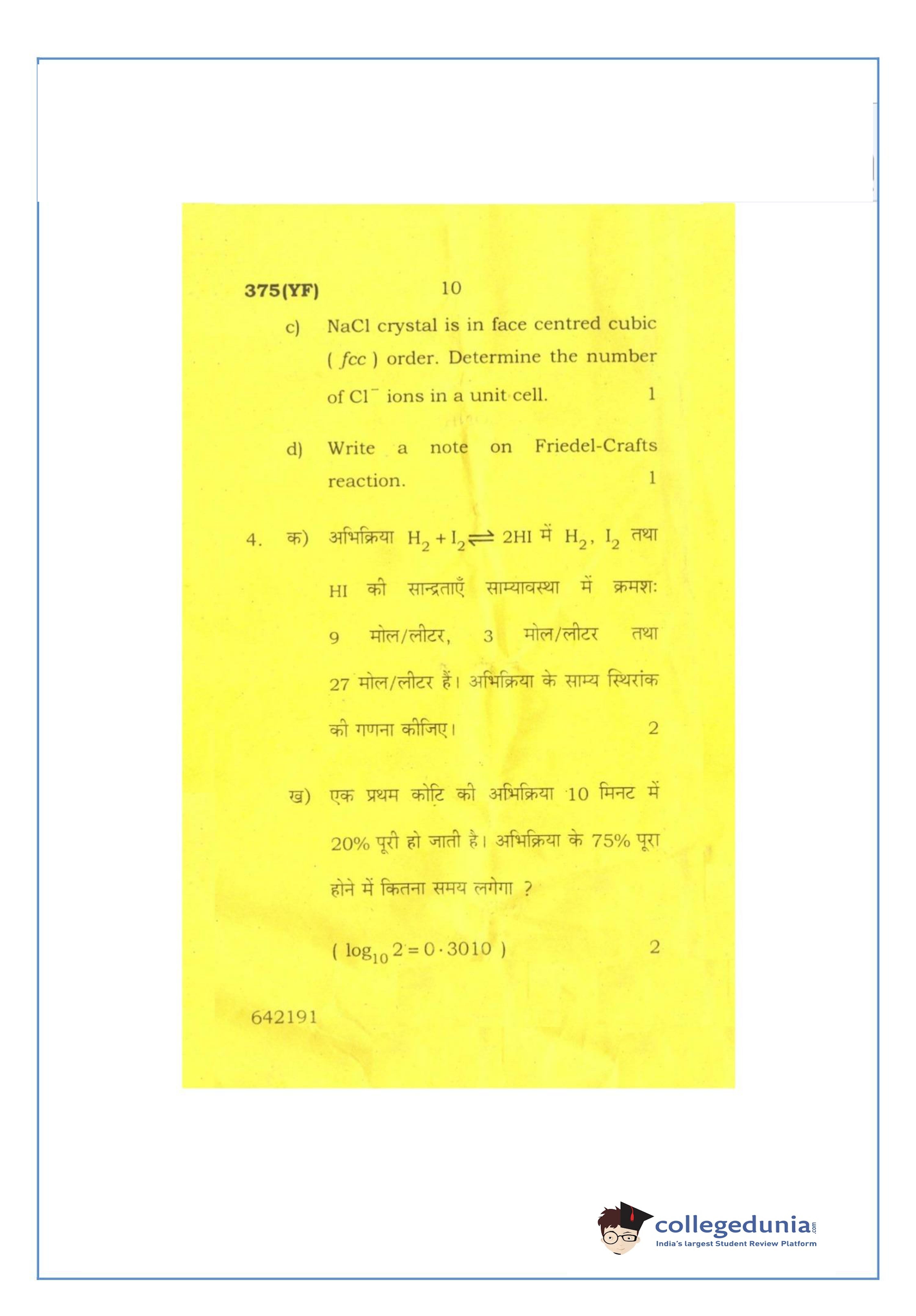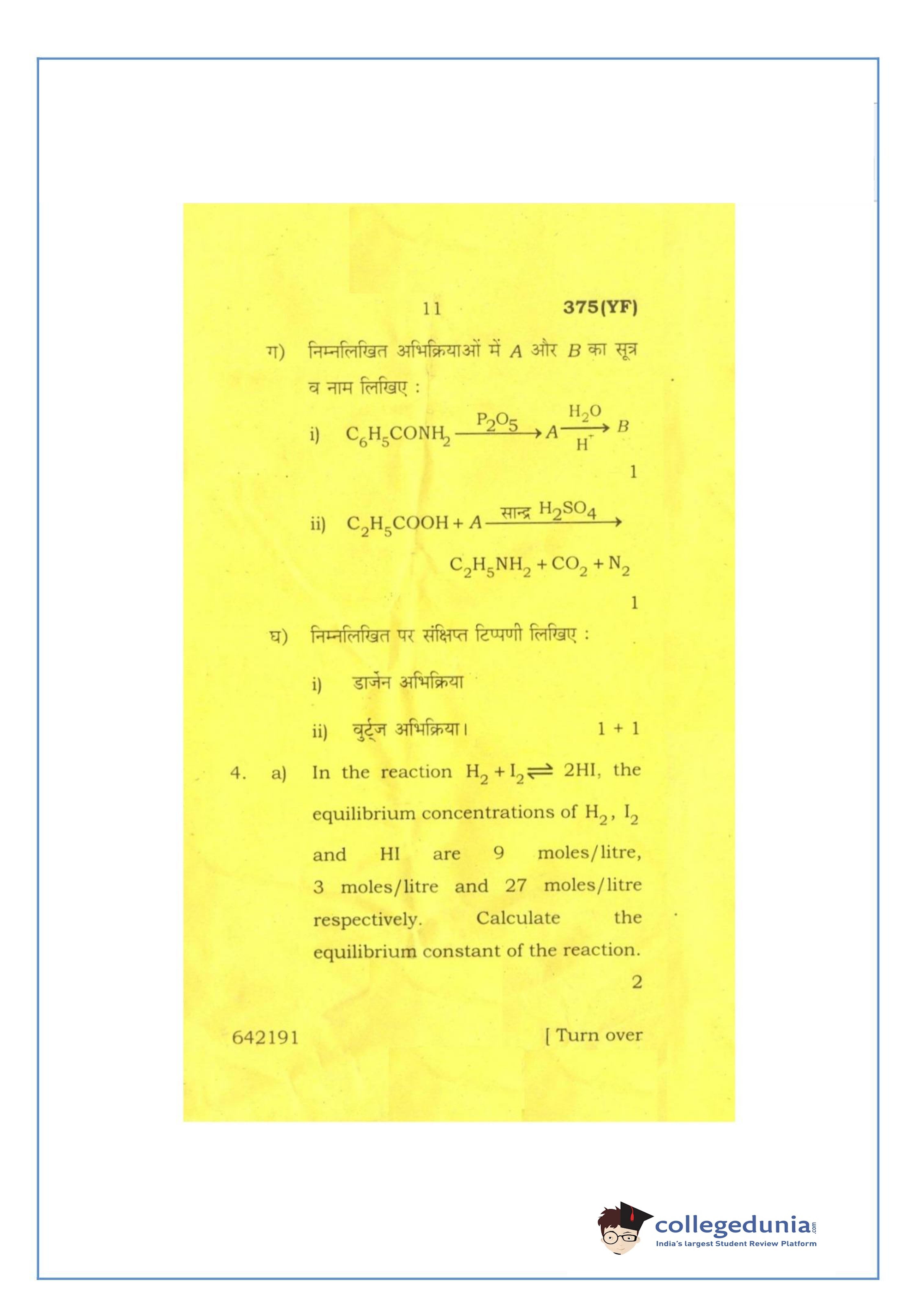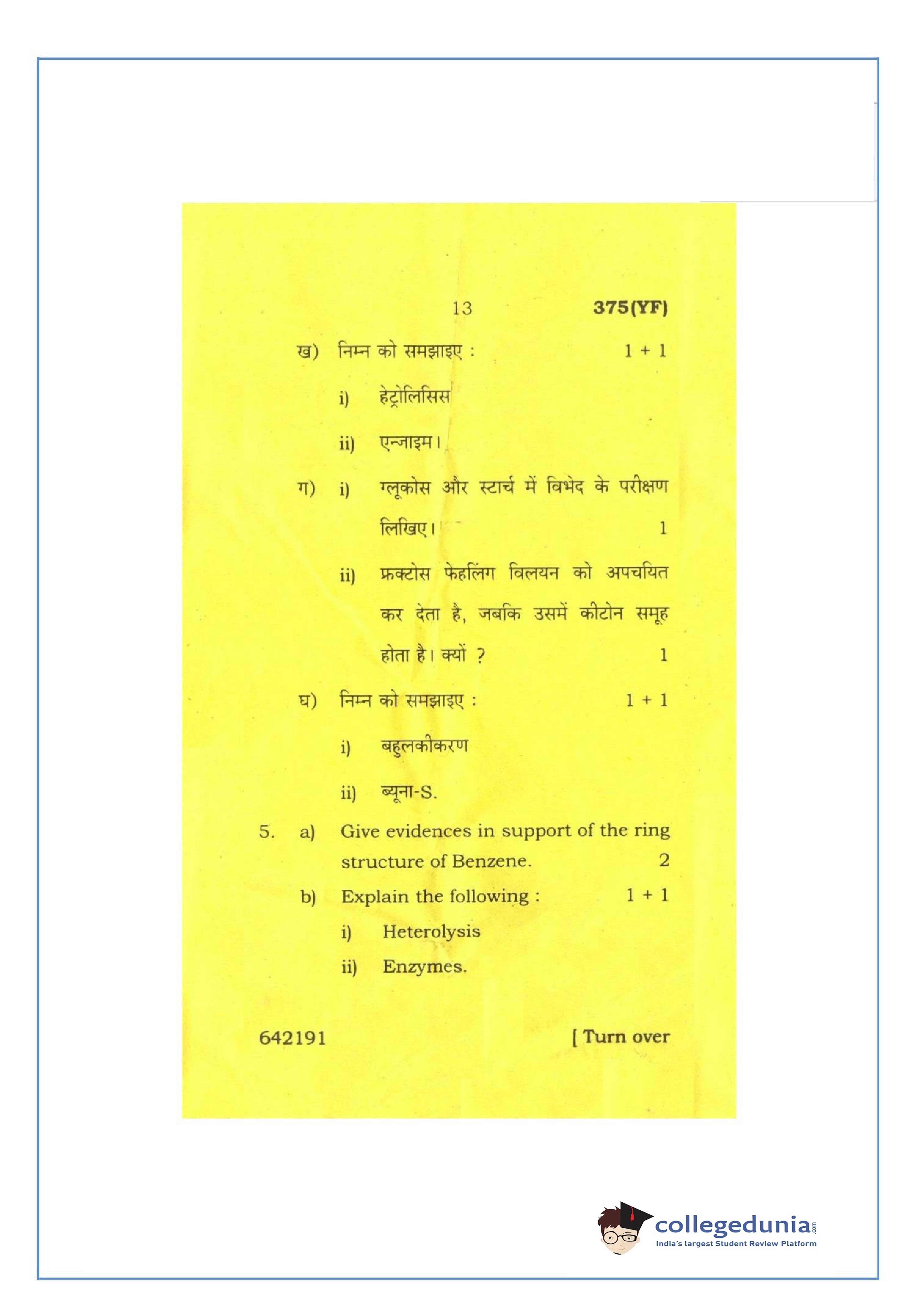 UP Board Class 12 Chemistry-2 Question Paper 2016 with Answer Key Code 375(YF) is available for download. The exam was conducted by the Uttar Pradesh Madhyamik Shiksha Parishad (UPMSP) on March 2, 2016 in the Afternoon Session 2 PM to 5:15 PM. The medium of paper was English and Hindi. The question paper comprised a total of 7 questions.
