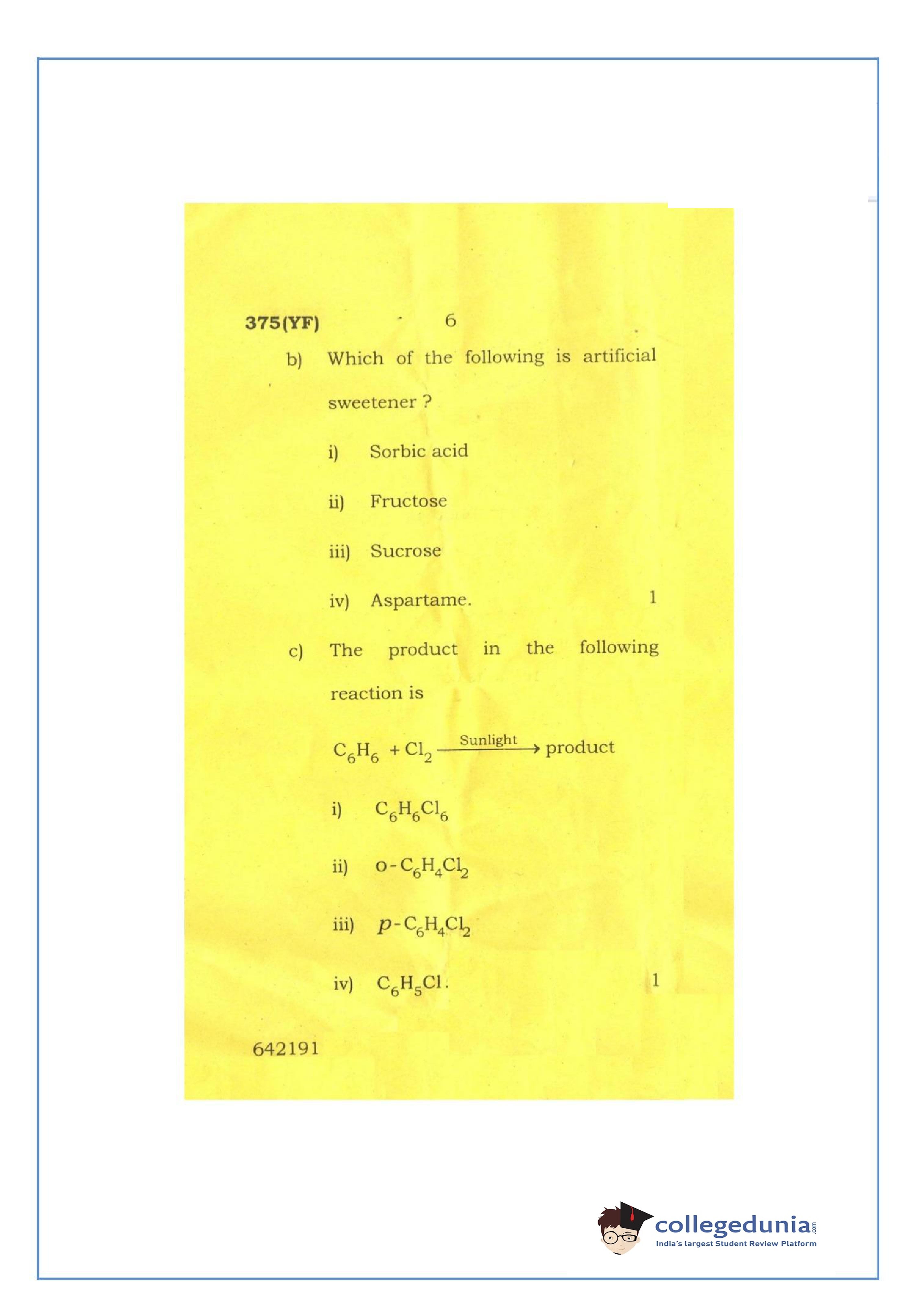 UP Board Class 12 Chemistry-2 Code 375(YF) Question Paper 2016 with Answer Key (March 2)