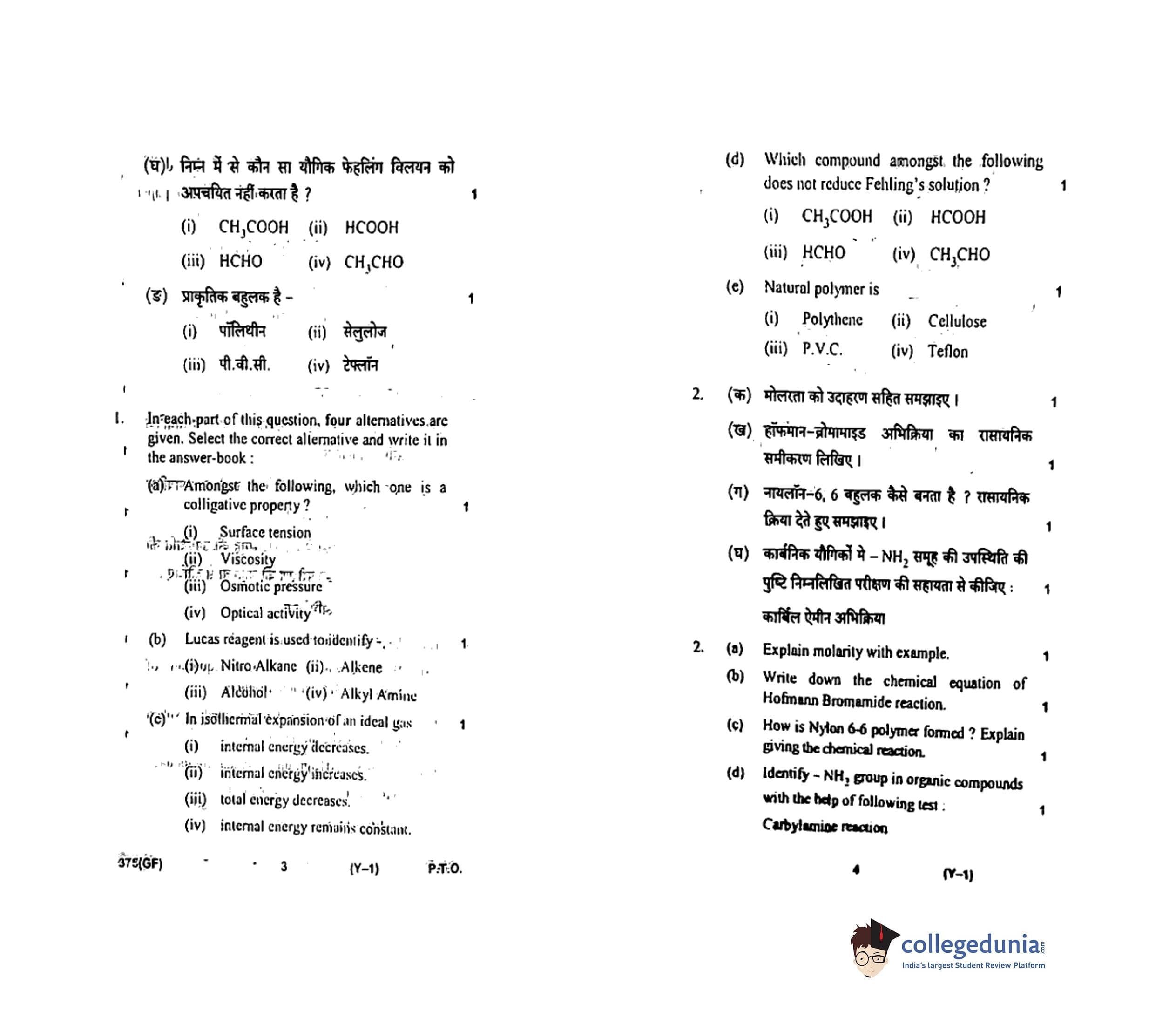 UP Board Class 12 Chemistry-2 Code 375(GF) Question Paper 2018 with Answer Key (February 22)