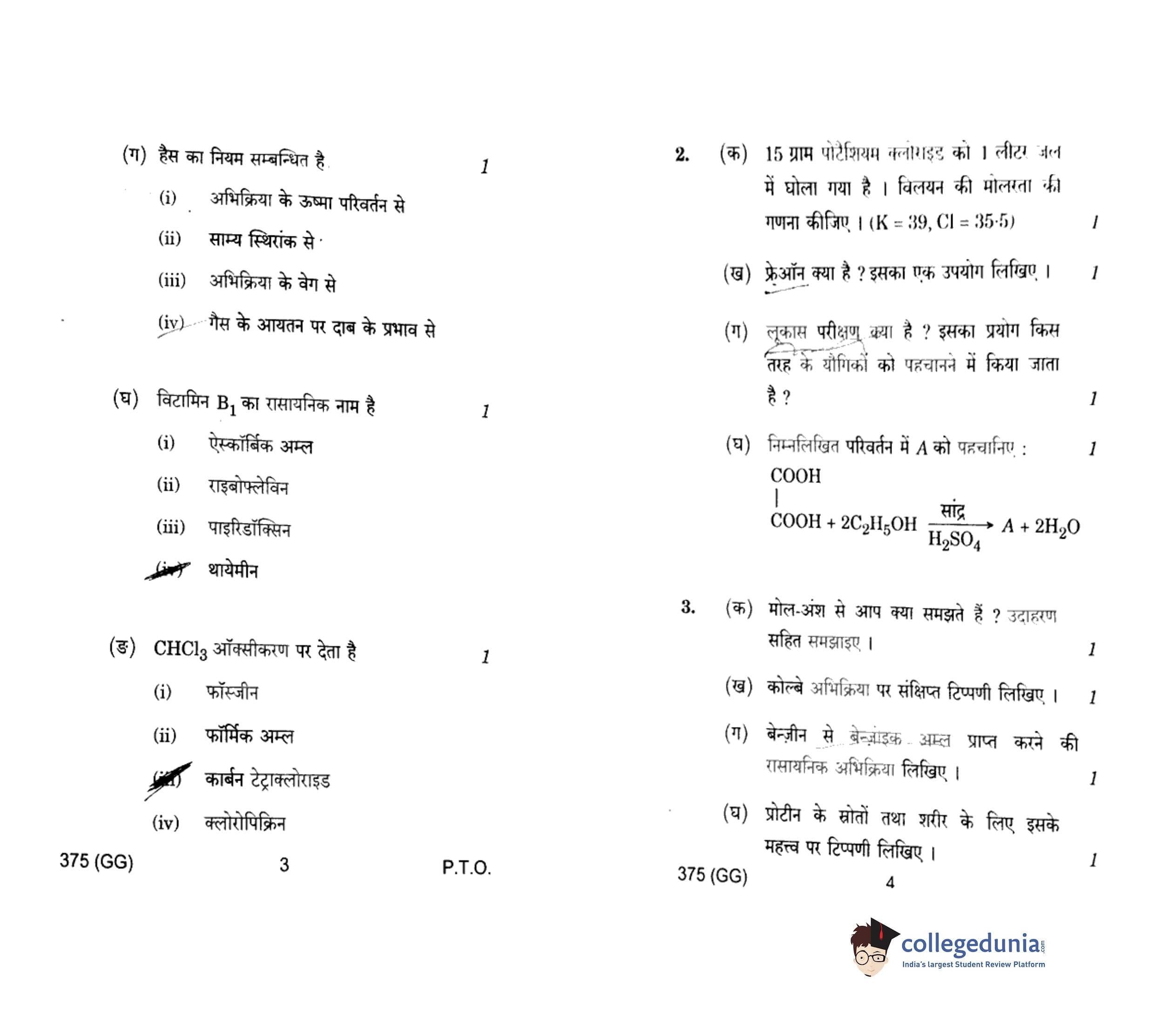 UP Board Class 12 Chemistry-2 Question Paper 2018 with Answer Key Code 375(GG) is available for download. The exam was conducted by the Uttar Pradesh Madhyamik Shiksha Parishad (UPMSP) on February 22, 2018 in the Afternoon Session 2 PM to 5:15 PM. The medium of paper was English and Hindi. The question paper comprised a total of 7 questions.