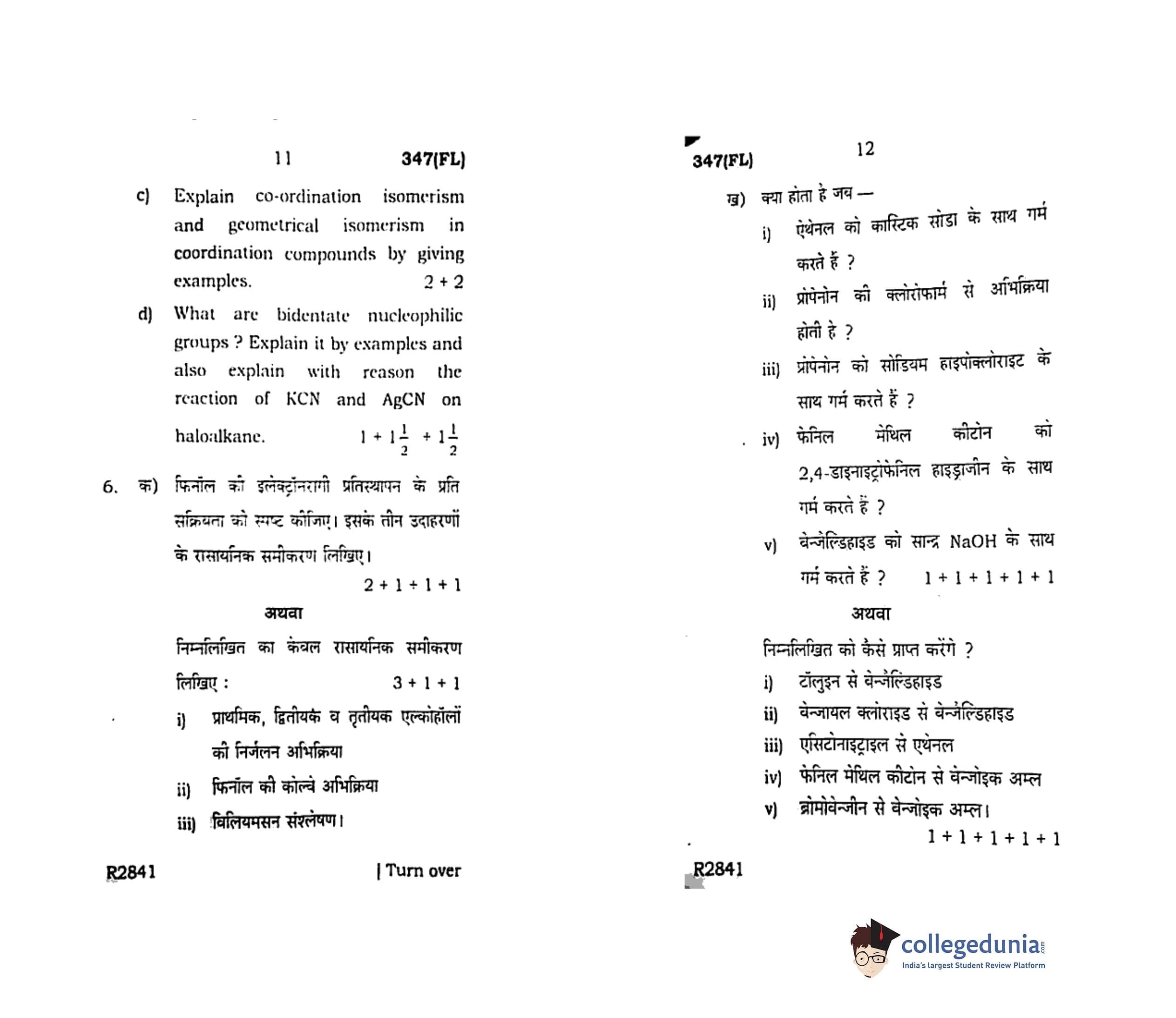 UP Board Class 12 Chemistry Code 347(FL) Question Paper 2019 with Answer Key (February 15)