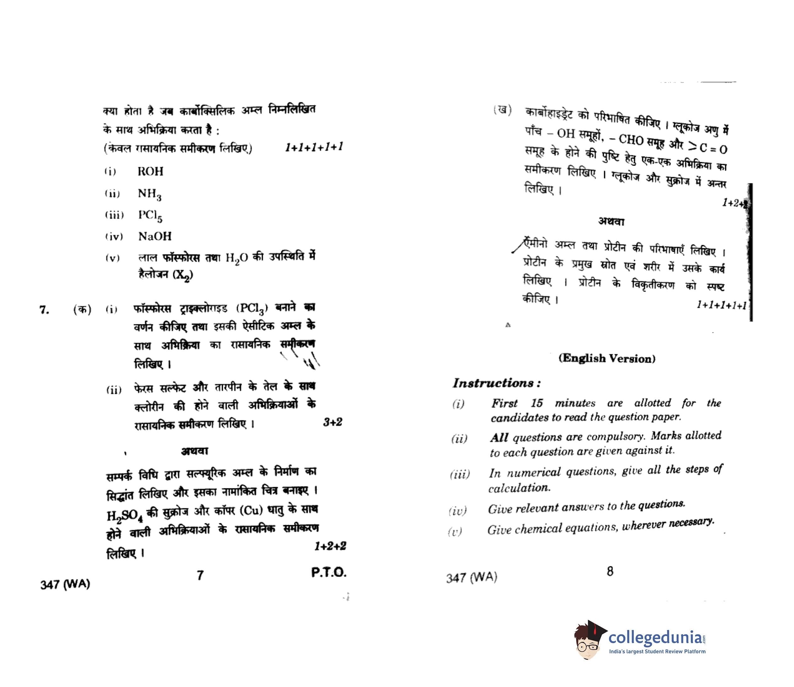 UP Board Class 12 Chemistry Question Paper 2020 with Answer Key Code 347(WA) is available for download. The exam was conducted by the Uttar Pradesh Madhyamik Shiksha Parishad (UPMSP) on February 24, 2020 in the Afternoon Session 2 PM to 5:15 PM. The medium of paper was English and Hindi. The question paper comprised a total of 7 questions.