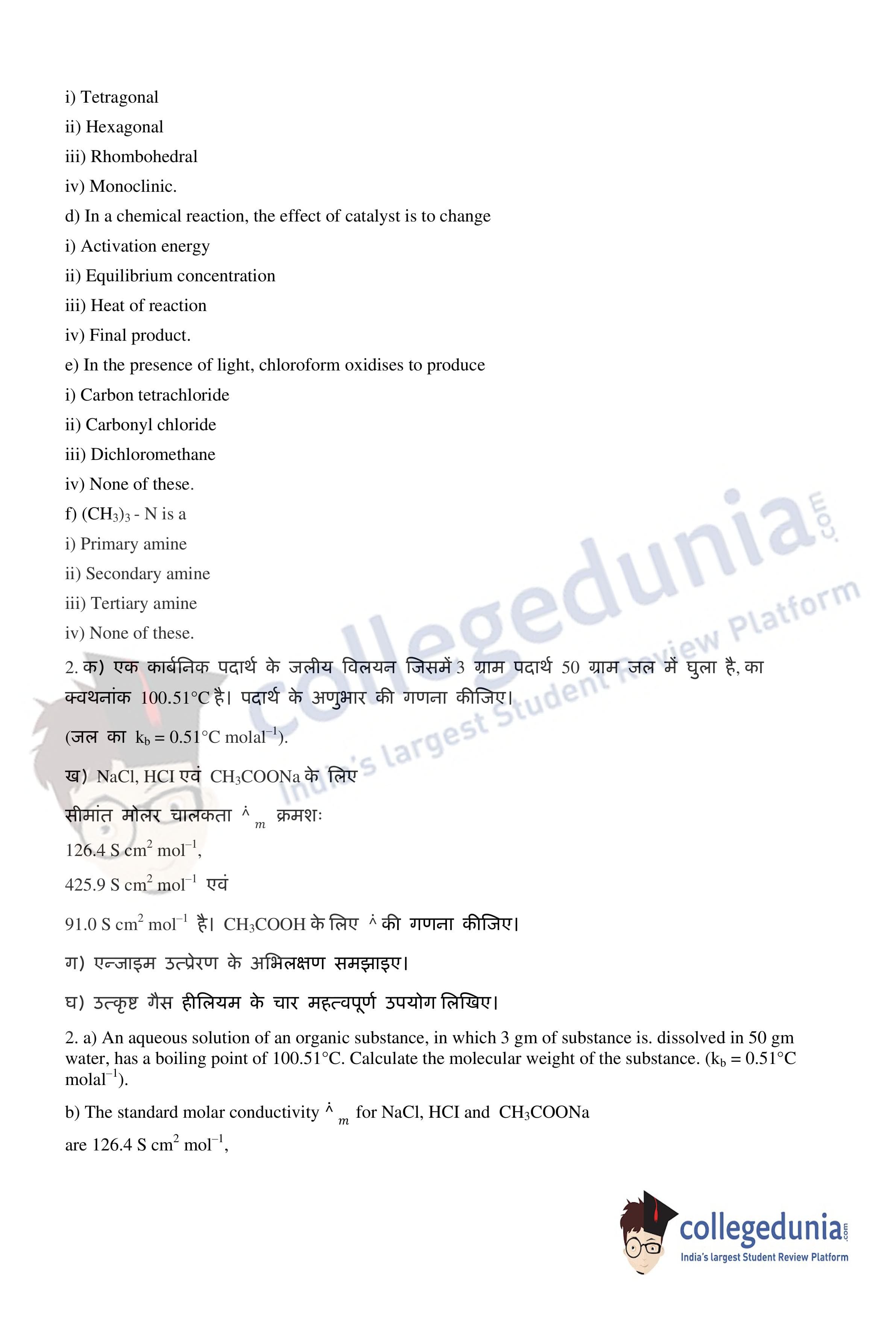 UP Board Class 12 Chemistry Question Paper 2020 with Answer Key Code 347(WD) is available for download. The exam was conducted by the Uttar Pradesh Madhyamik Shiksha Parishad (UPMSP) on February 24, 2020 in the Afternoon Session 2 PM to 5:15 PM. The medium of paper was English and Hindi. The question paper comprised a total of 7 questions.