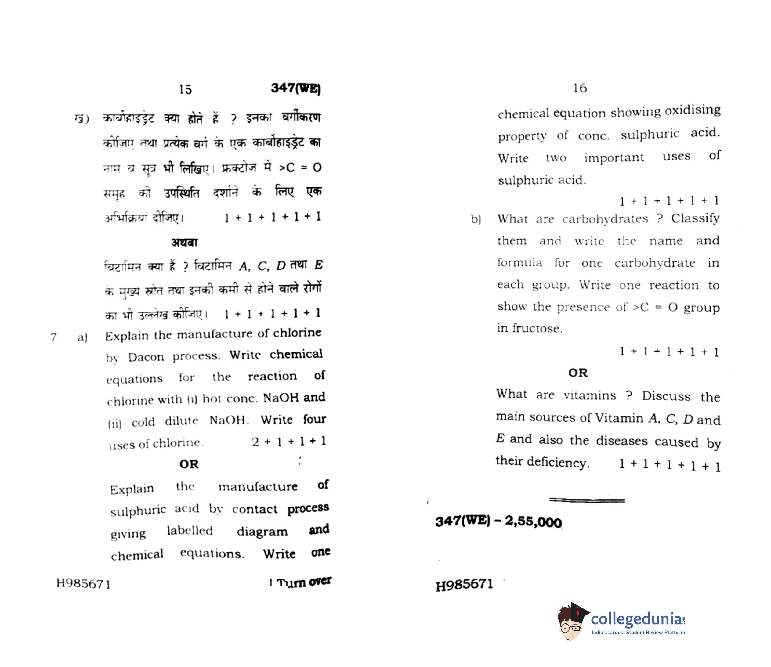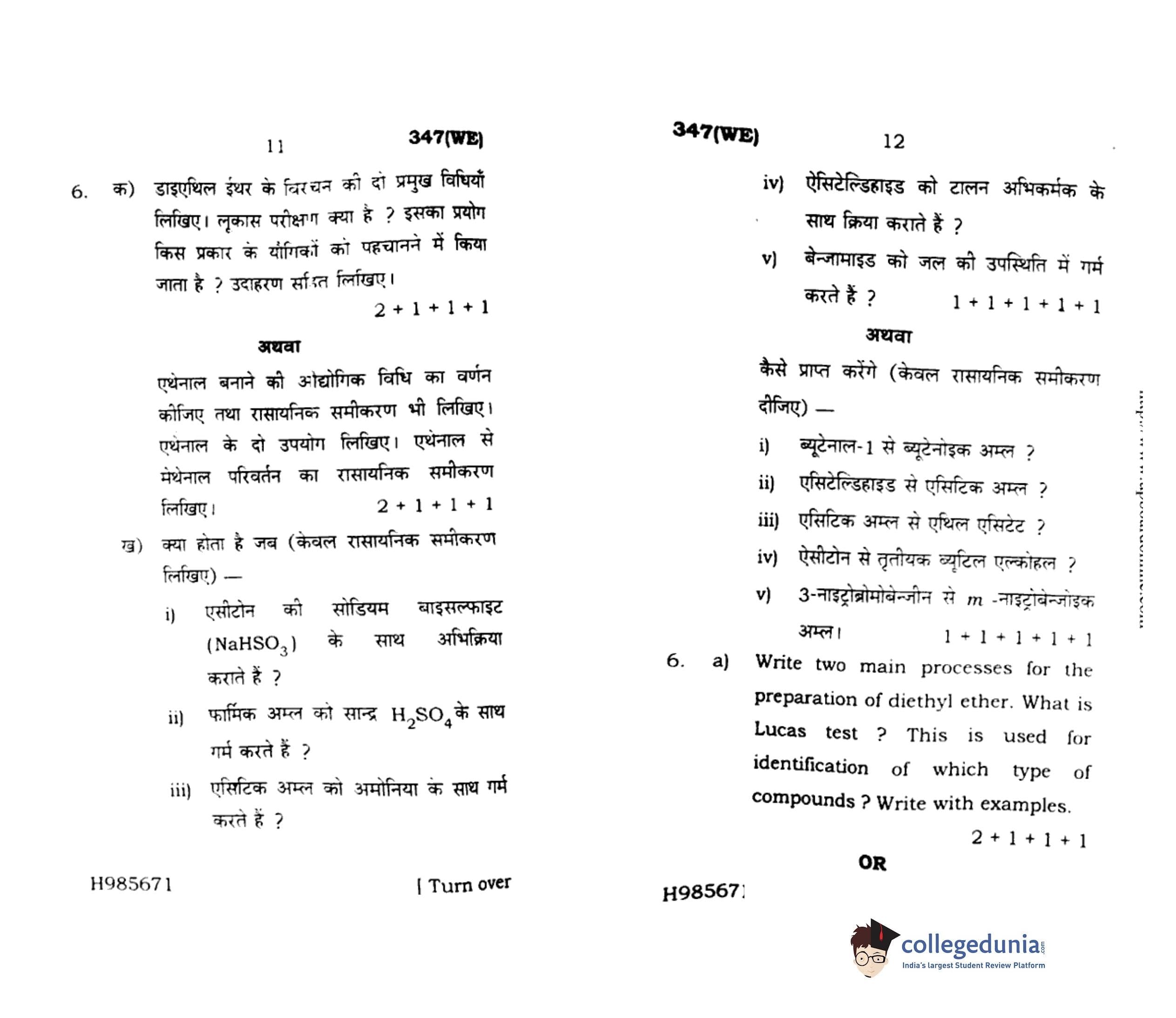 UP Board Class 12 Chemistry Code 347(WE) Question Paper 2020 with Answer Key (February 24)