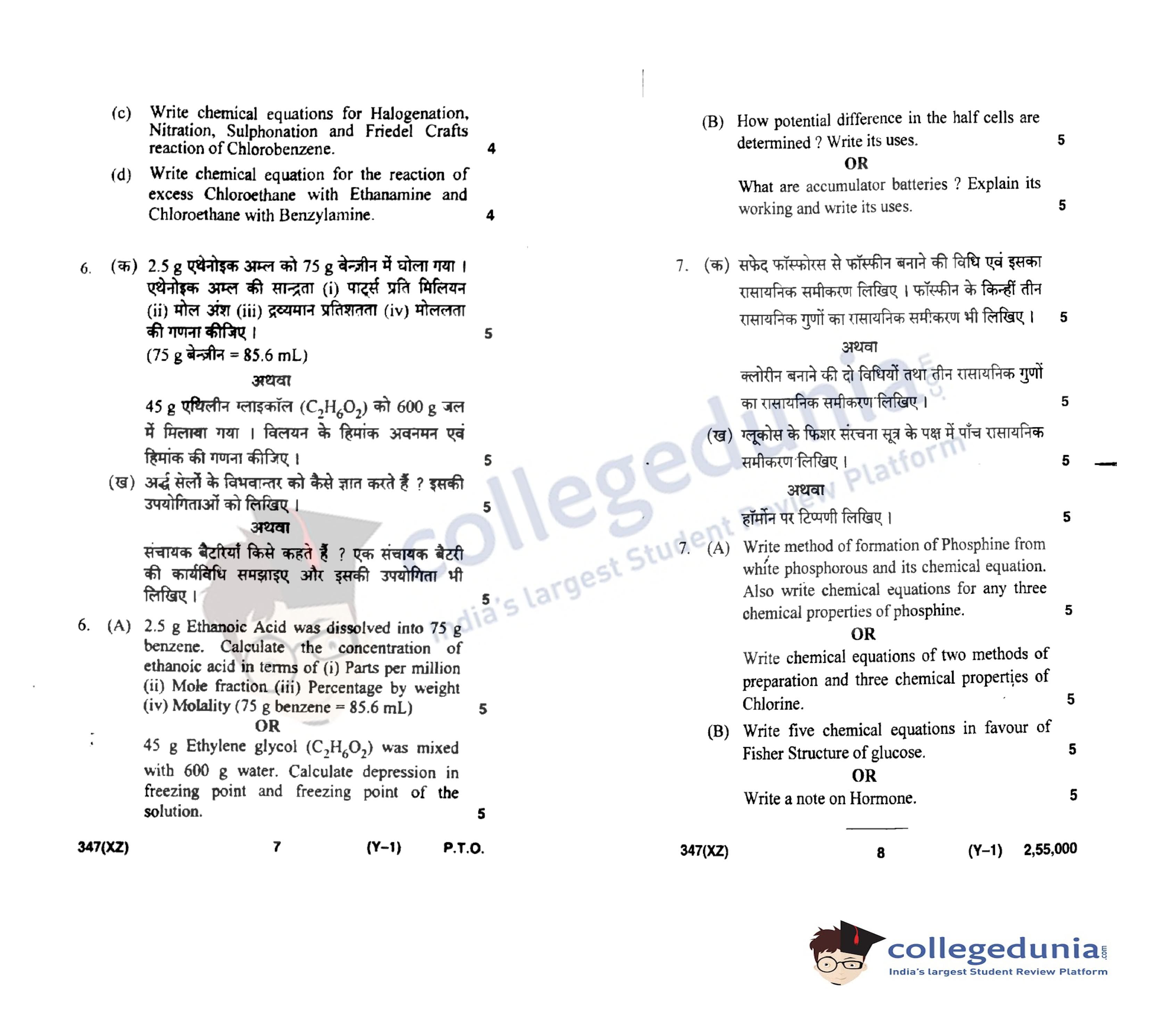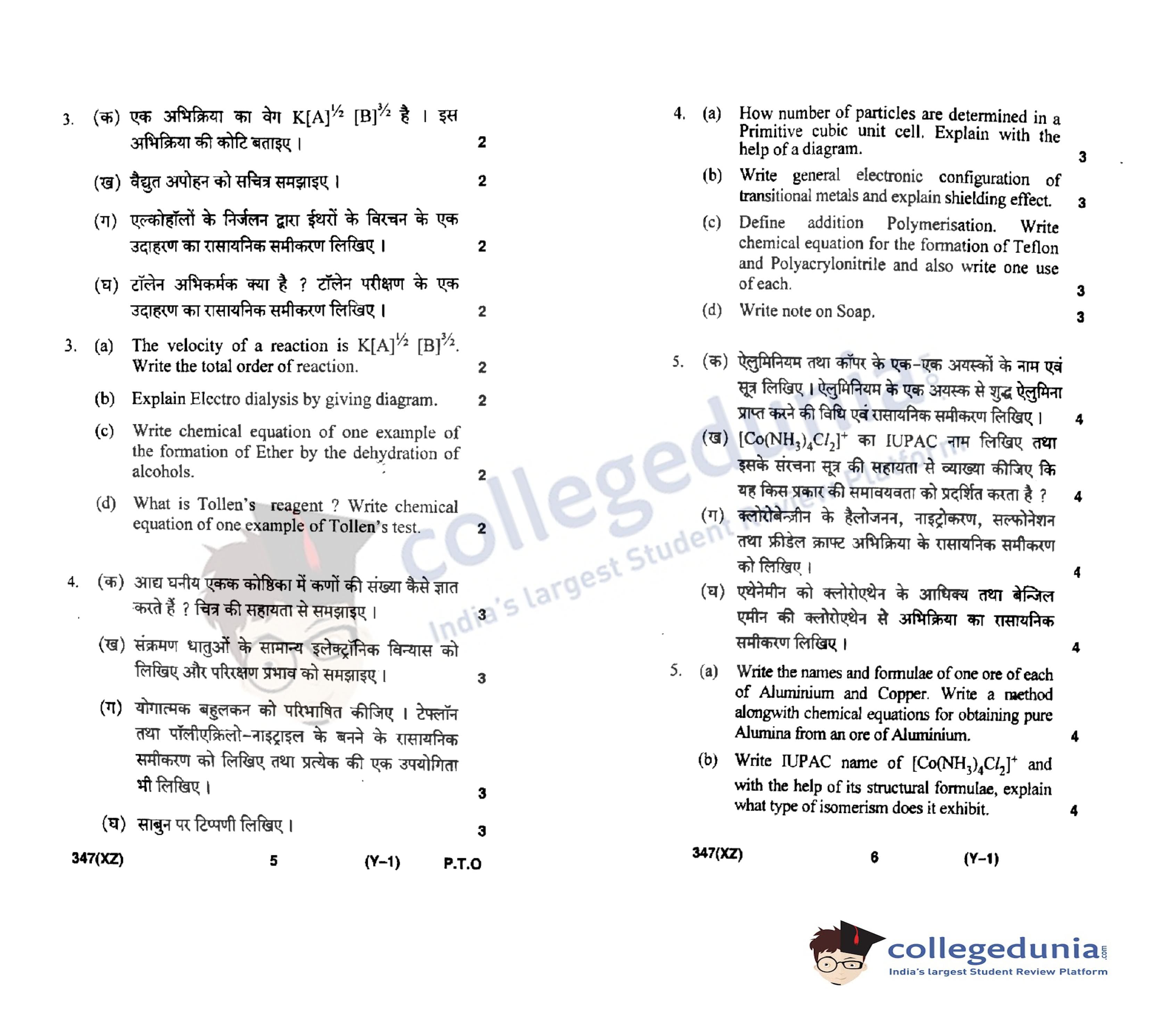 UP Board Class 12 Chemistry Question Paper 2020 with Answer Key Code 347(XZ) is available for download. The exam was conducted by the Uttar Pradesh Madhyamik Shiksha Parishad (UPMSP) on February 24, 2020 in the Afternoon Session 2 PM to 5:15 PM. The medium of paper was English and Hindi. The question paper comprised a total of 7 questions.