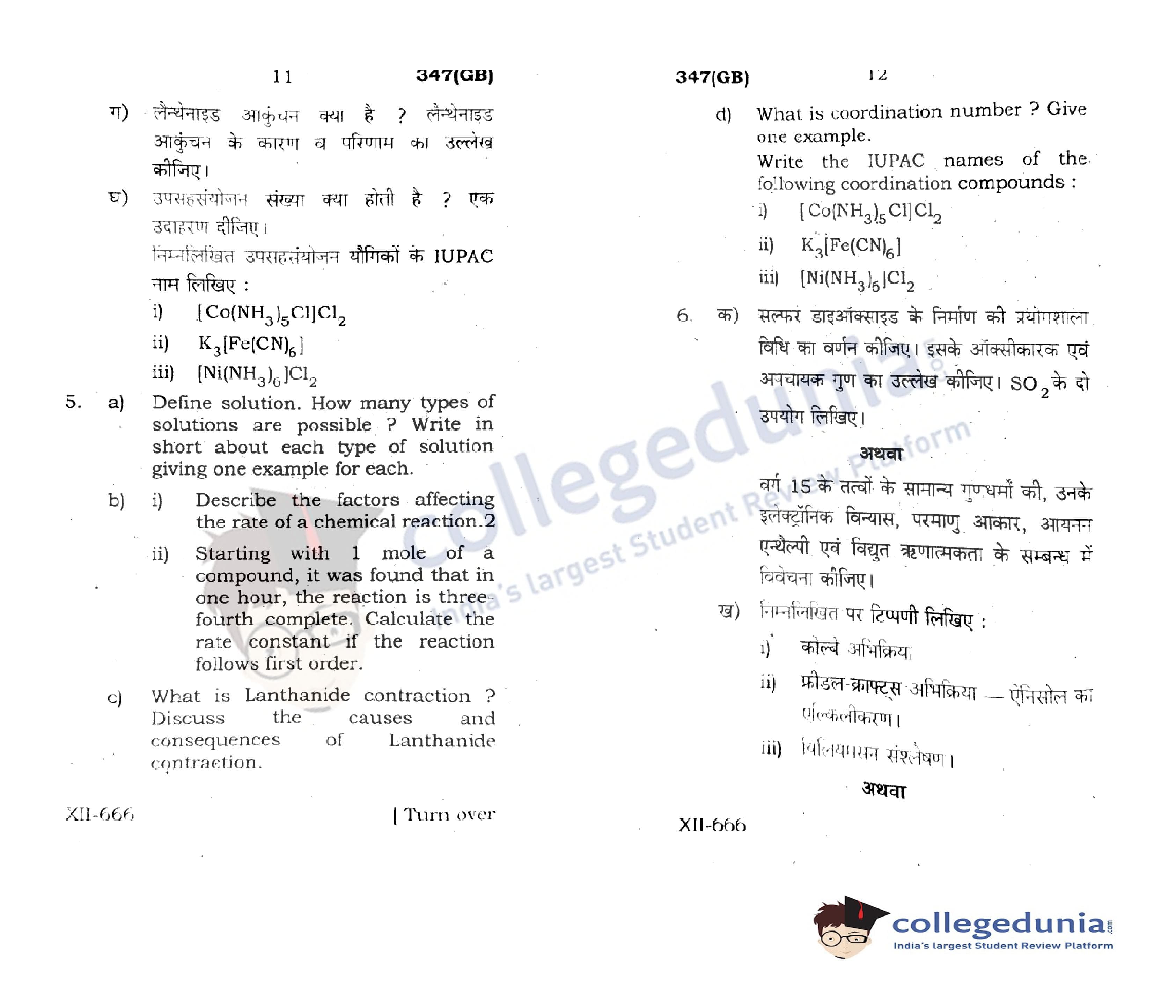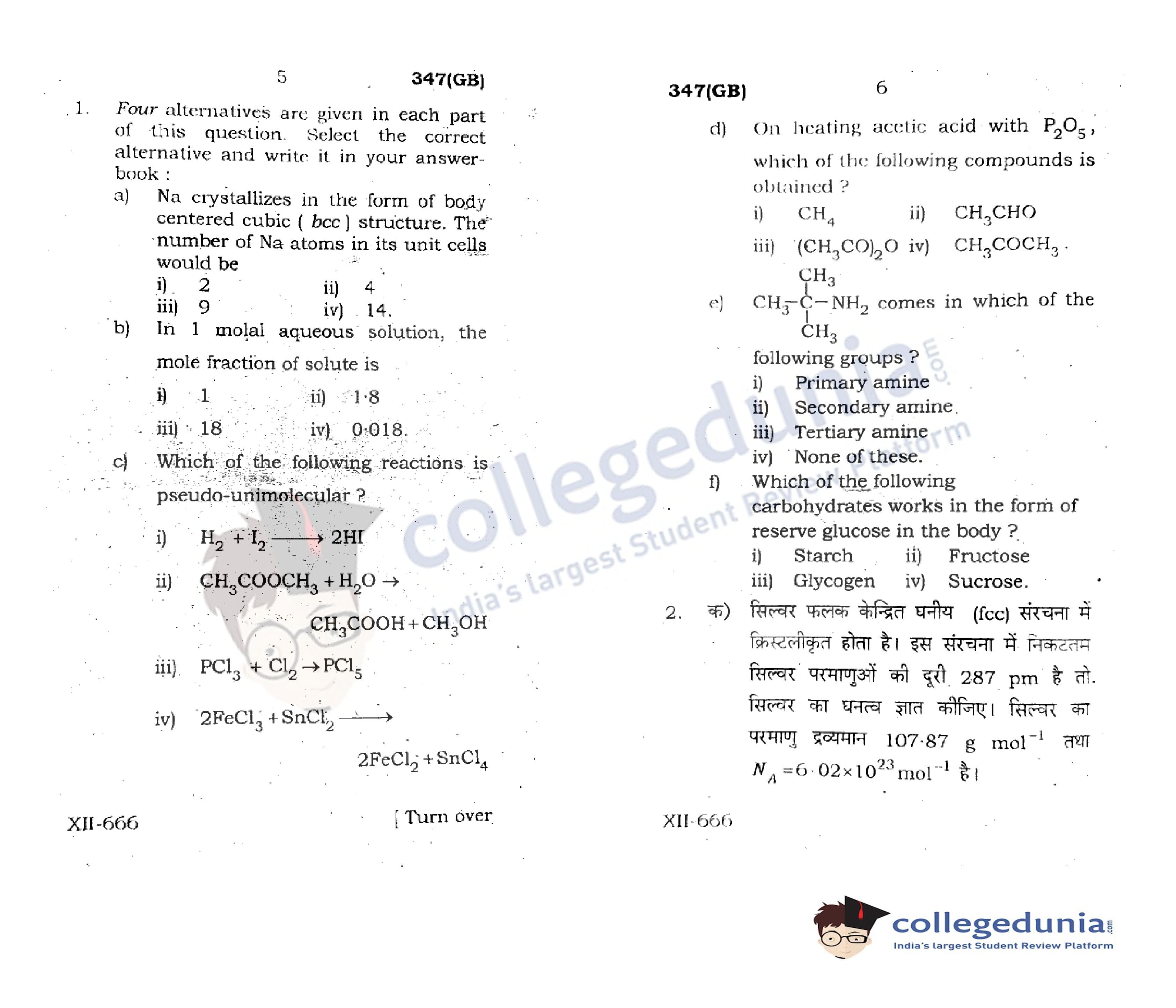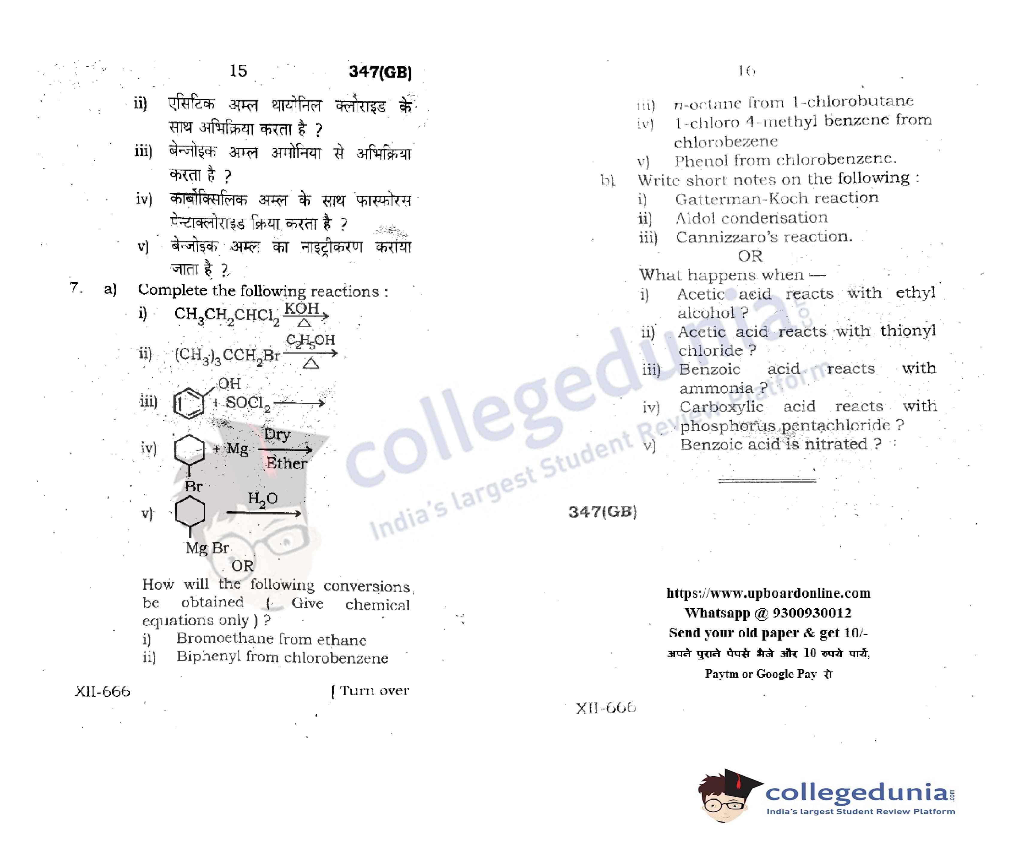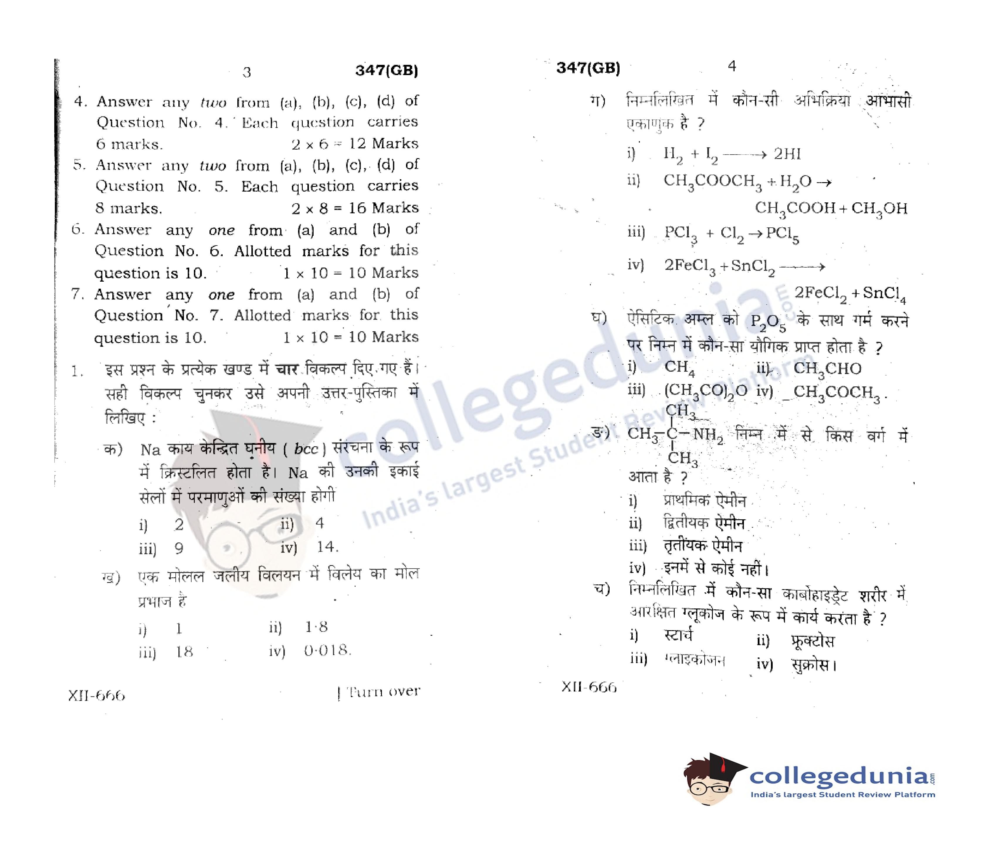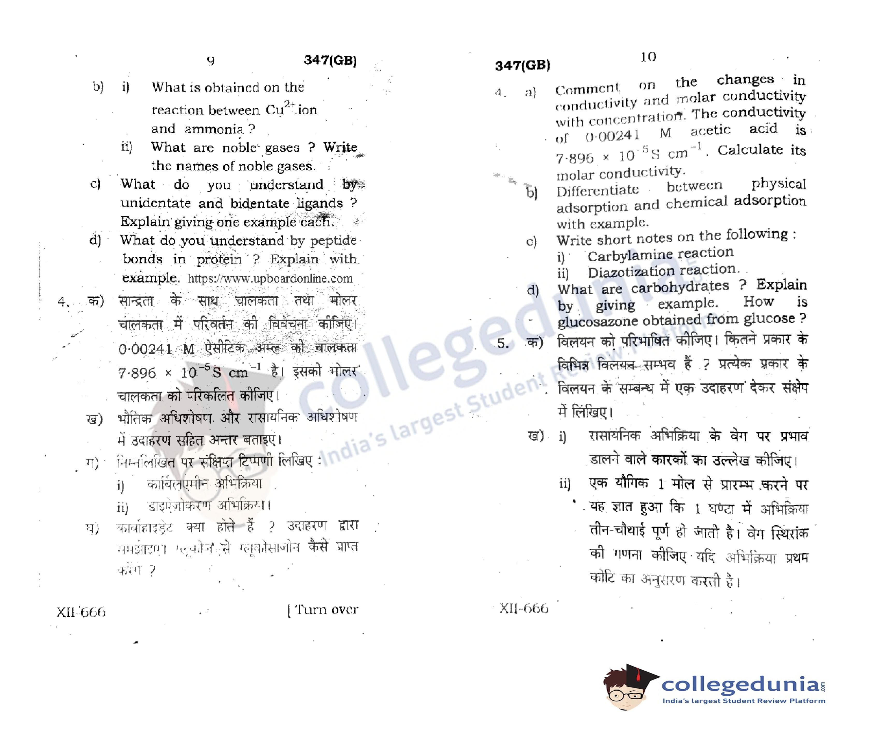 UP Board Class 12 Chemistry Code 347(GB) Question Paper 2021 with Answer Key (May 4)