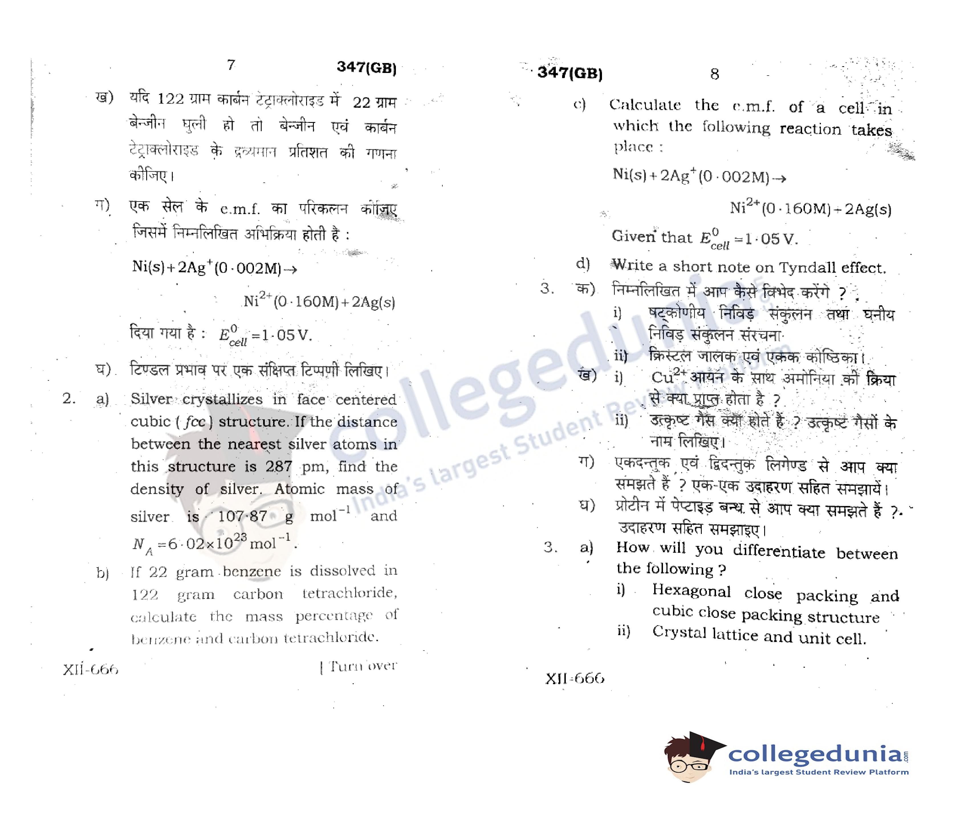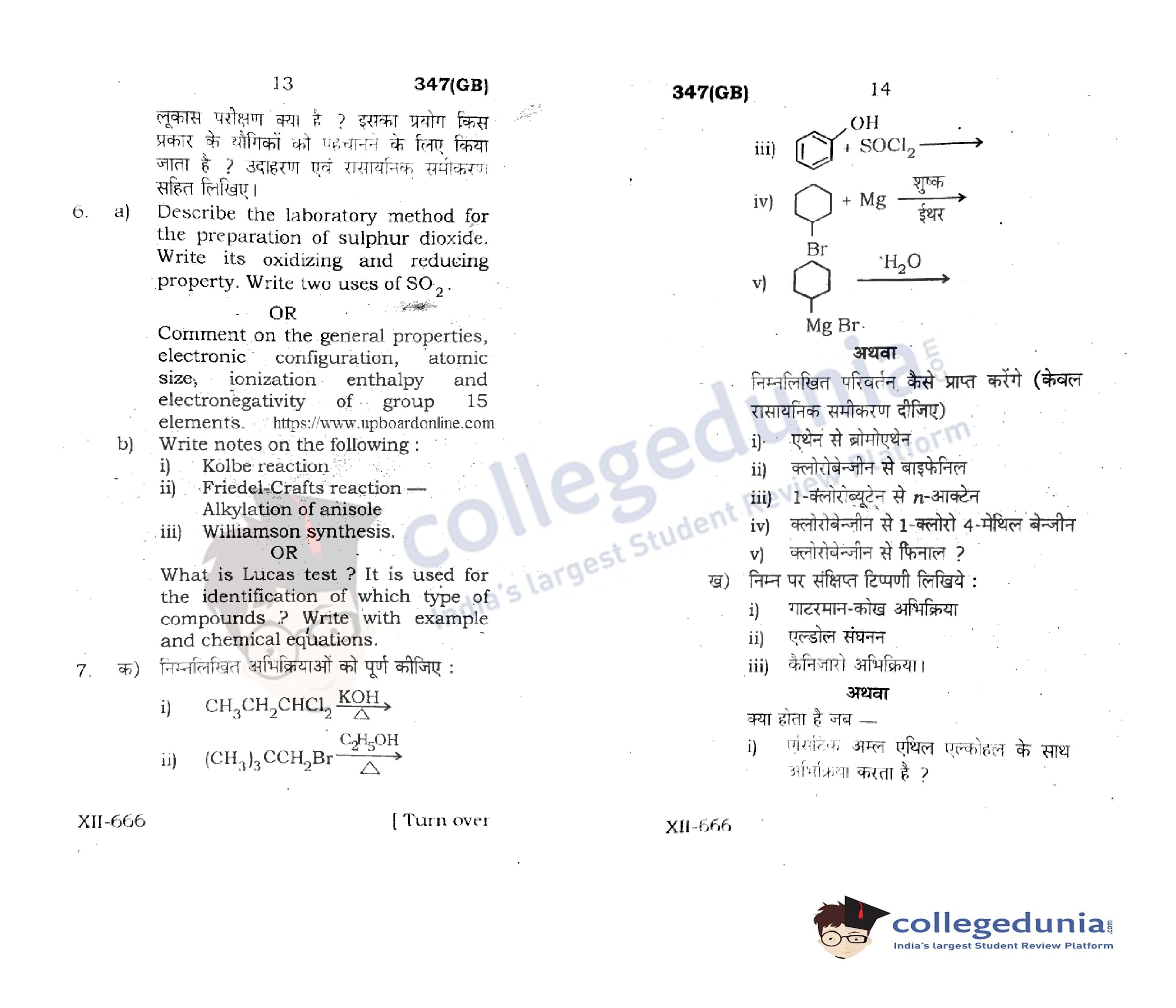 UP Board Class 12 Chemistry Question Paper 2021 with Answer Key Code 347(GB) is available for download. The exam was conducted by the Uttar Pradesh Madhyamik Shiksha Parishad (UPMSP) on May 4, 2021 in the Afternoon Session 2 PM to 5:15 PM. The medium of paper was English and Hindi. The question paper comprised a total of 7 questions.
