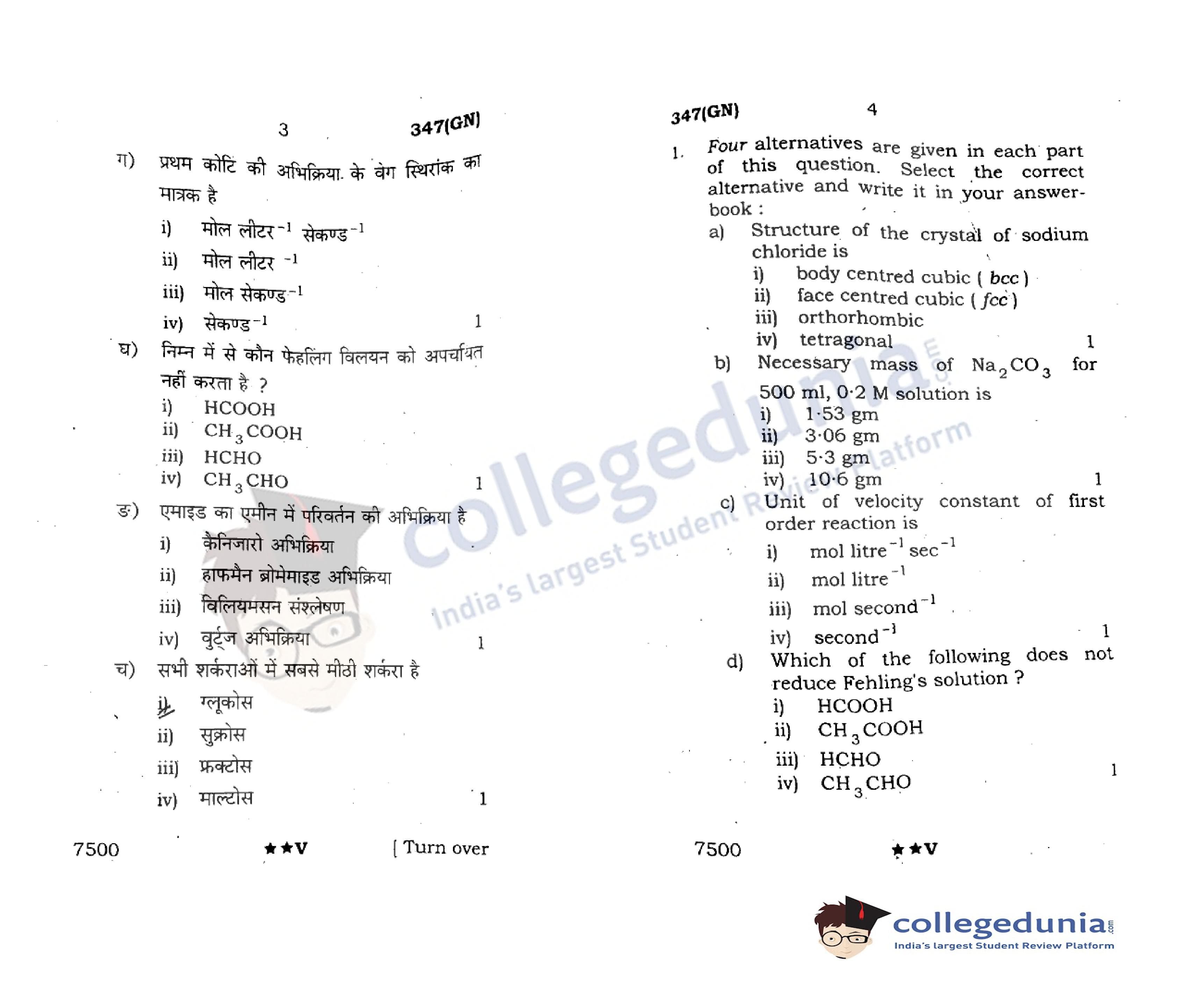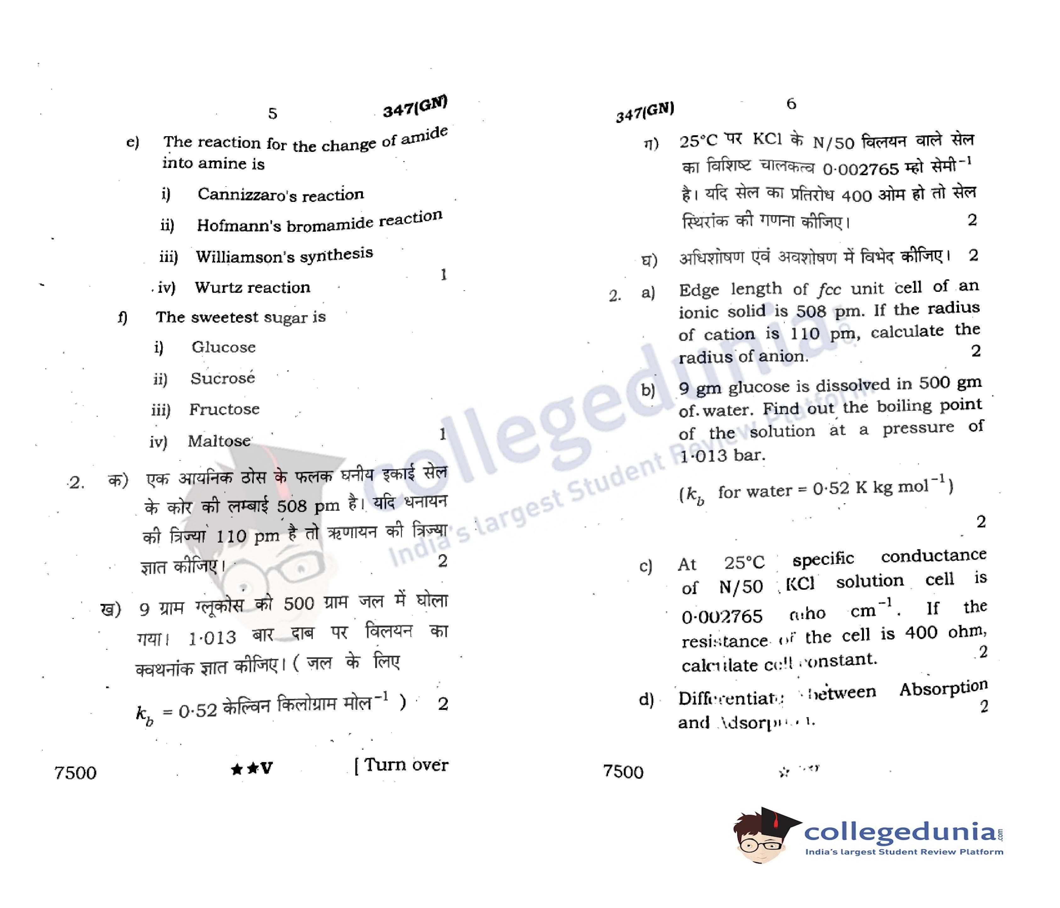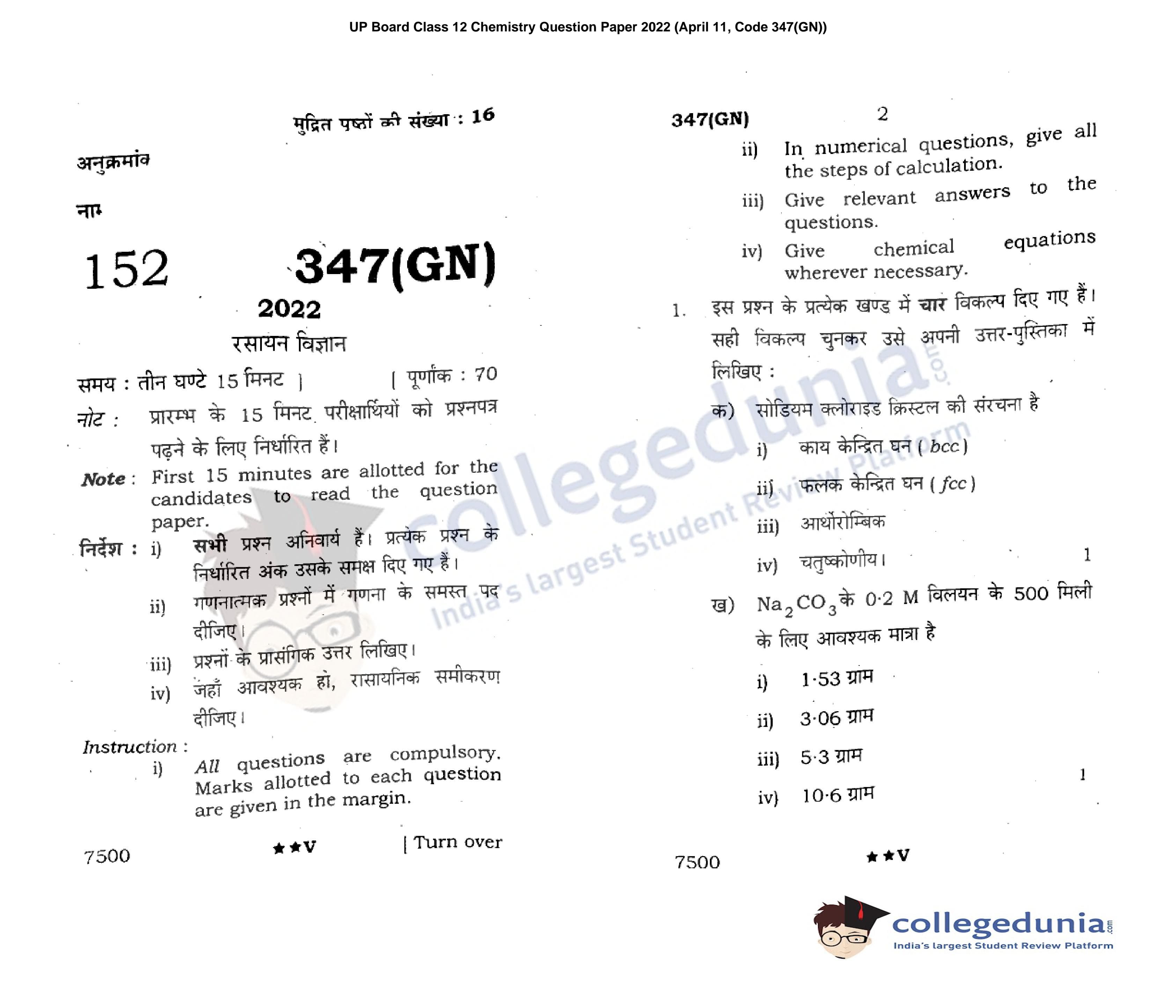 UP Board Class 12 Chemistry Question Paper 2022 with Answer Key Code 347(GN) is available for download. The exam was conducted by the Uttar Pradesh Madhyamik Shiksha Parishad (UPMSP) on April 11, 2022 in the Afternoon Session 2 PM to 5:15 PM. The medium of paper was English and Hindi. The question paper comprised a total of 7 questions.
