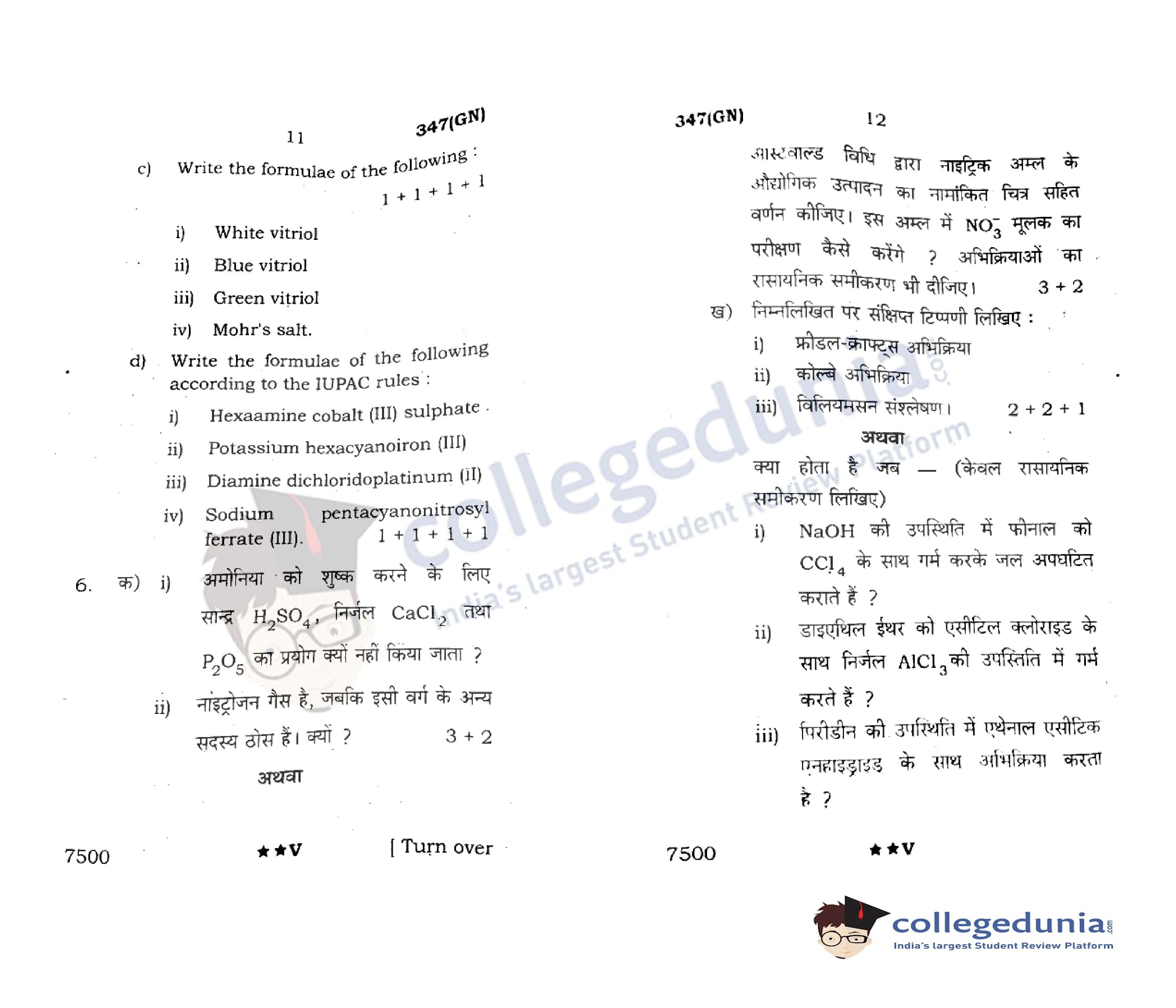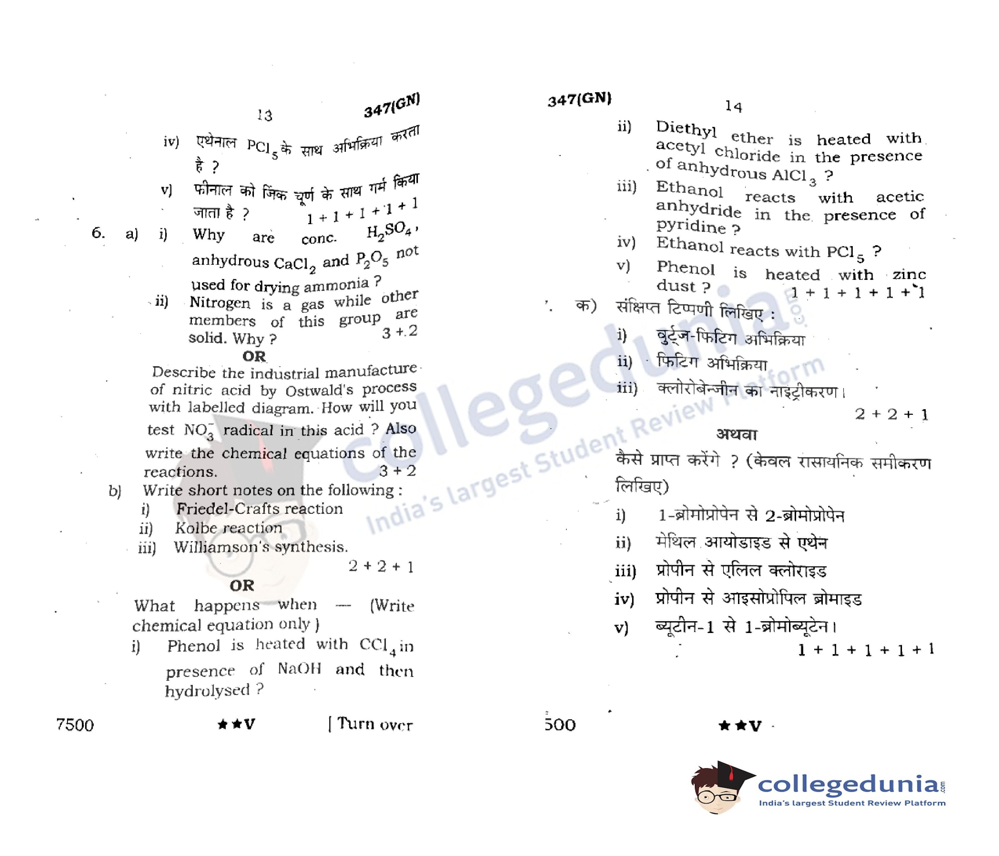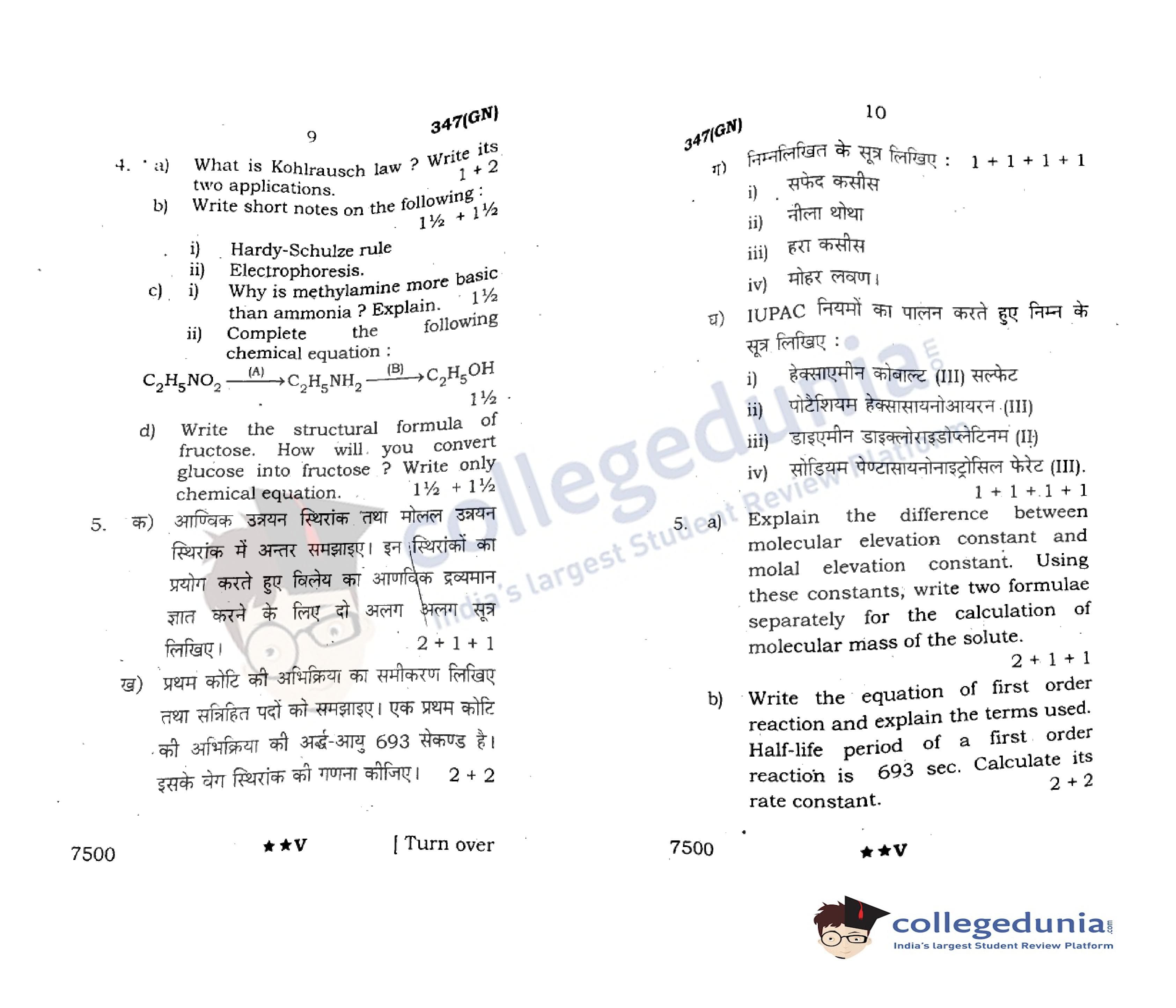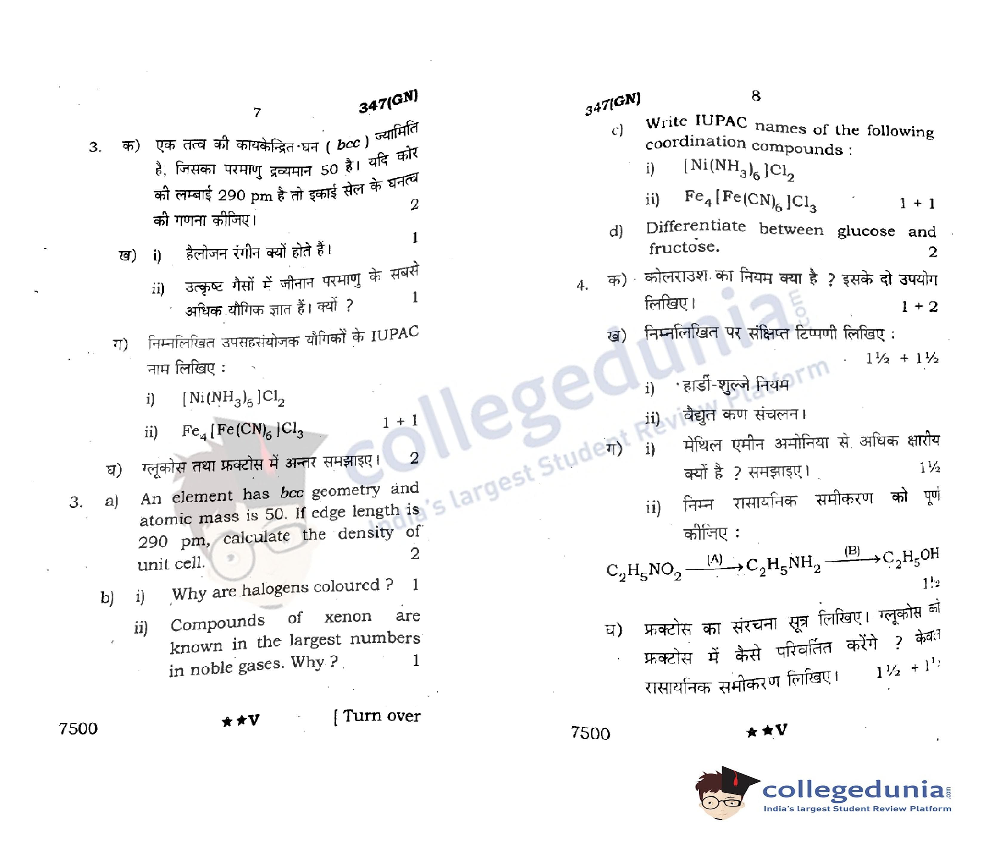UP Board Class 12 Chemistry Question Paper 2022 with Answer Key Code 347(GN) is available for download. The exam was conducted by the Uttar Pradesh Madhyamik Shiksha Parishad (UPMSP) on April 11, 2022 in the Afternoon Session 2 PM to 5:15 PM. The medium of paper was English and Hindi. The question paper comprised a total of 7 questions.