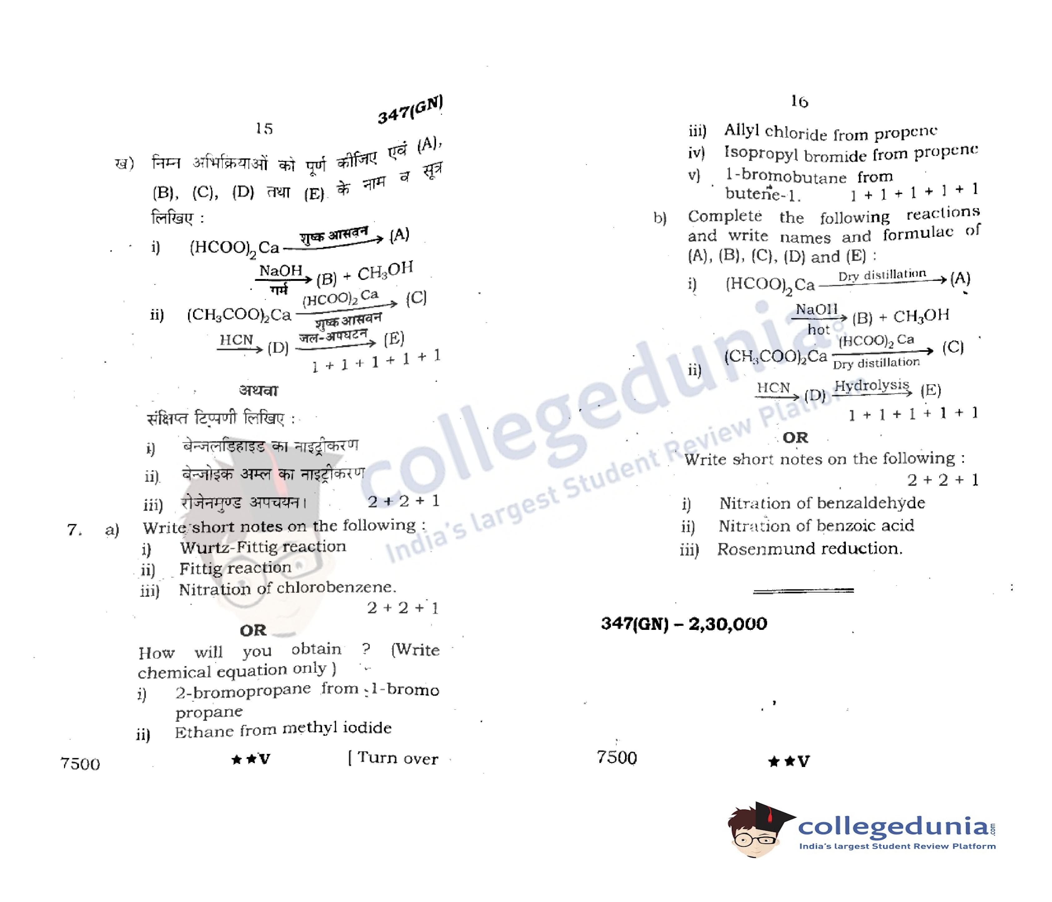 UP Board Class 12 Chemistry Code 347(GN) Question Paper 2022 with Answer Key (April 11)