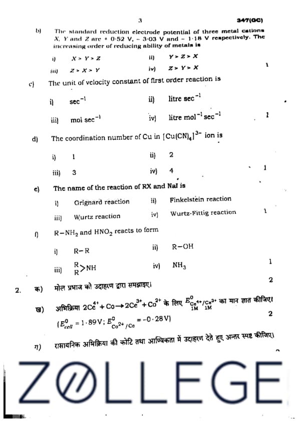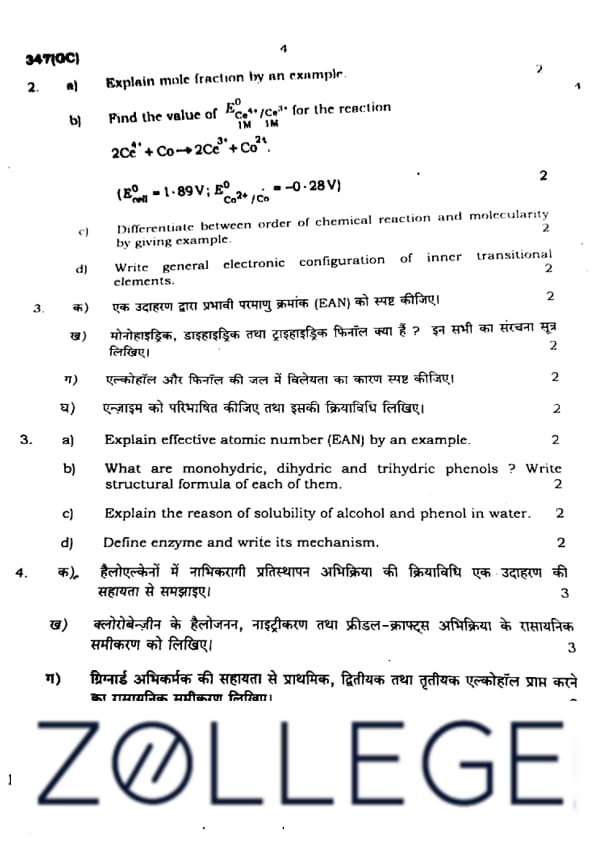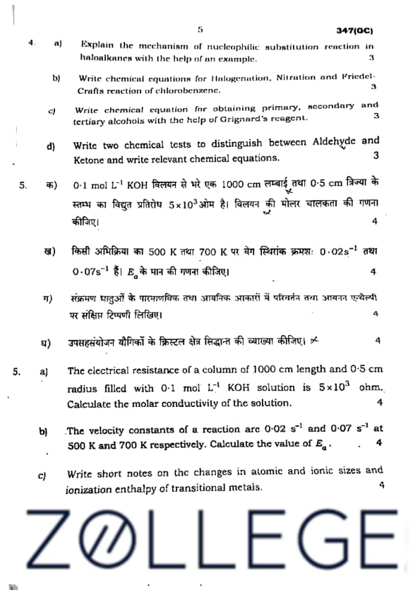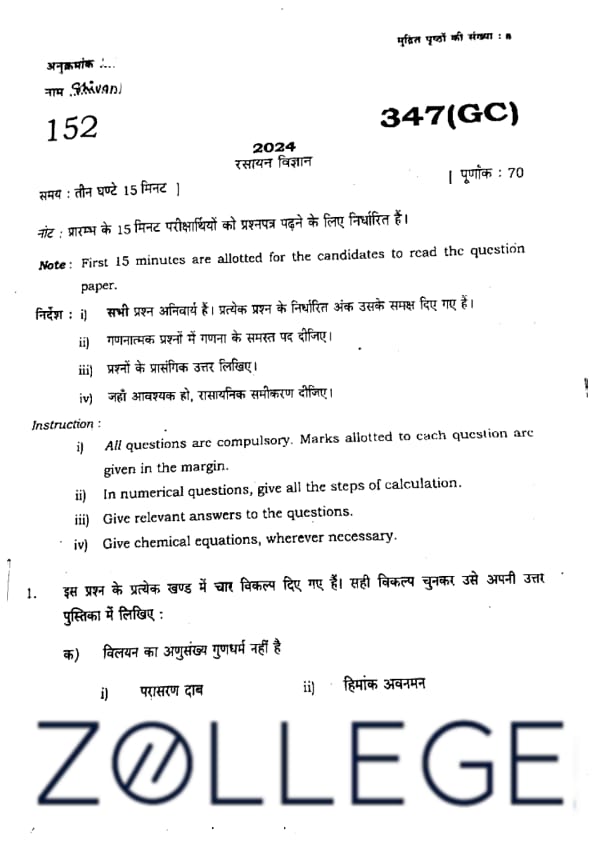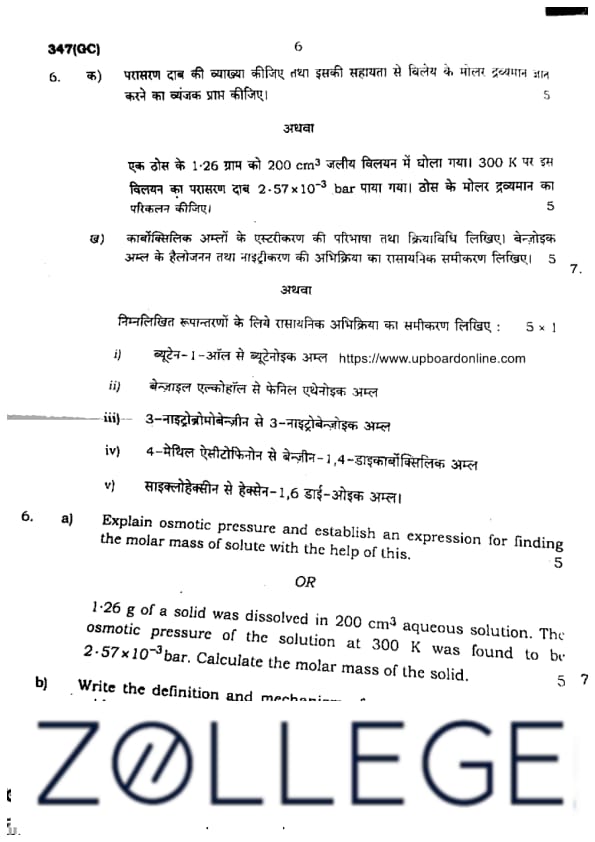 UP Board Class 12 Chemistry Question Paper 2024 (Code 347 GC) with Solutions
