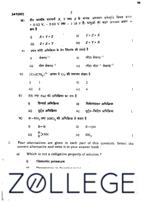 UP Board Class 12 Chemistry Question Paper 2024 PDF (Code 347 GC) is available for download here. The Chemistry exam was conducted on March 7, 2024 in the Evening Shift from 2 PM to 5:15 PM. The total marks for the theory paper are 70. Students reported the paper to be easy to moderate.