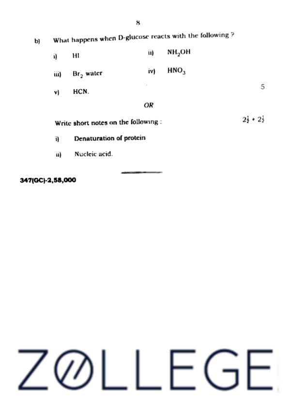 (b) What happens when D-glucose reacts with the following?