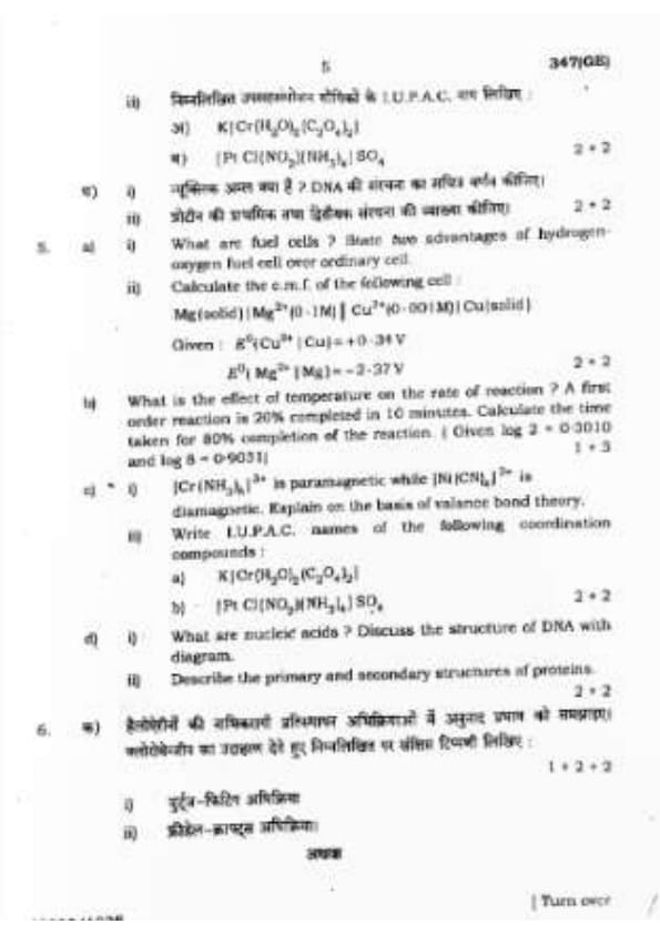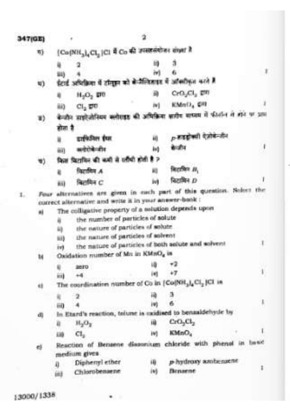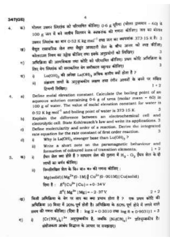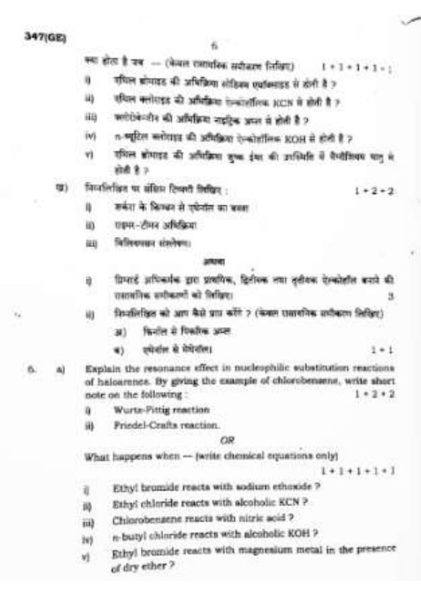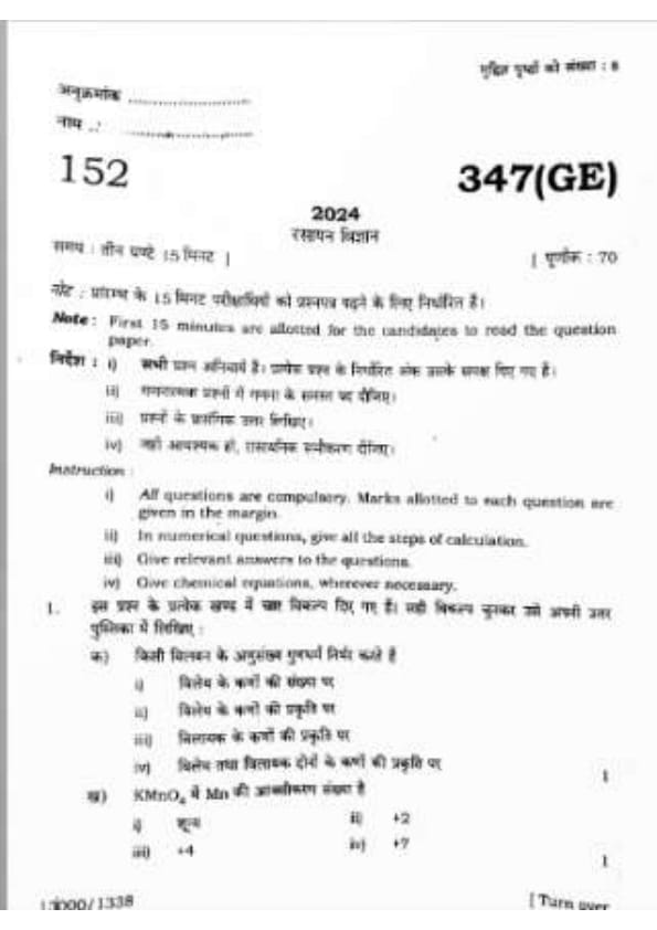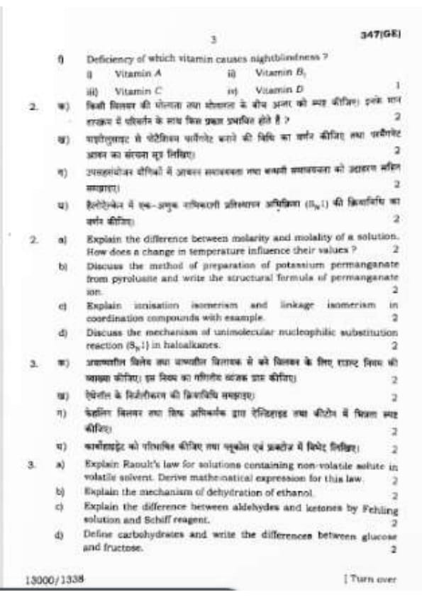 UP Board Class 12 Chemistry Question Paper 2024 (Code 347 GE) with Solutions