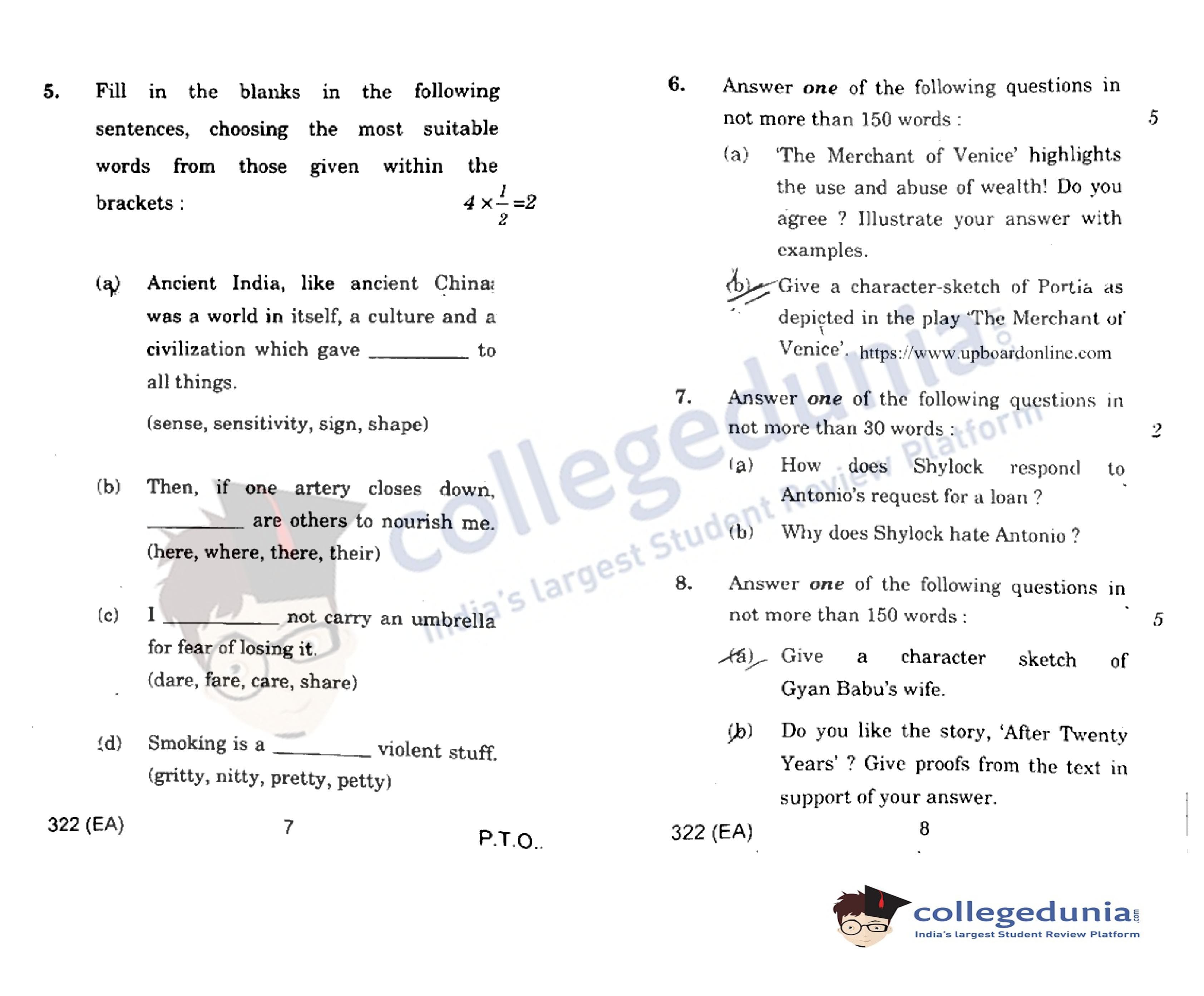 UP Board Class 12 English-1 Question Paper 2015 with Answer Key Code 322(EA) is available for download. The exam was conducted by the Uttar Pradesh Madhyamik Shiksha Parishad (UPMSP) on March 17, 2015 in the Afternoon Session 2 PM to 5:15 PM. The medium of paper was English. The question paper comprised a total of 13 questions.