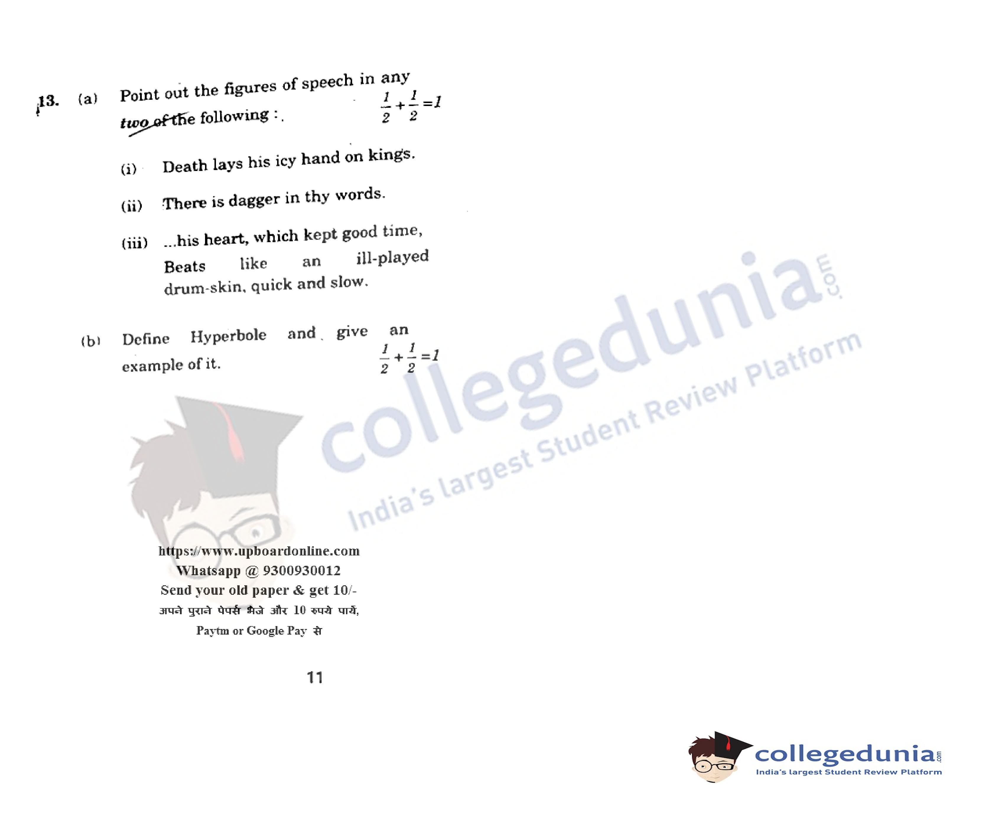 | UP Board Class 12 English-1 Question Paper 2015 PDF | UP Board Class 12 English-1 Answer Key 2015 PDF |