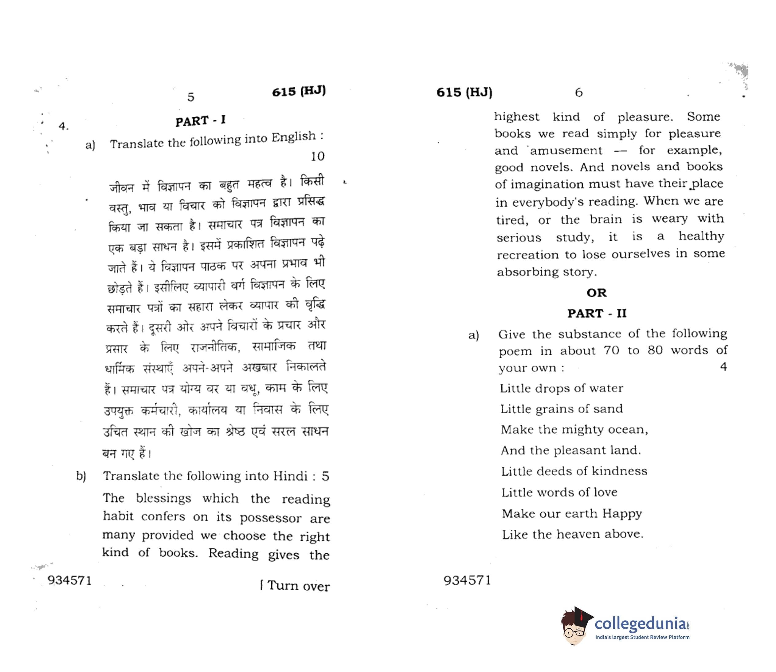 UP Board Class 12 English-B2 Question Paper 2018 with Answer Key Code 615(HJ) is available for download. The exam was conducted by the Uttar Pradesh Madhyamik Shiksha Parishad (UPMSP) on February 24, 2018 in the Afternoon Session 2 PM to 5:15 PM. The medium of paper was English. The question paper comprised a total of 7 questions.
