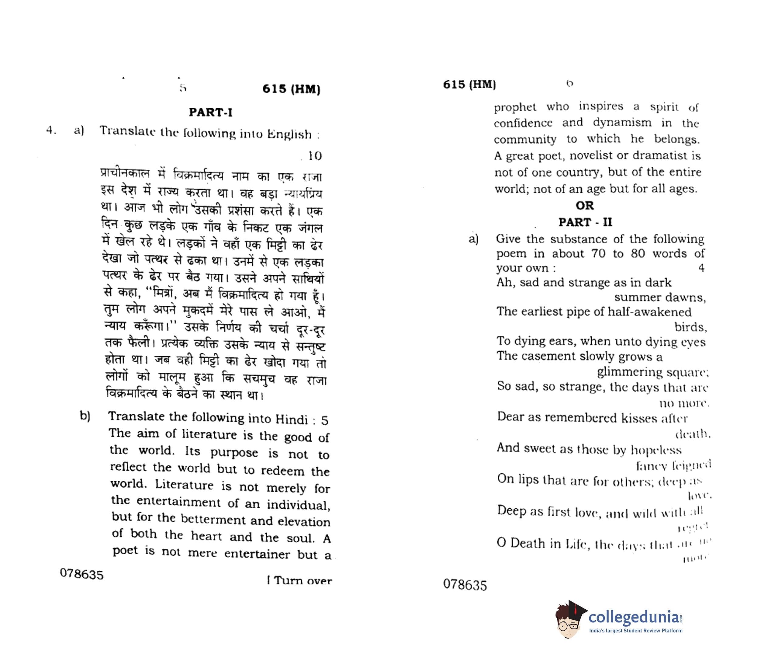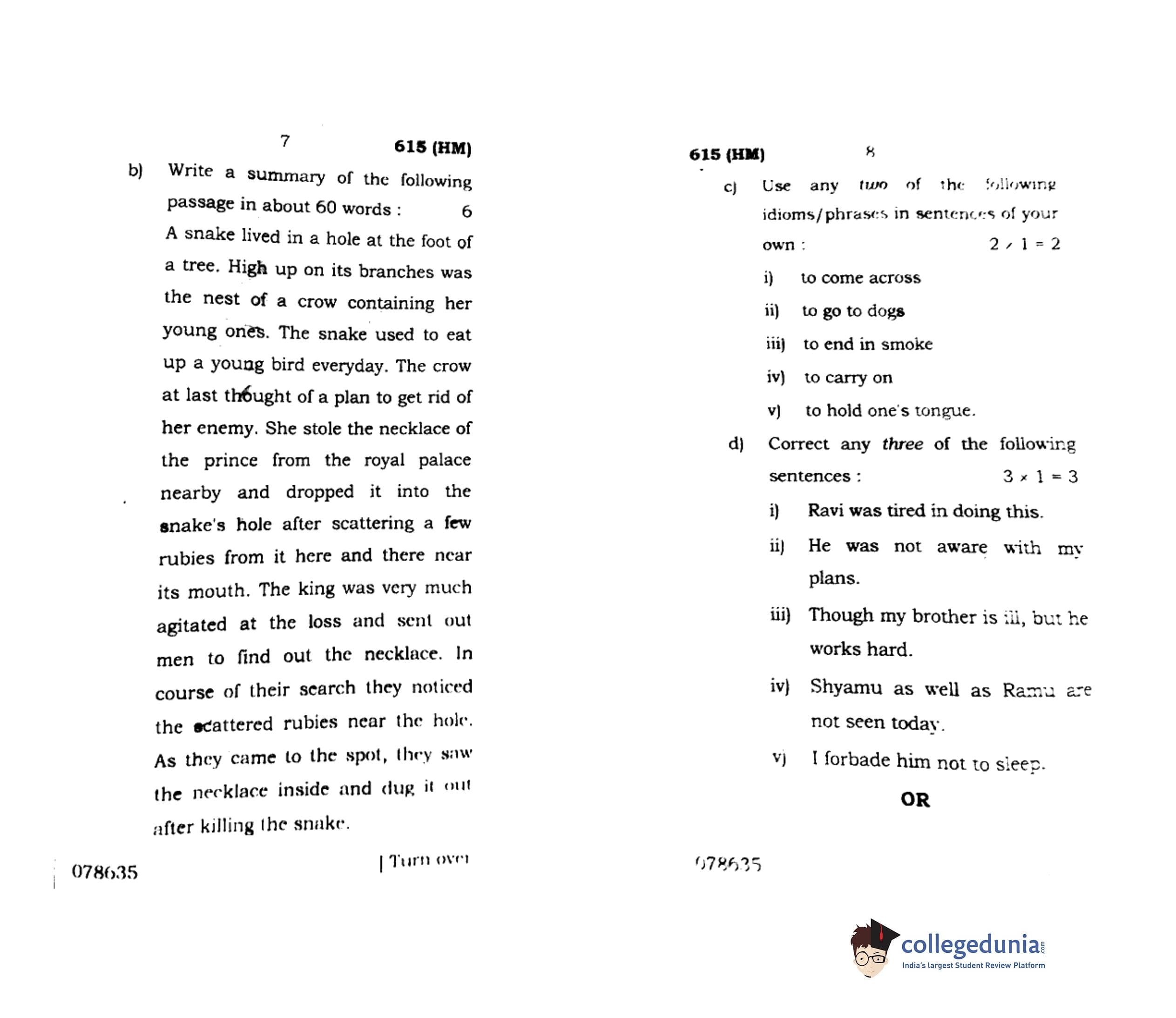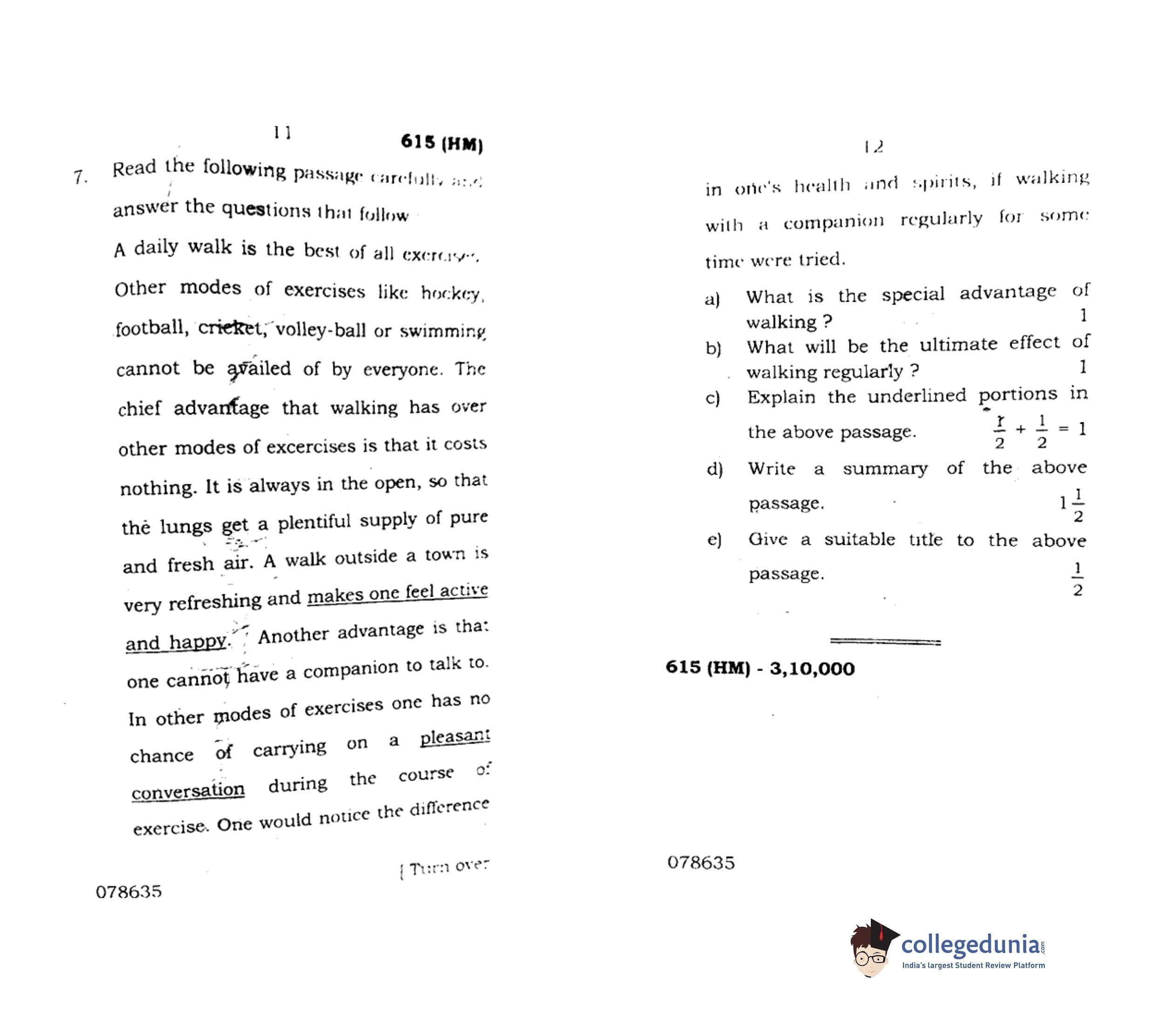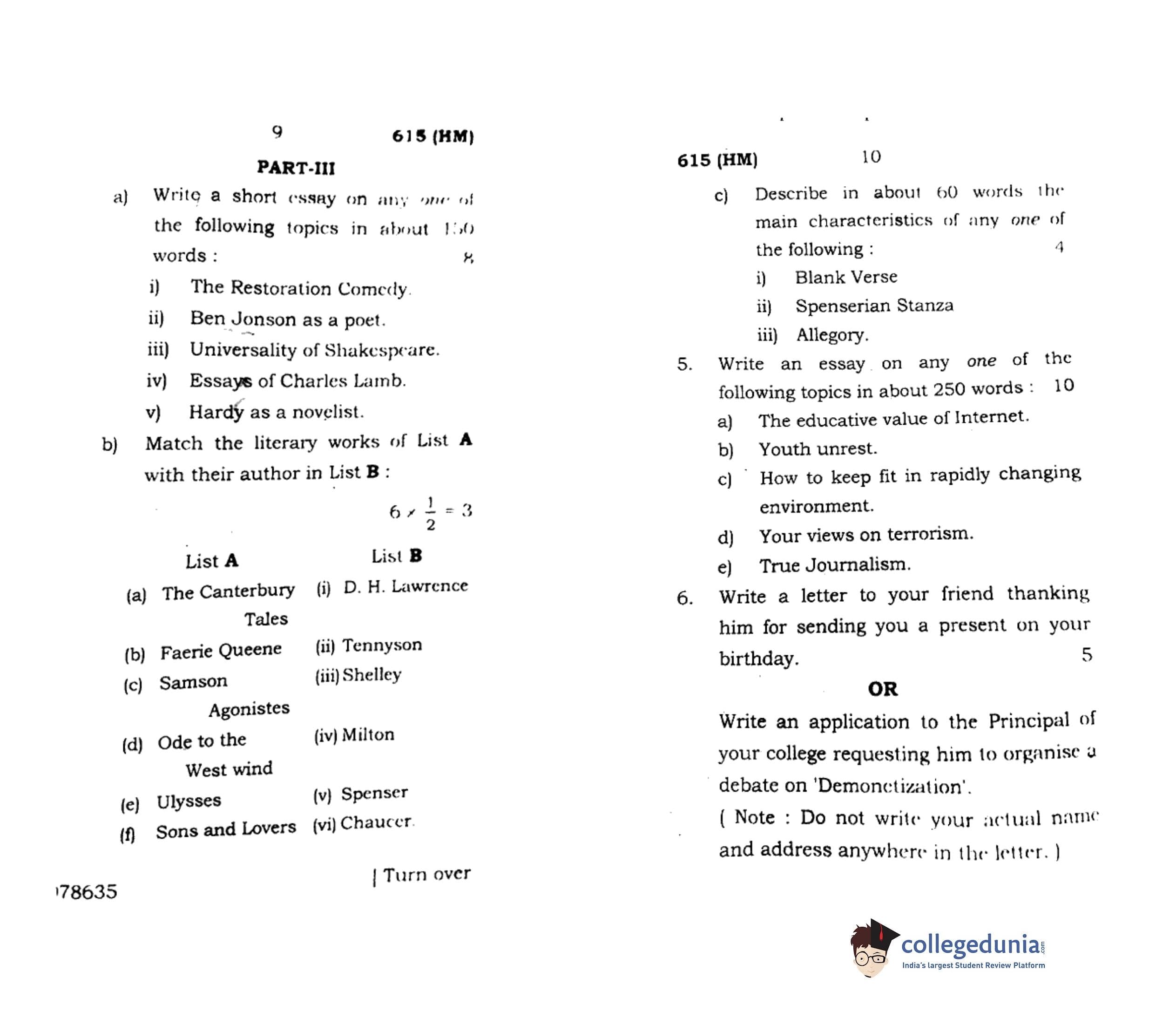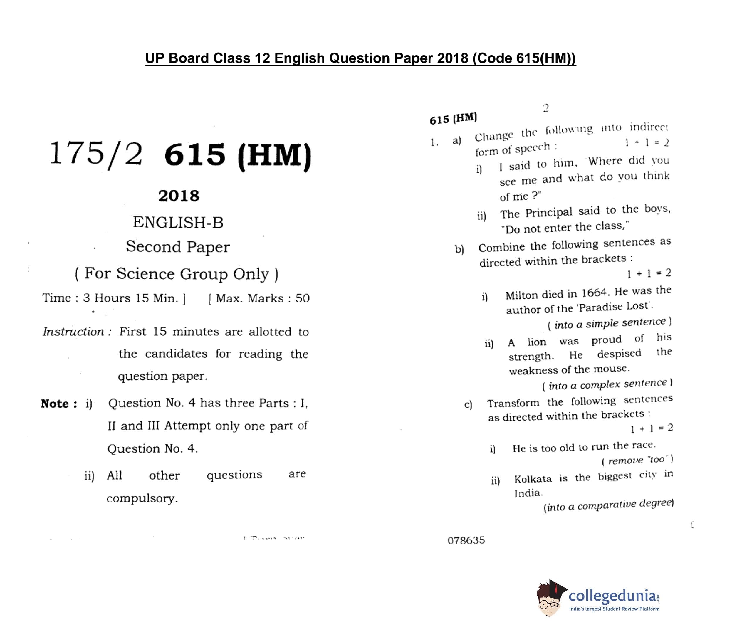 UP Board Class 12 English-B2 Question Paper 2018 with Answer Key Code 615(HM) is available for download. The exam was conducted by the Uttar Pradesh Madhyamik Shiksha Parishad (UPMSP) on February 24, 2018 in the Afternoon Session 2 PM to 5:15 PM. The medium of paper was English. The question paper comprised a total of 7 questions.