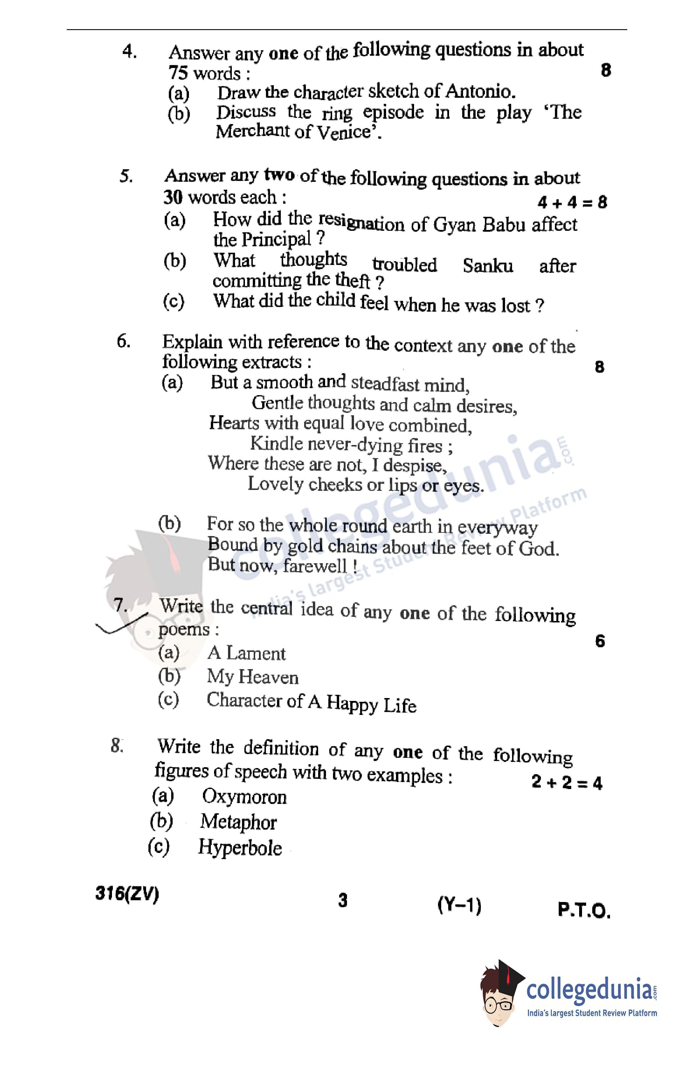 UP Board Class 12 English Question Paper 2020 with Answer Key Code 316(ZV) is available for download. The exam was conducted by the Uttar Pradesh Madhyamik Shiksha Parishad (UPMSP) on February 26, 2020 in the Afternoon Session 2 PM to 5:15 PM. The medium of paper was English. The question paper comprised a total of 13 questions.