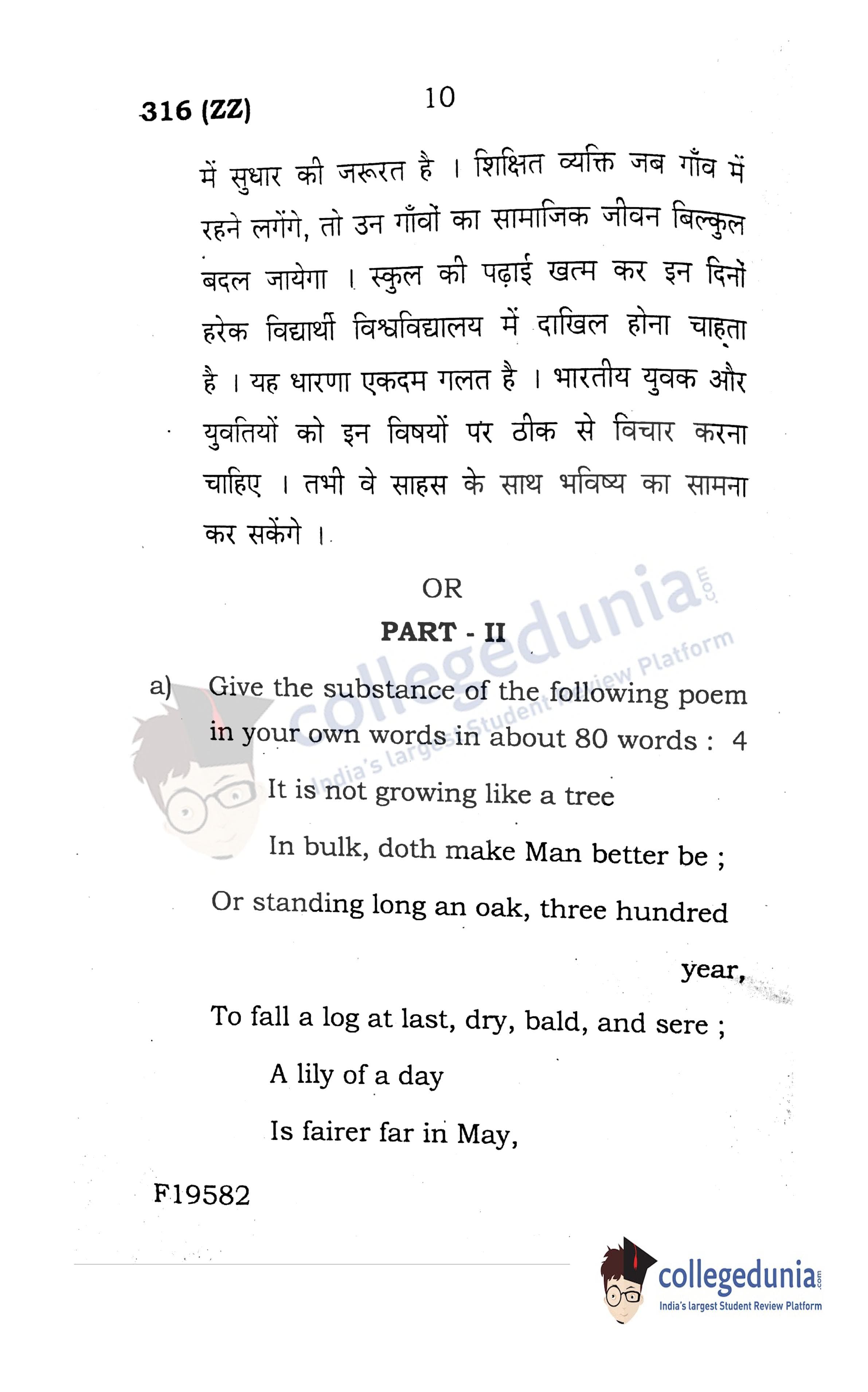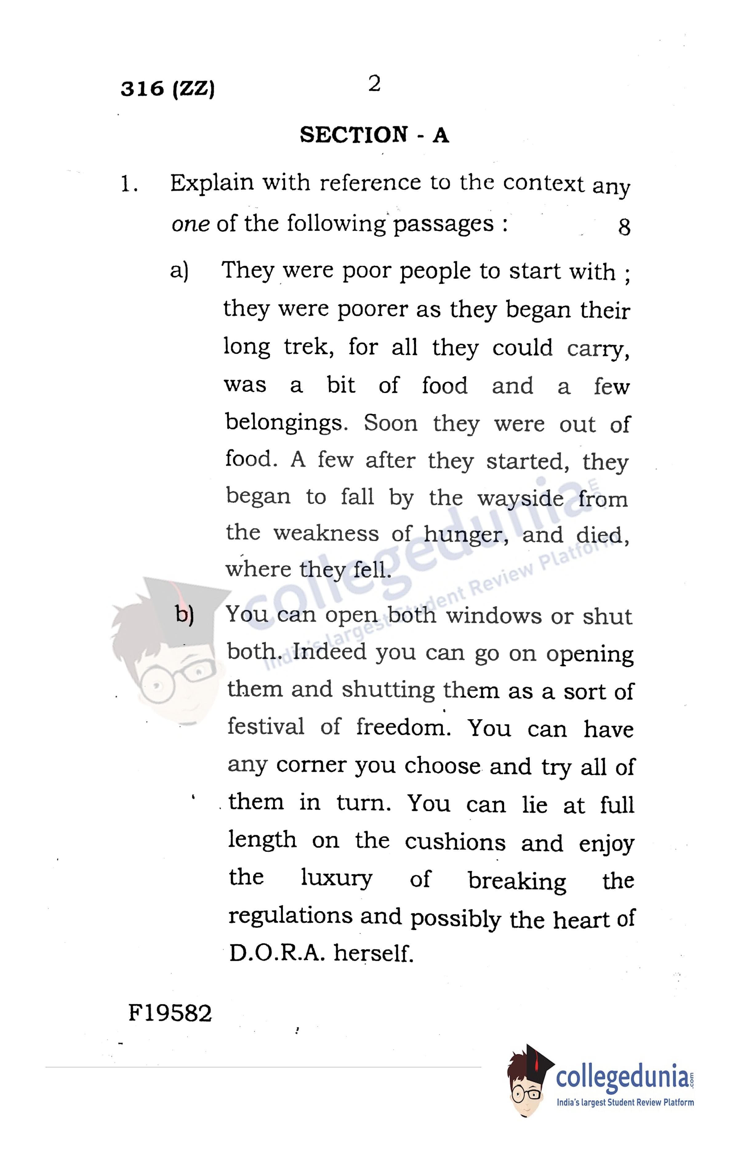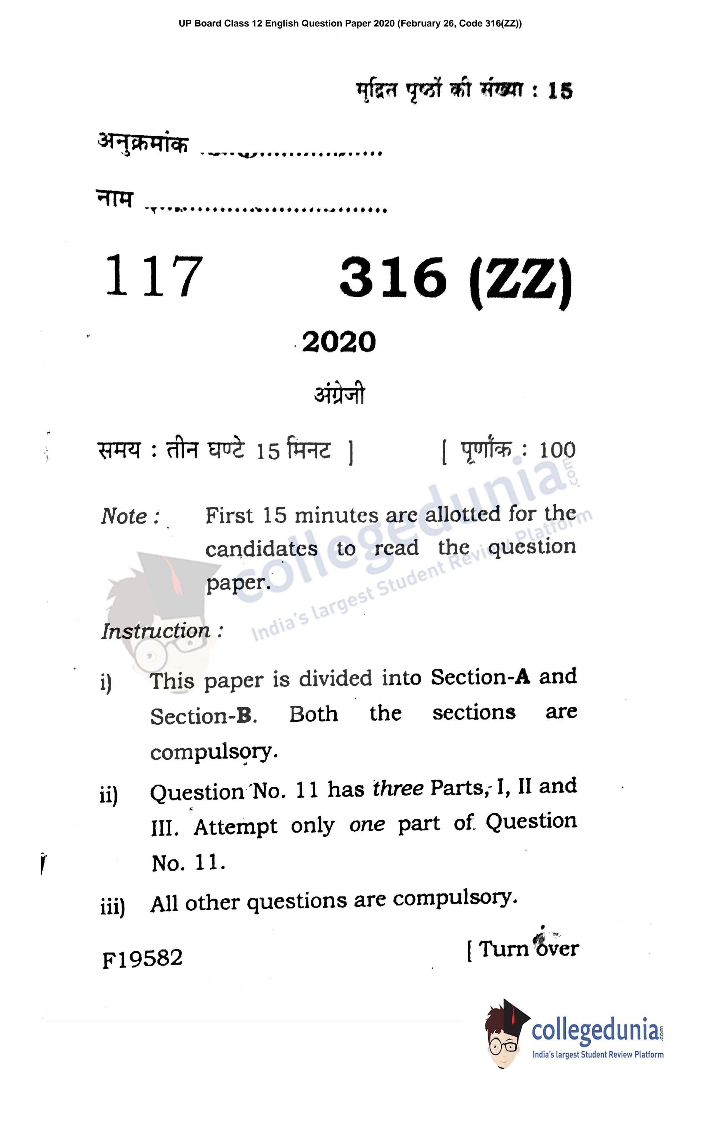 UP Board Class 12 English Code 316(ZZ) Question Paper 2020 with Answer Key (February 26)