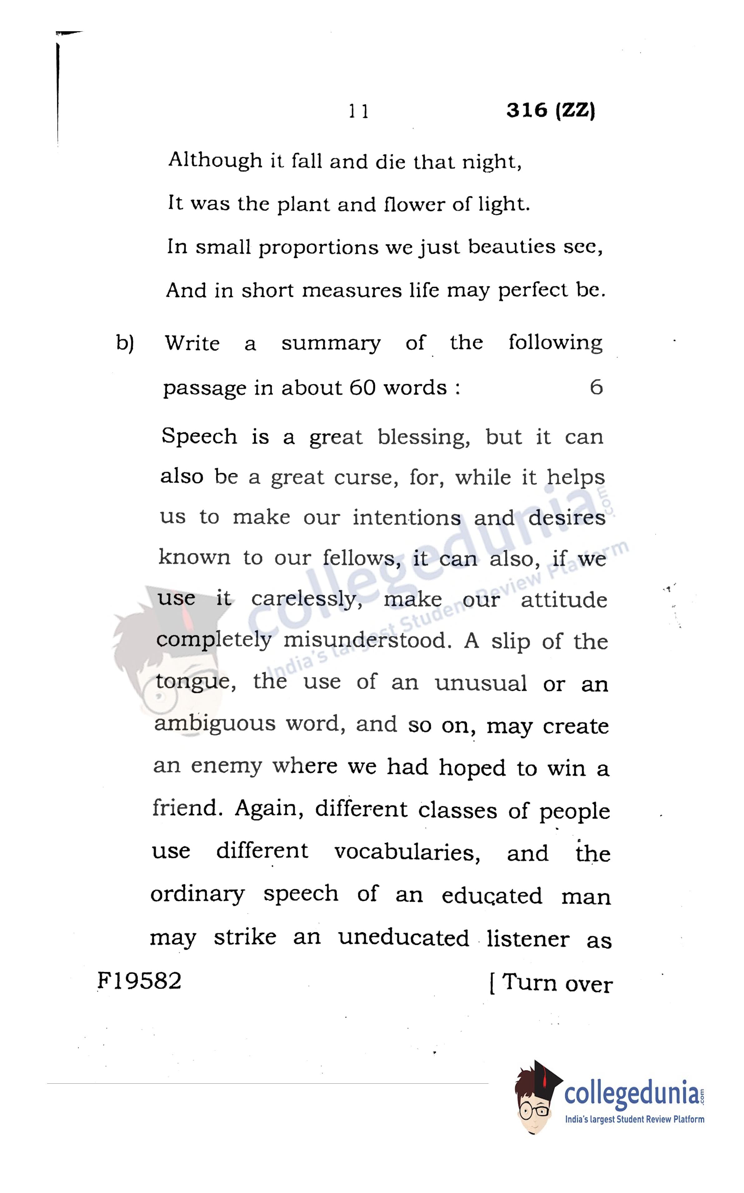 UP Board Class 12 English Question Paper 2020 with Answer Key Code 316(ZZ) is available for download. The exam was conducted by the Uttar Pradesh Madhyamik Shiksha Parishad (UPMSP) on February 26, 2020 in the Afternoon Session 2 PM to 5:15 PM. The medium of paper was English. The question paper comprised a total of 13 questions.