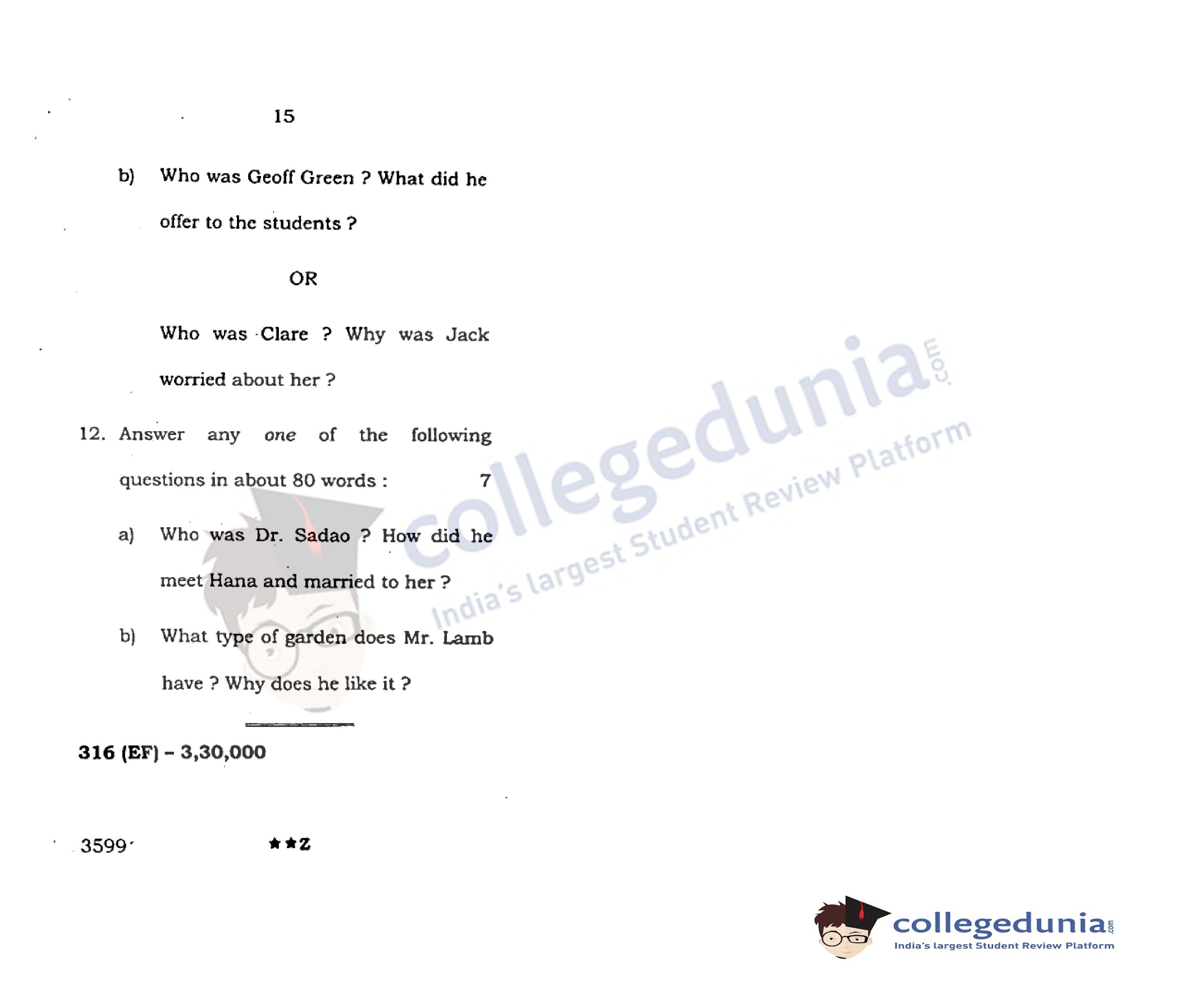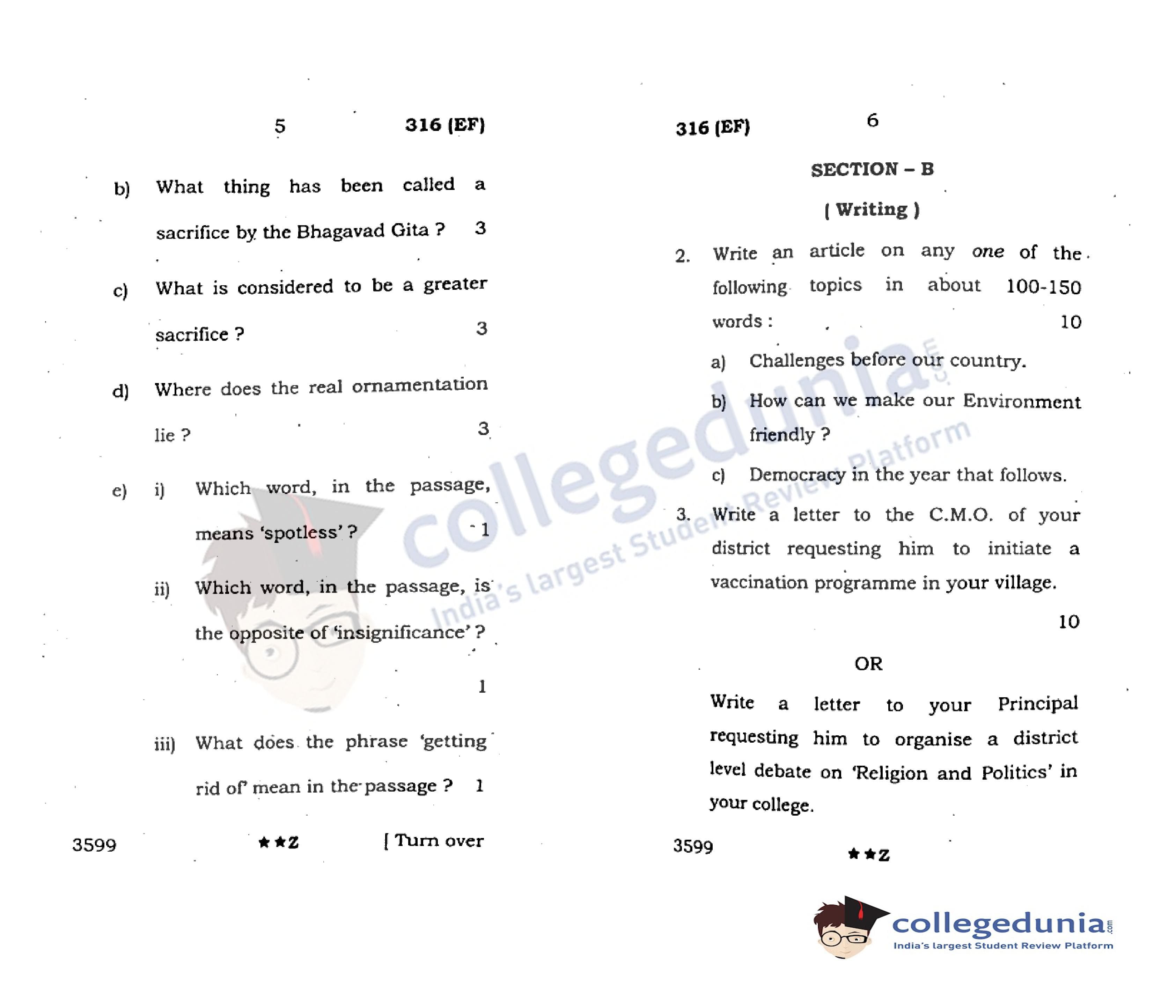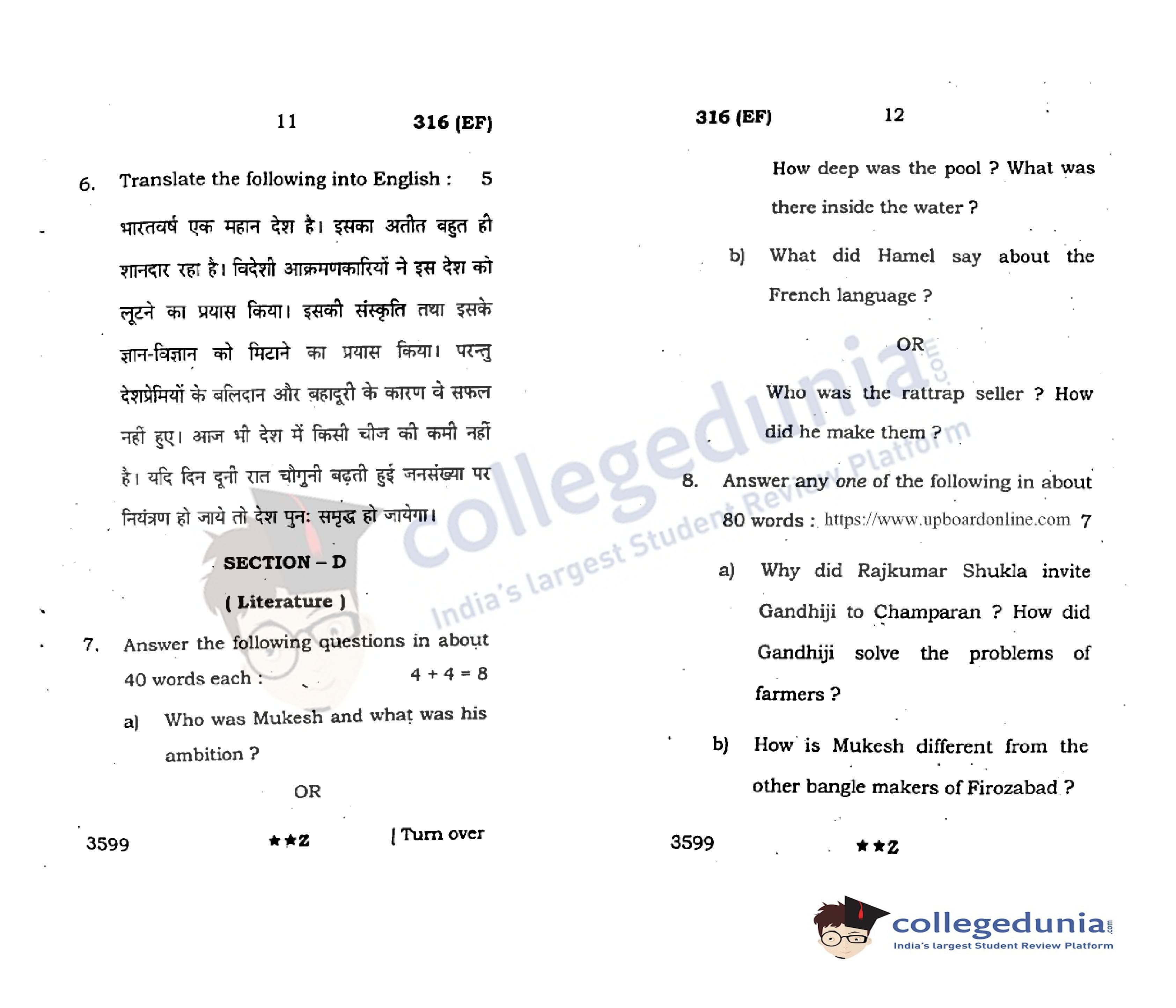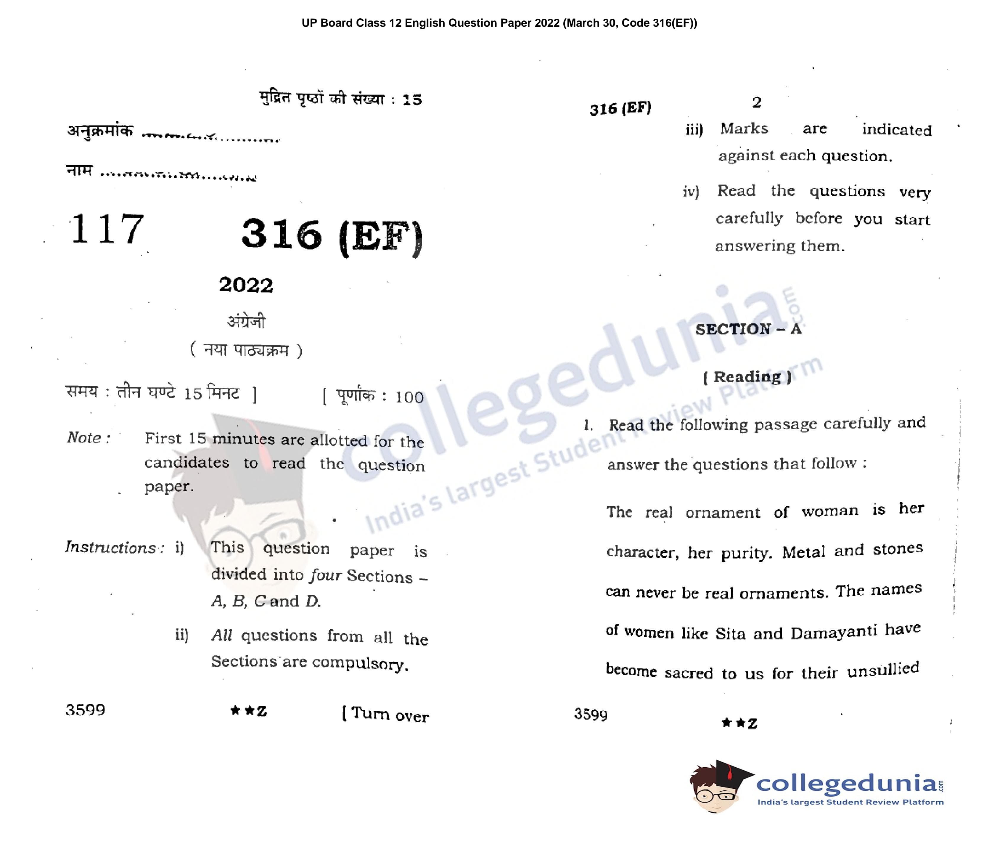 UP Board Class 12 English Question Paper 2022 with Answer Key Code 316(EF) is available for download. The exam was conducted by the Uttar Pradesh Madhyamik Shiksha Parishad (UPMSP) on March 30, 2022 in the Afternoon Session 2 PM to 5:15 PM. The medium of paper was English. The question paper comprised a total of 12 questions.