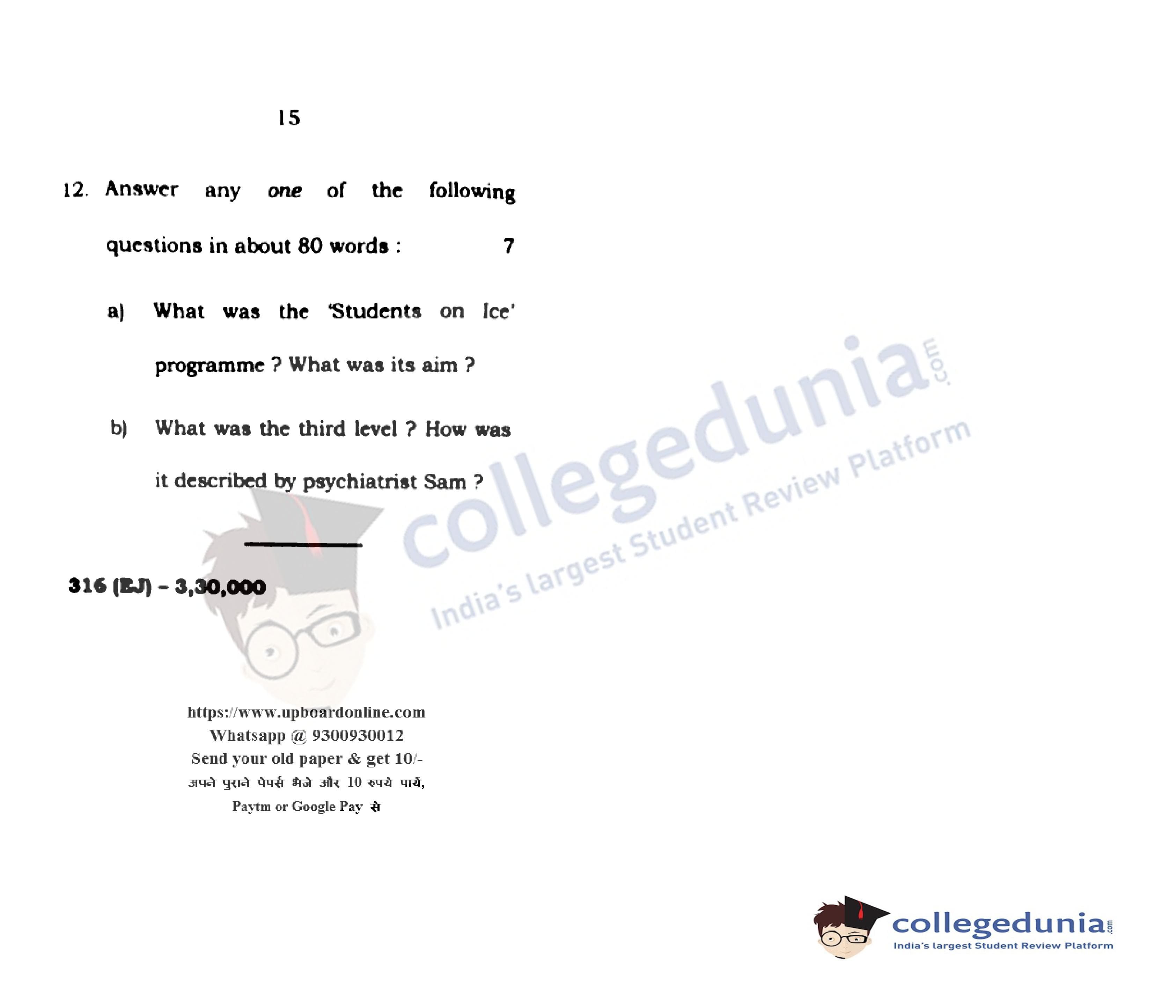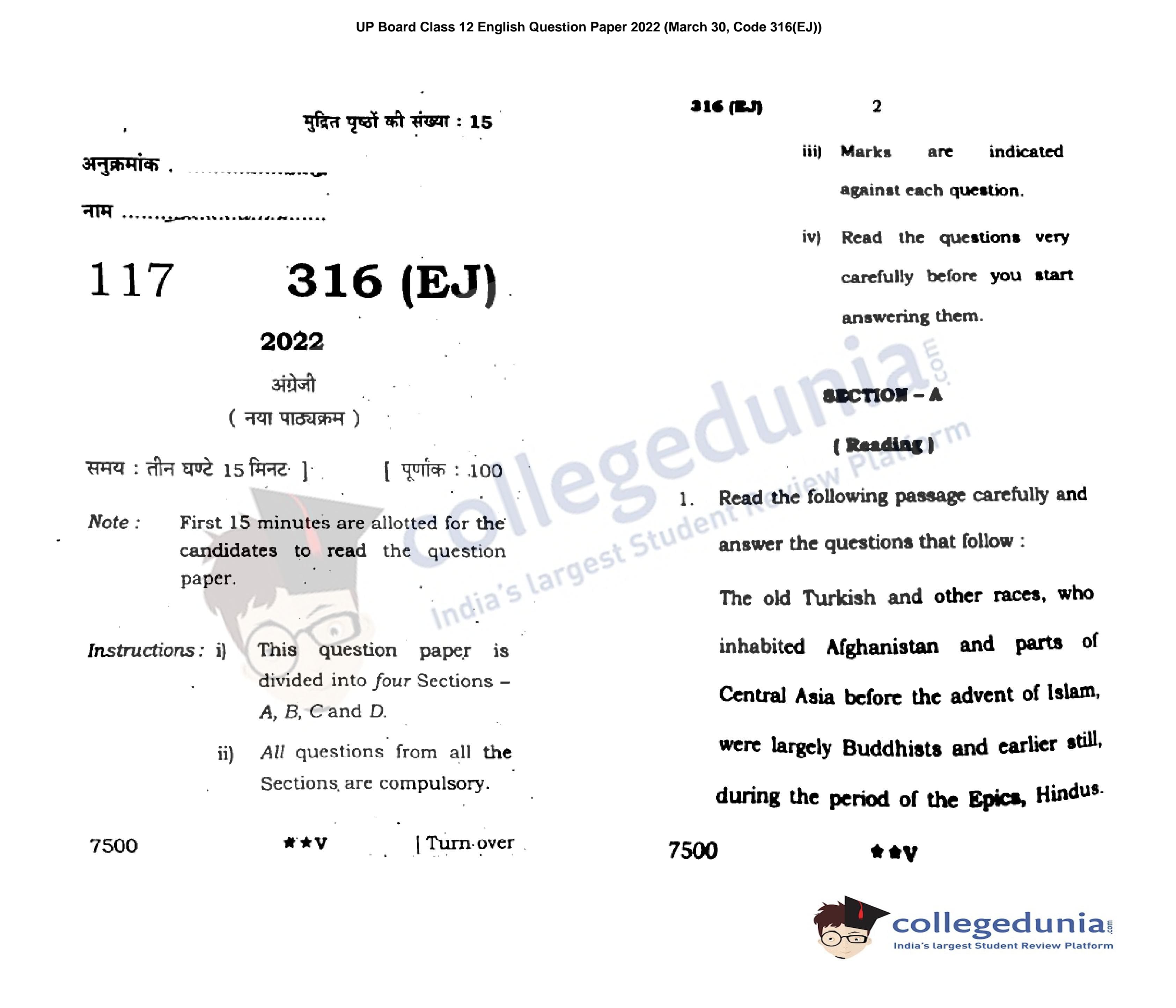 UP Board Class 12 English Question Paper 2022 with Answer Key Code 316(EJ) is available for download. The exam was conducted by the Uttar Pradesh Madhyamik Shiksha Parishad (UPMSP) on March 30, 2022 in the Afternoon Session 2 PM to 5:15 PM. The medium of paper was English. The question paper comprised a total of 12 questions.
