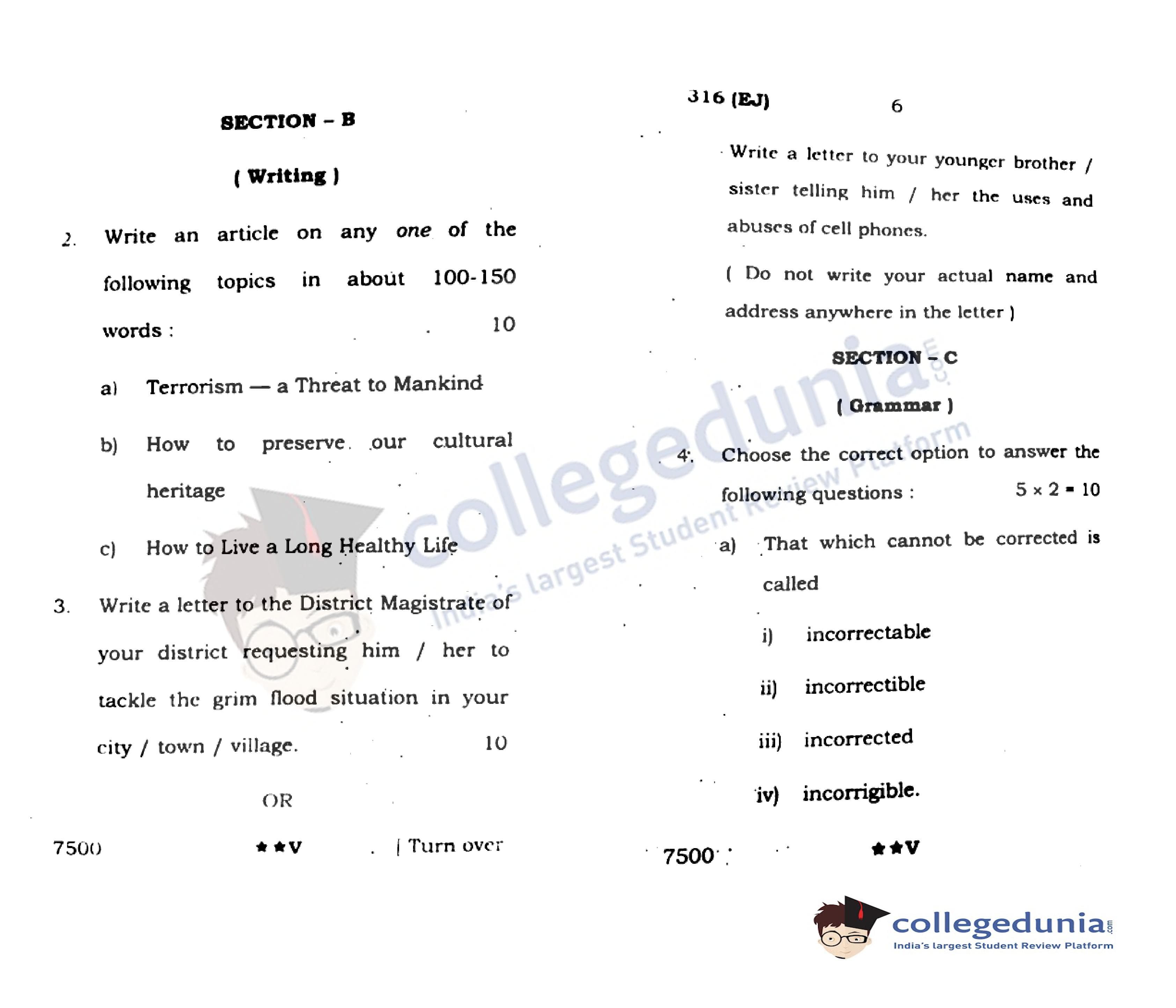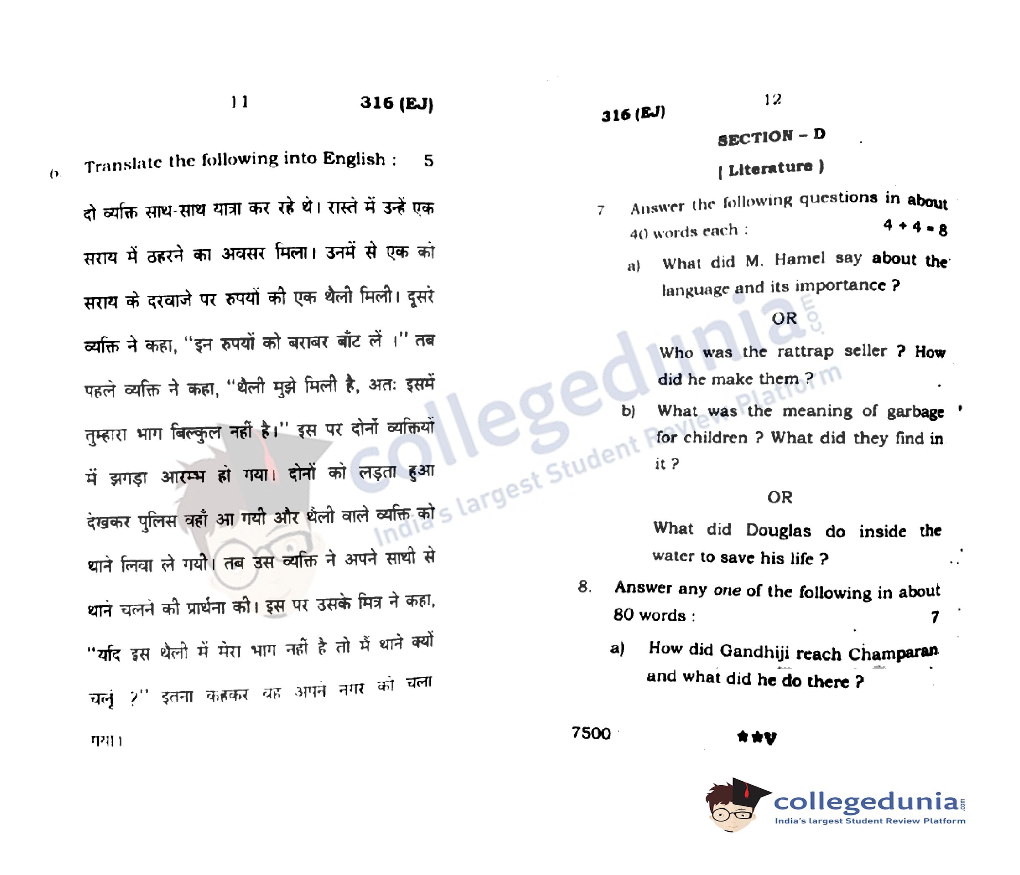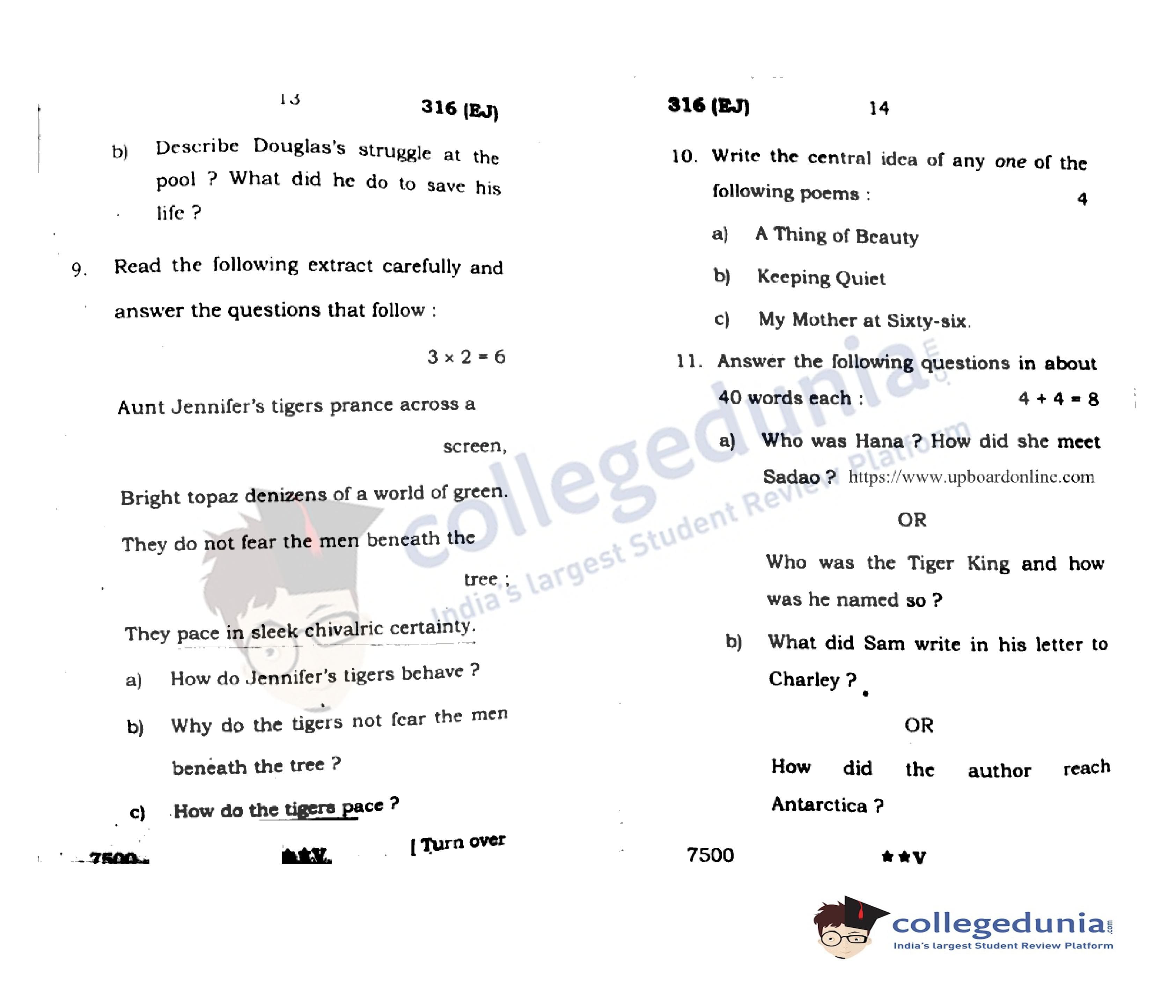 UP Board Class 12 English Code 316(EJ) Question Paper 2022 with Answer Key (March 30)