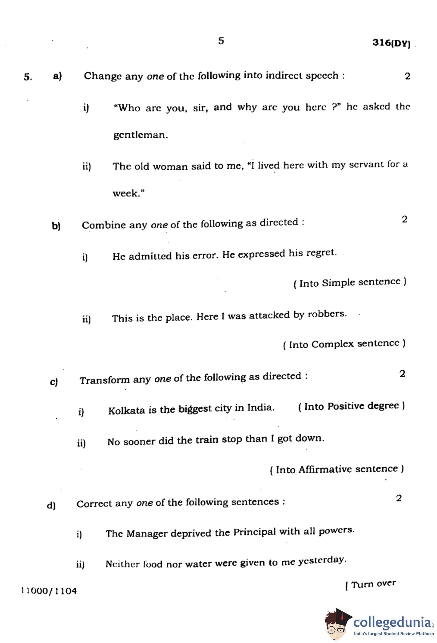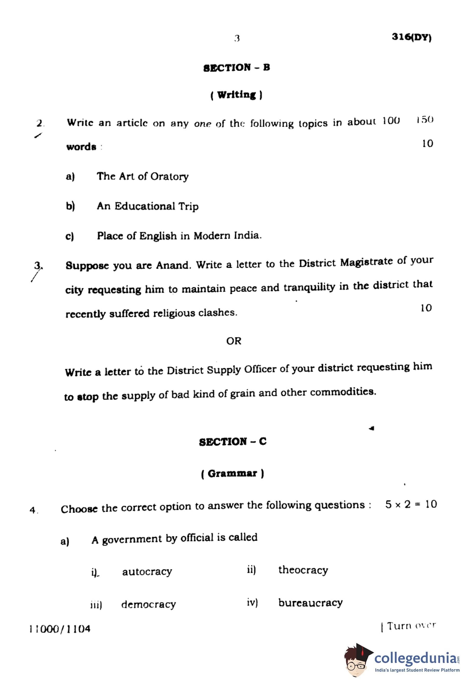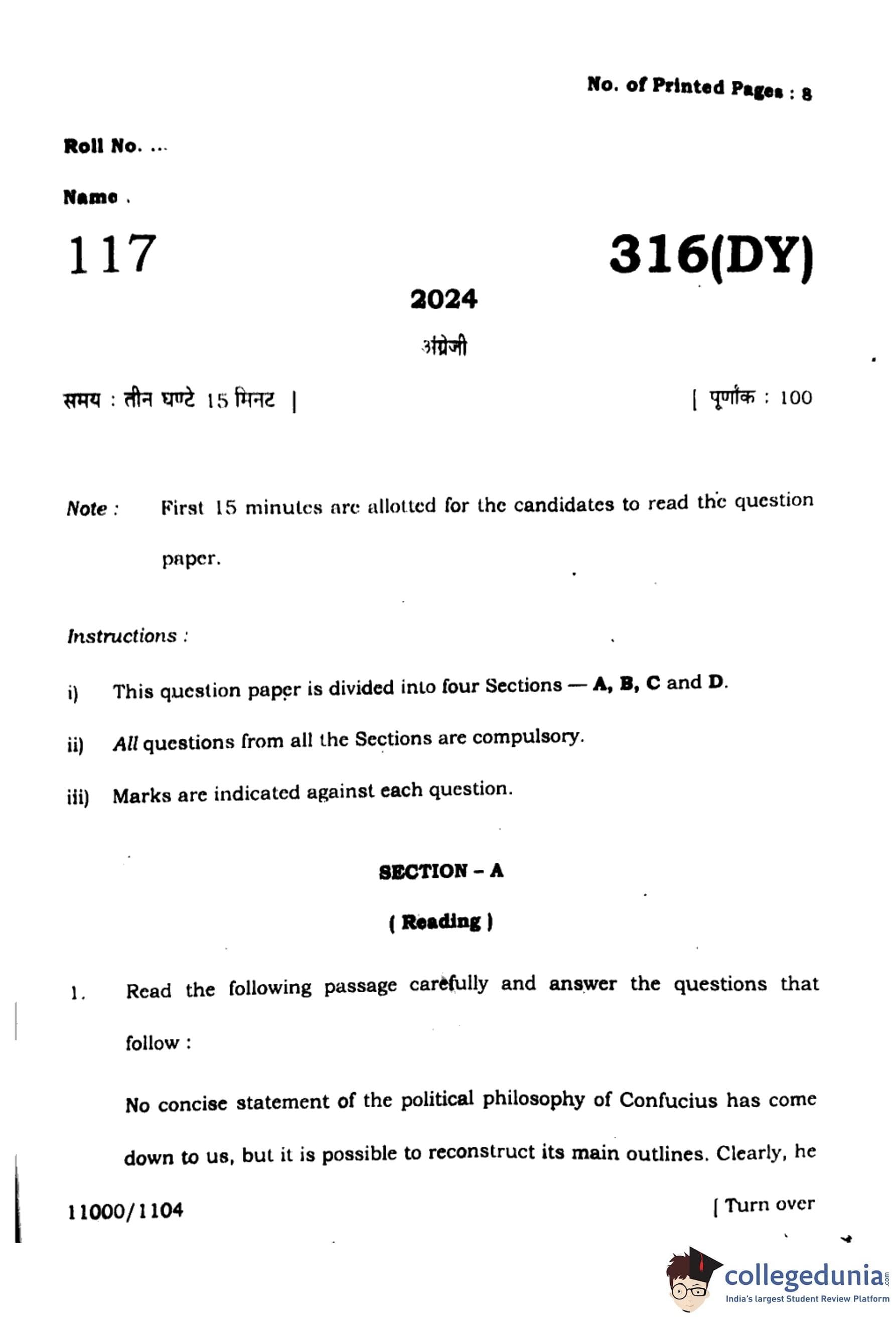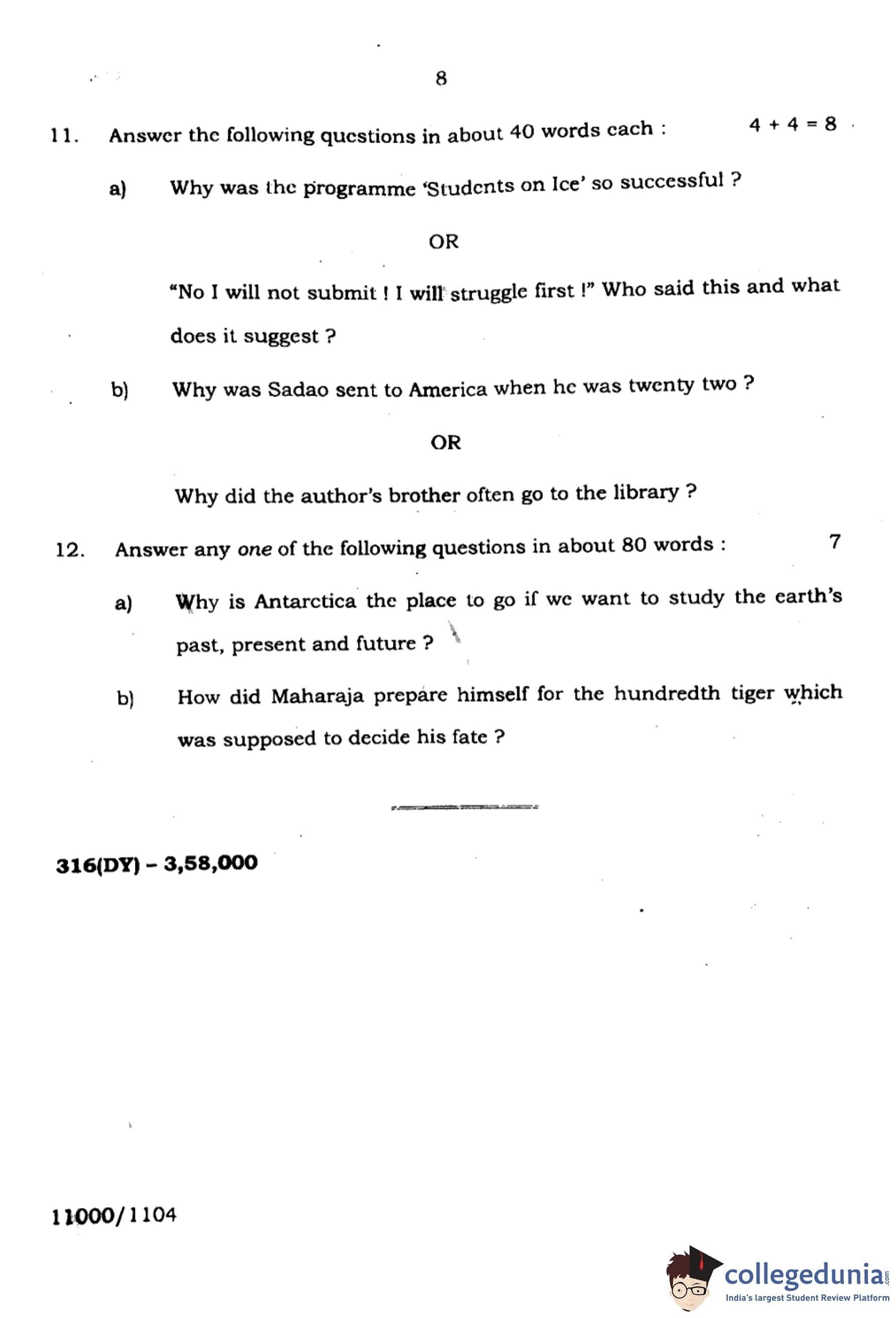 UP Board Class 12 English Question Paper 2024 (Code 316 DY) with Solutions